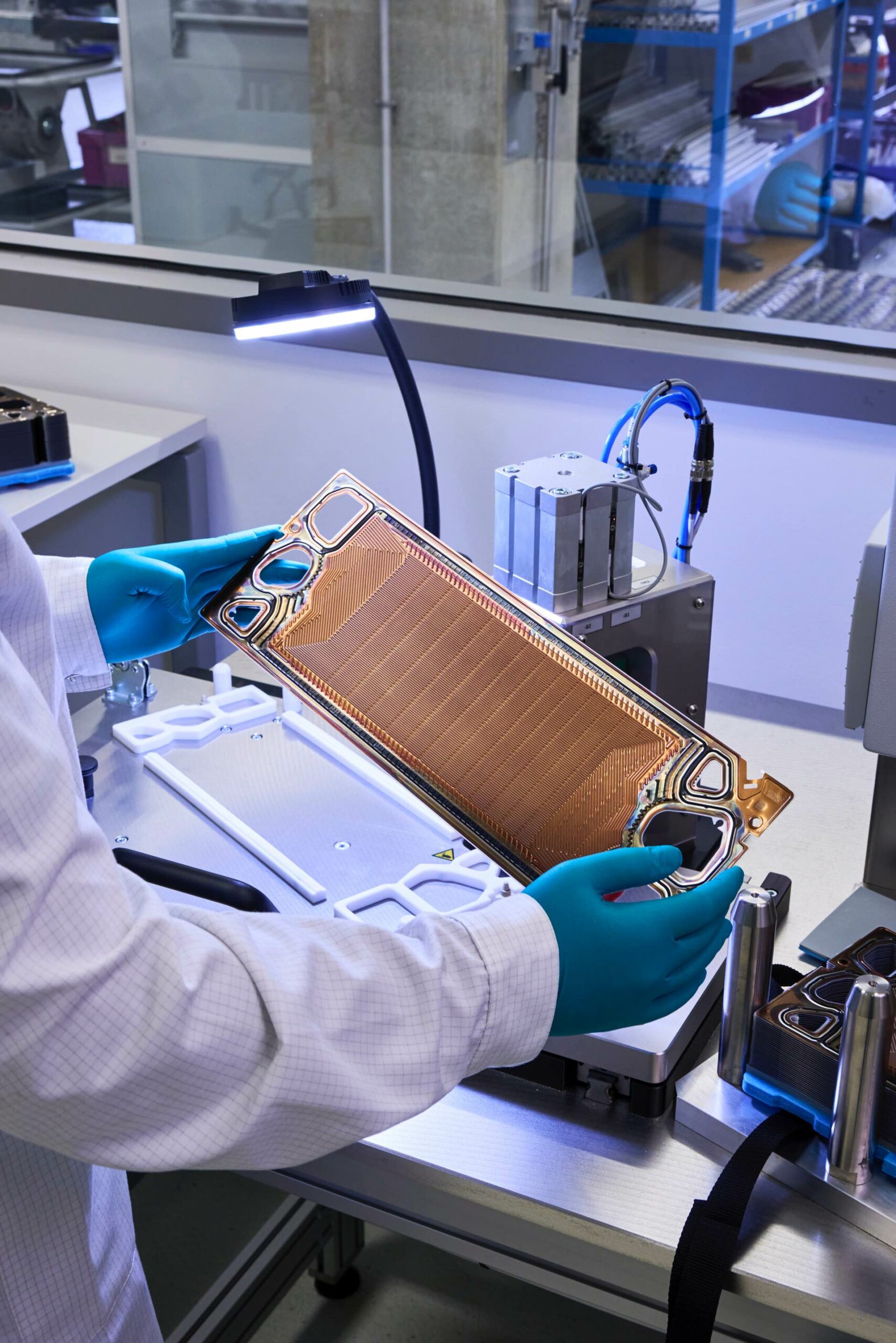 Die Wasserstoff-Brennstoffzelle von BMW nimmt Fahrt auf: In München wurde heute die Produktion der Brennstoffzellen für den iX5 aufgenommen, der schon Ende des Jahres in Kleinserie auf den Markt kommen wird. Damit ist auch endgültig klar, dass sich die BMW Group bei der Kooperation mit Toyota keinesfalls auf die Rolle des Empfängers fertiger Technik-Pakete reduzieren lassen will, sondern eigene Wasserstoff-Kompetenz auf- und ausbauen will: Gebaut werden die Brennstoffzellen im neuen Wasserstoff-Kompetenzzentrum von BMW in München.
