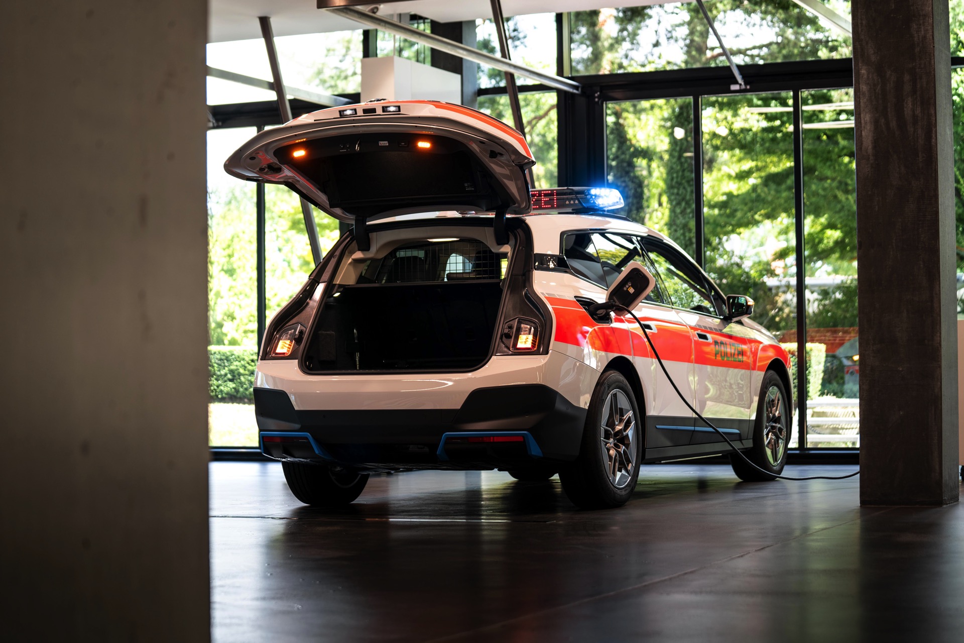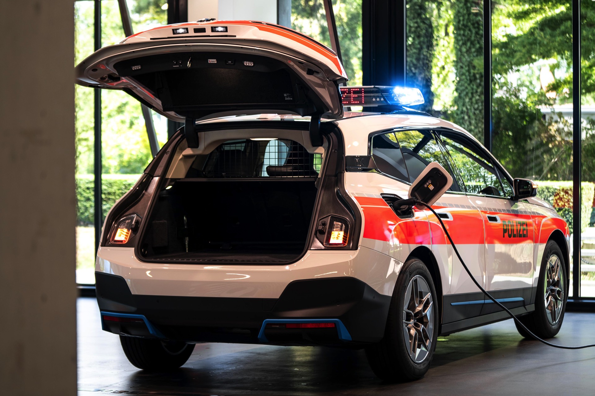Der weltweit erste, aber sicher nicht letzte für die Polizei umgerüstete BMW iX ist ab sofort in der Schweiz unterwegs. Das für die speziellen Belange der Ordnungshüter umfassend veränderte Elektro-SUV ermöglicht es der Polizei, in einem breiteren Einsatzspektrum als bisher lokal emissionsfrei unterwegs zu sein: In den letzten Jahren sammelten Schweizer Polizisten genau wie ihre Kollegen in vielen anderen Ländern bereits erste Erfahrungen mit dem BMW i3, aber im Vergleich zum kleinen Stadtflitzer mit seiner überschaubaren Reichweite bietet der nun umgebaute iX naturgemäß wesentlich mehr Optionen. Hierzu trägt nicht nur das erheblich größere Platzangebot bei, sondern auch die wesentlich höhere Reichweite und die noch souveränere Motorisierung.