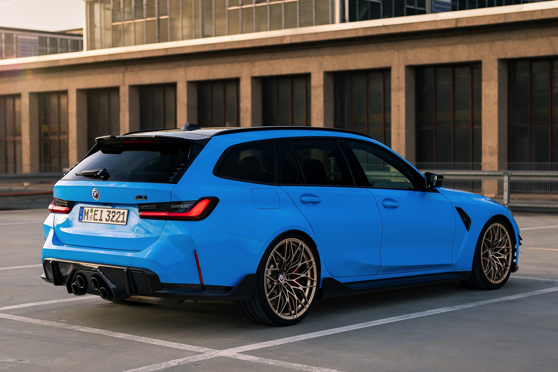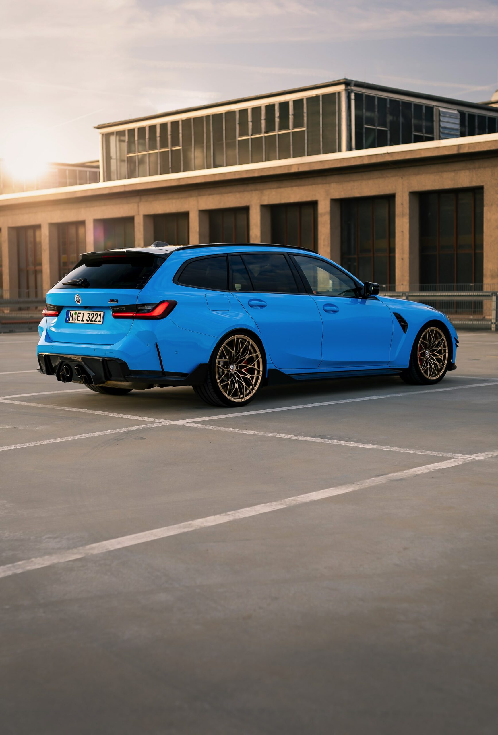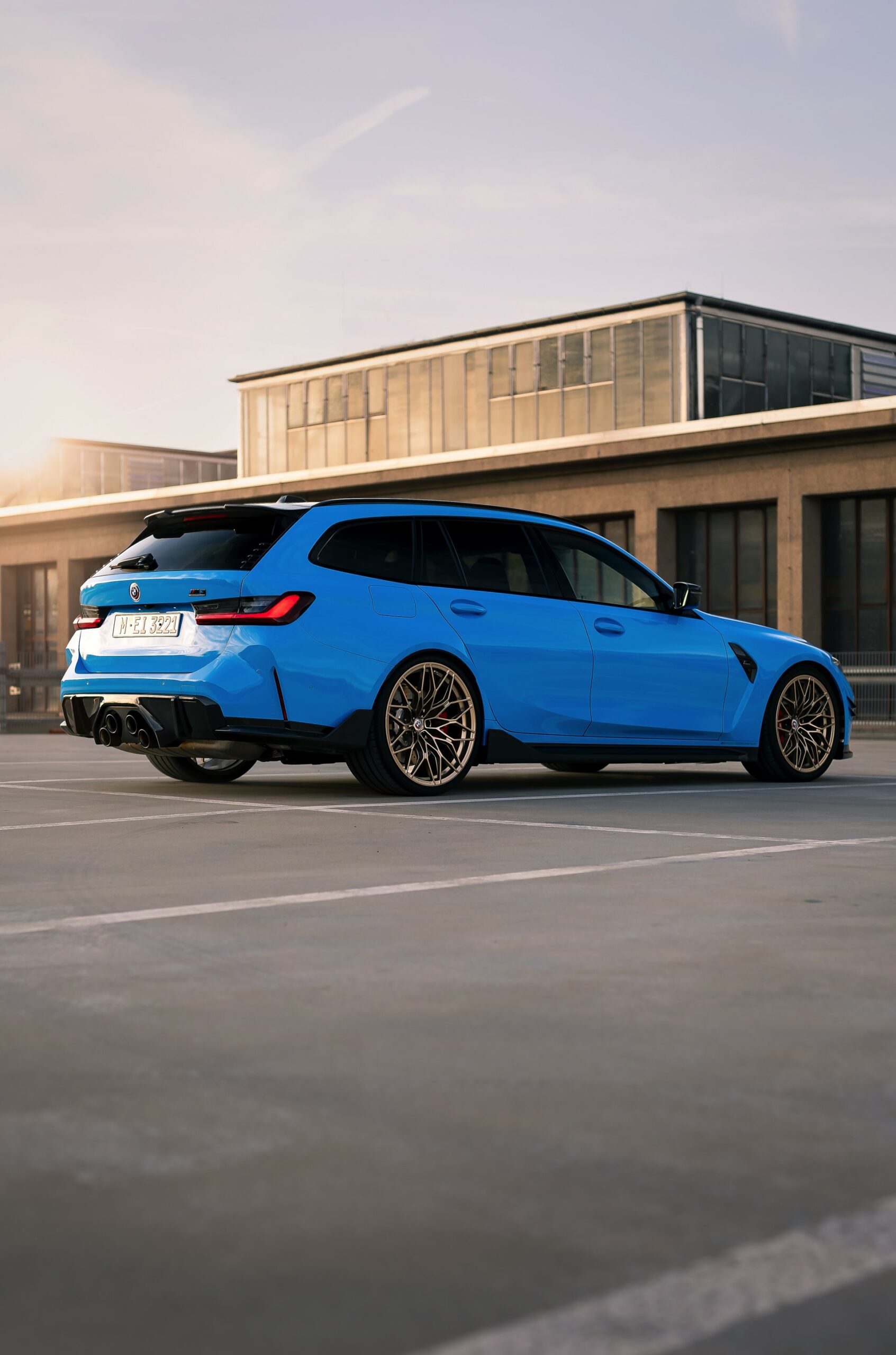 Der mit Abstand sportlichste und zweifellos auch extrovertierteste Kombi in der Geschichte von BMW präsentiert sich weiterhin farbenfroh und selbstbewusst: Auf einigen neuen Fotos von HaberkornPhotography sehen wir den neuen BMW M3 Touring (G81) erneut mit M Performance-Tuning und Individual-Lackierung in Rivierablau. Der Power-Kombi bietet dem Auge des Betrachters dabei ein ganzes Feuerwerk von Highlights, angefangen von der außergewöhnlichen Lackierung über zahlreiche Carbon-Anbauteile bis hin zu den 20 Zoll großen Felgen in Frozen Goldbronze.