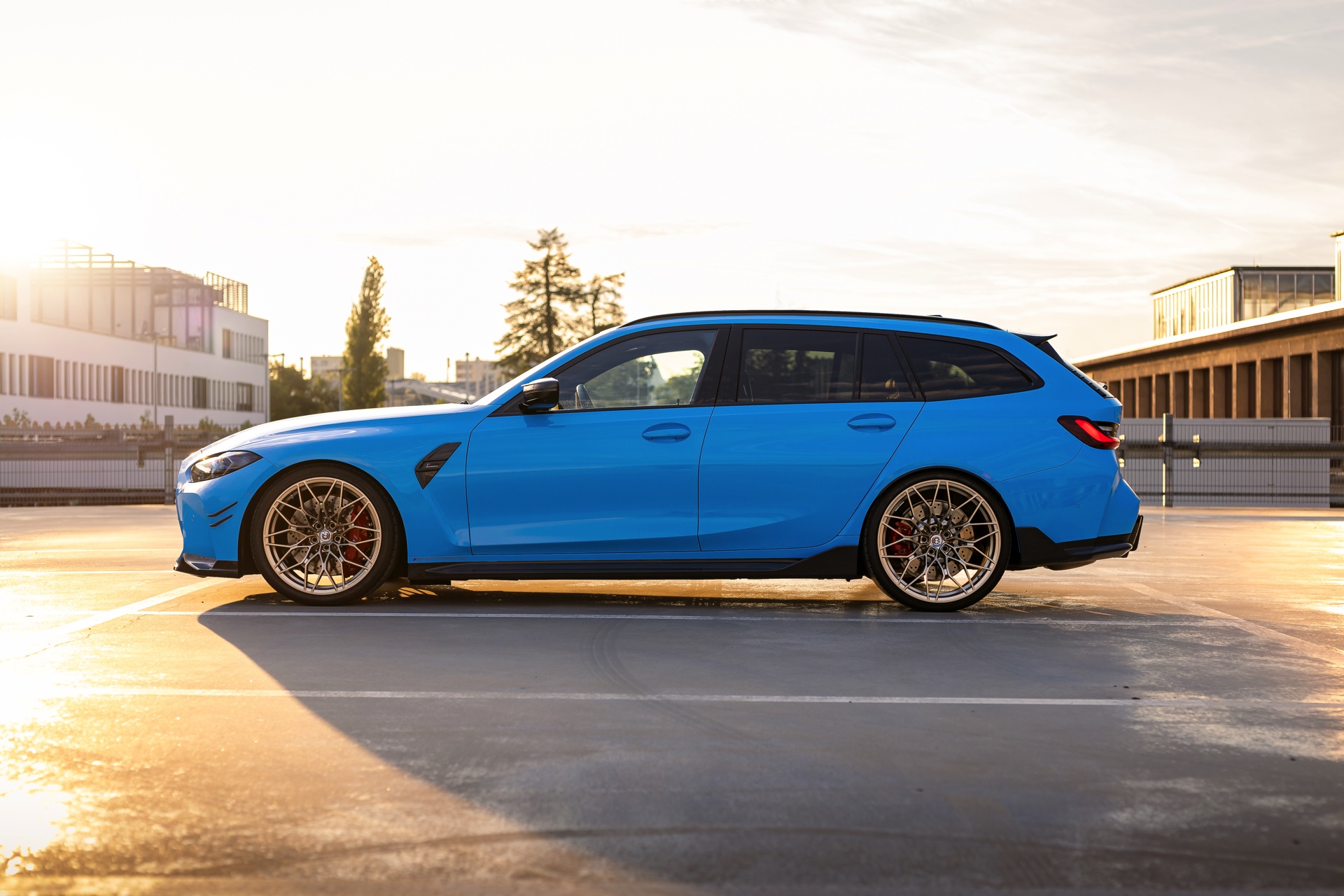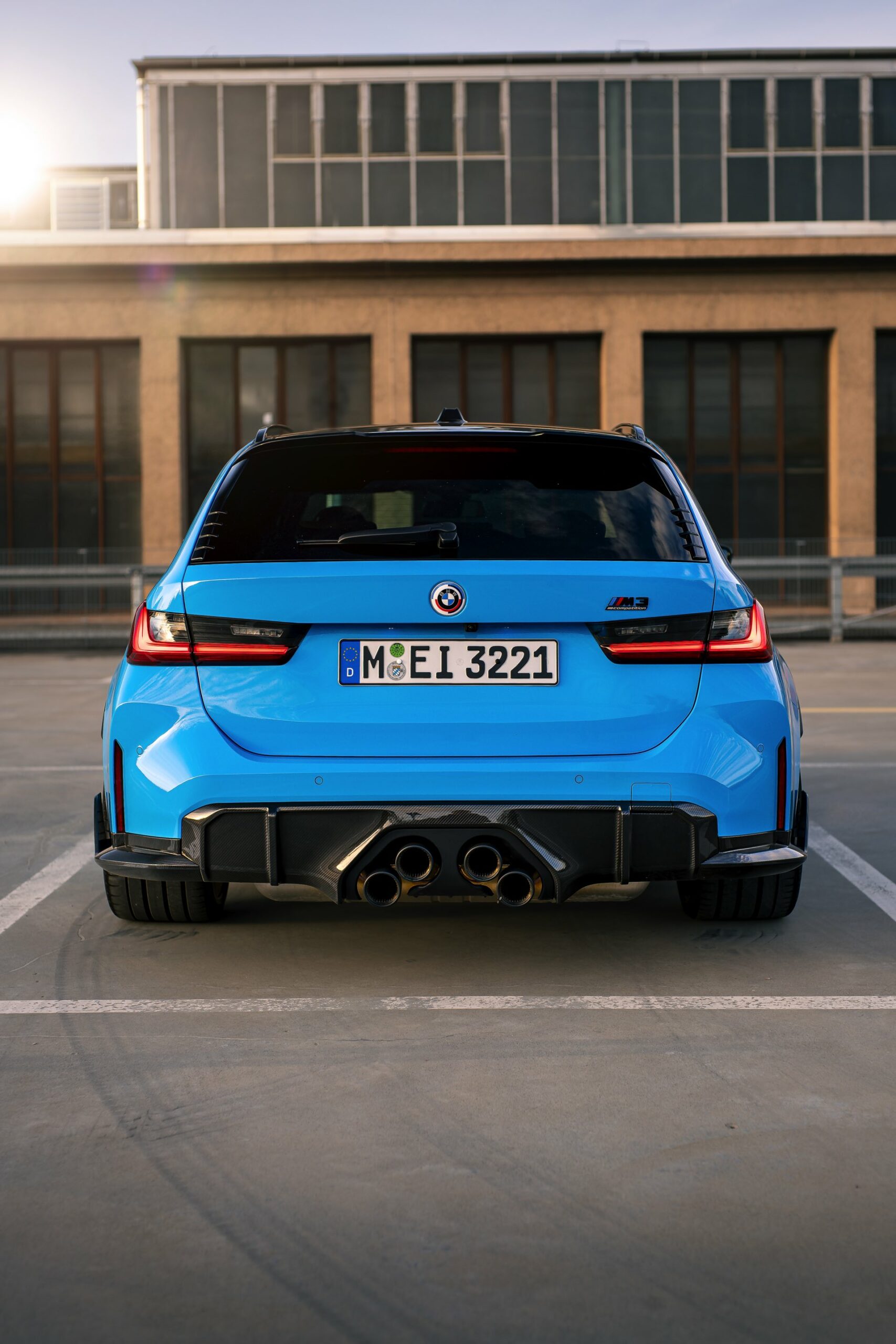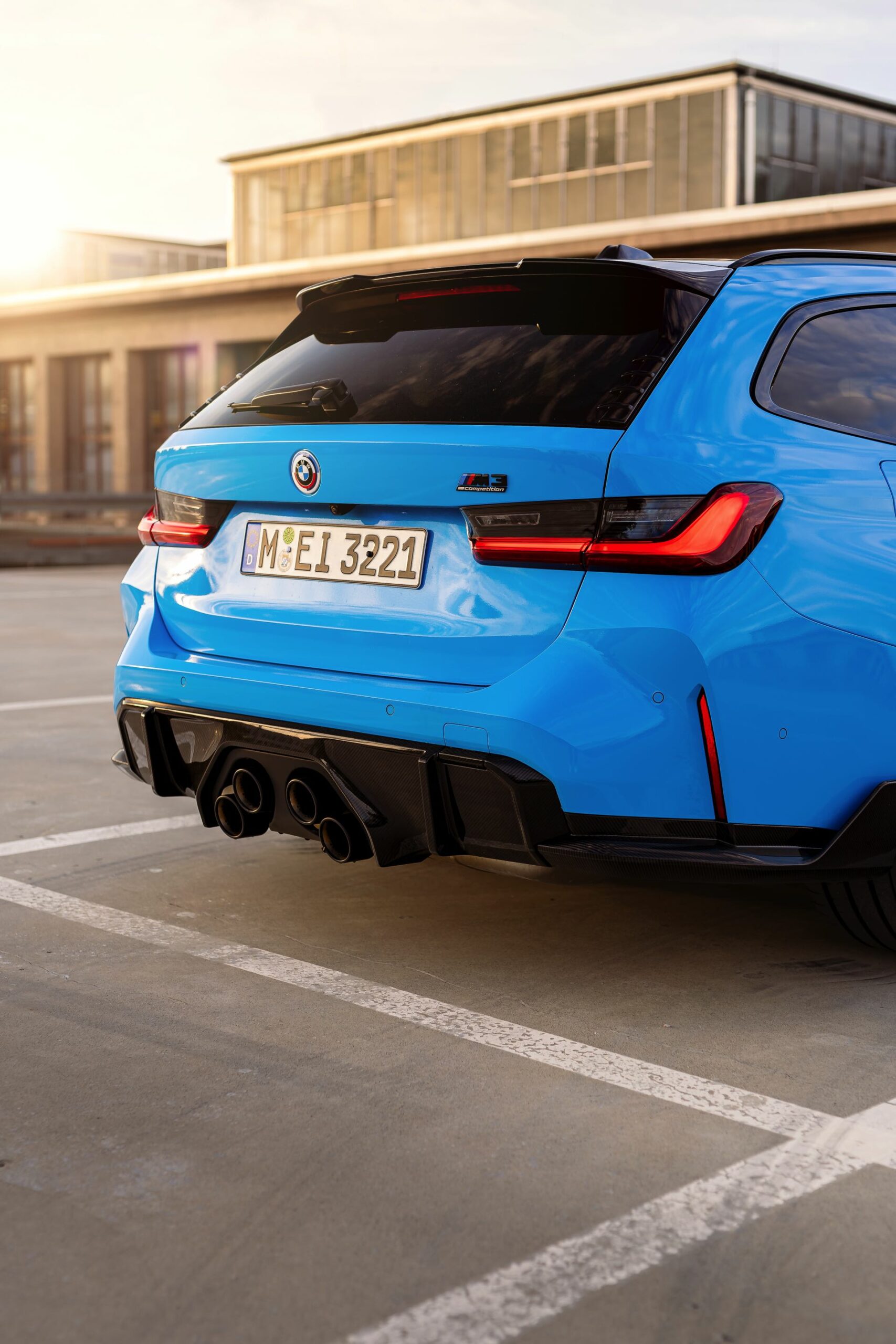 Der mit Abstand sportlichste und zweifellos auch extrovertierteste Kombi in der Geschichte von BMW präsentiert sich weiterhin farbenfroh und selbstbewusst: Auf einigen neuen Fotos von HaberkornPhotography sehen wir den neuen BMW M3 Touring (G81) erneut mit M Performance-Tuning und Individual-Lackierung in Rivierablau. Der Power-Kombi bietet dem Auge des Betrachters dabei ein ganzes Feuerwerk von Highlights, angefangen von der außergewöhnlichen Lackierung über zahlreiche Carbon-Anbauteile bis hin zu den 20 Zoll großen Felgen in Frozen Goldbronze.