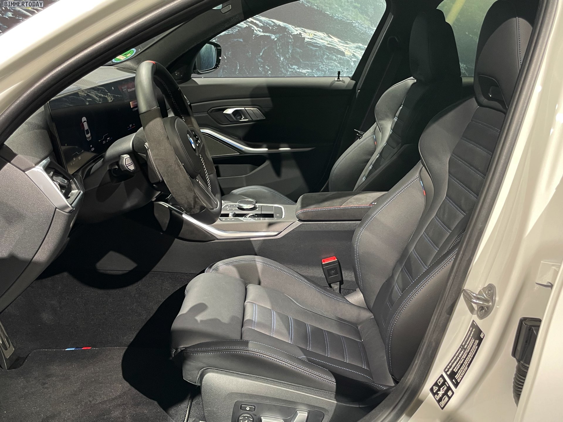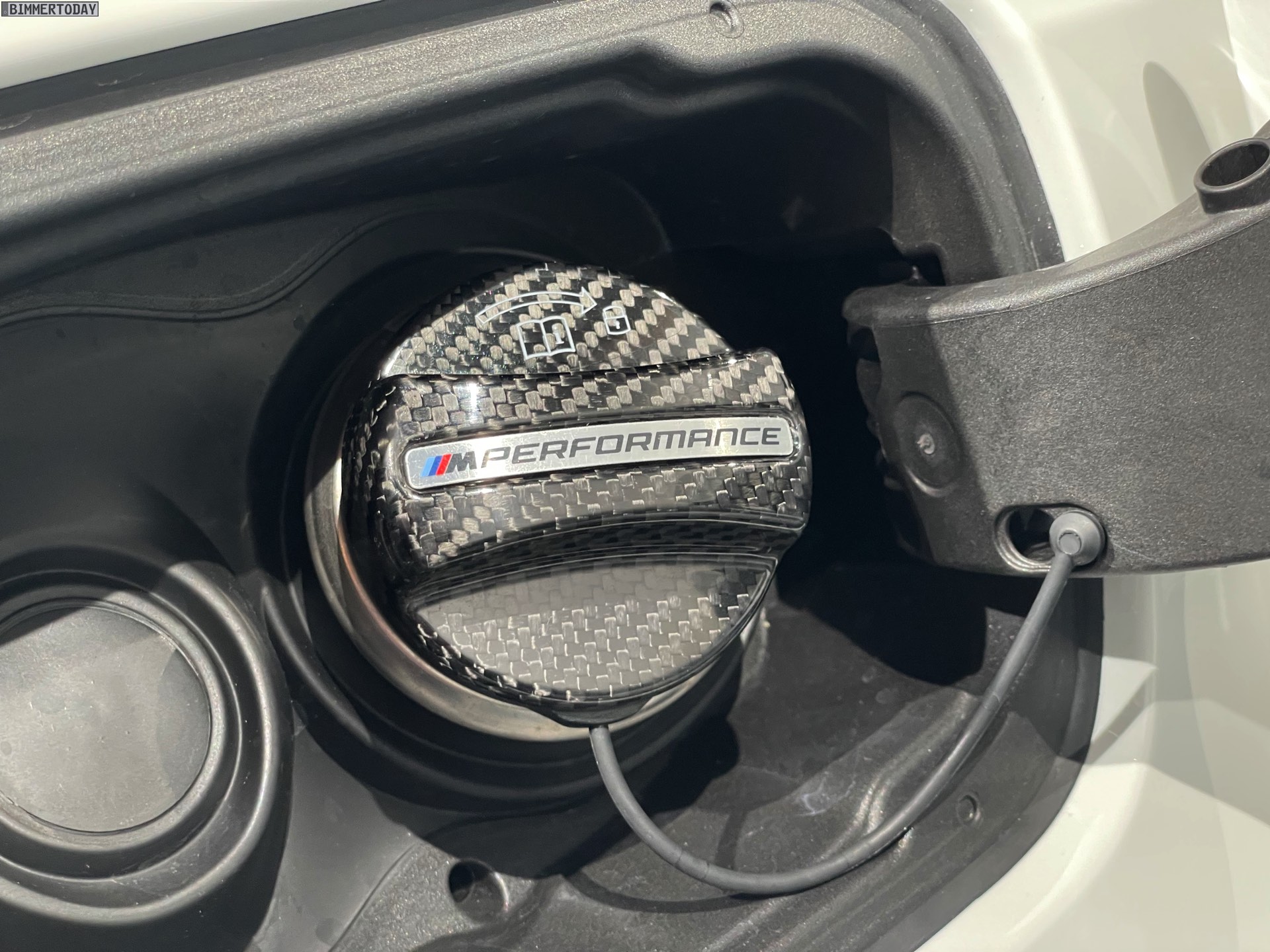 Neben einigen auffälligen Tuning-Teilen hält der gezeigte BMW M340i xDrive (G20 LCI) auch noch ein paar kleinere Überraschungen bereit, die erst bei genauerem Hinsehen ins Auge fallen: Die Abdeckung auf dem Tankeinfüllstutzen, die nur bei geöffneter Tankklappe überhaupt sichtbar ist, ist ebenfalls aus Carbon gefertigt und selbst auf den Tür-Pins befinden sich kleine M-Logos. Zumindest für den Fahrer wesentlich präsenter ist das M Performance-Lenkrad mit Alcantara-Bezug und farbiger 12-Uhr-Markierung, das natürlich auch für das 3er Facelift mit Curved-Display erhältlich ist.