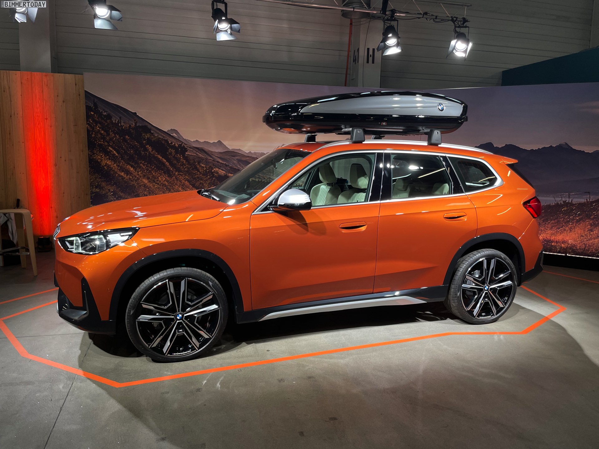 Mit vielen Teilen aus dem BMW Zubehör, aber vor allem auch mit Lackierung in Utah Orange können wir den neuen BMW X1 (U11) auf einigen Live-Fotos zeigen. Die dritte Generation des Kompakt-SUV ist dabei mit der etwas rustikaler gezeichneten xLine sowie einigen interessanten Optionen zu sehen, die nicht ab Werk erhältlich sind. Besonders ins Auge fällt dabei natürlich die Dachbox aus dem BMW Zubehör-Programm, die sich mit Hilfe von wenigen geübten Handgriffen auf dem Dach des X1 – und natürlich auch auf dem des rein elektrischen BMW iX1 – befestigen lässt und so den Stauraum deutlich vergrößert.