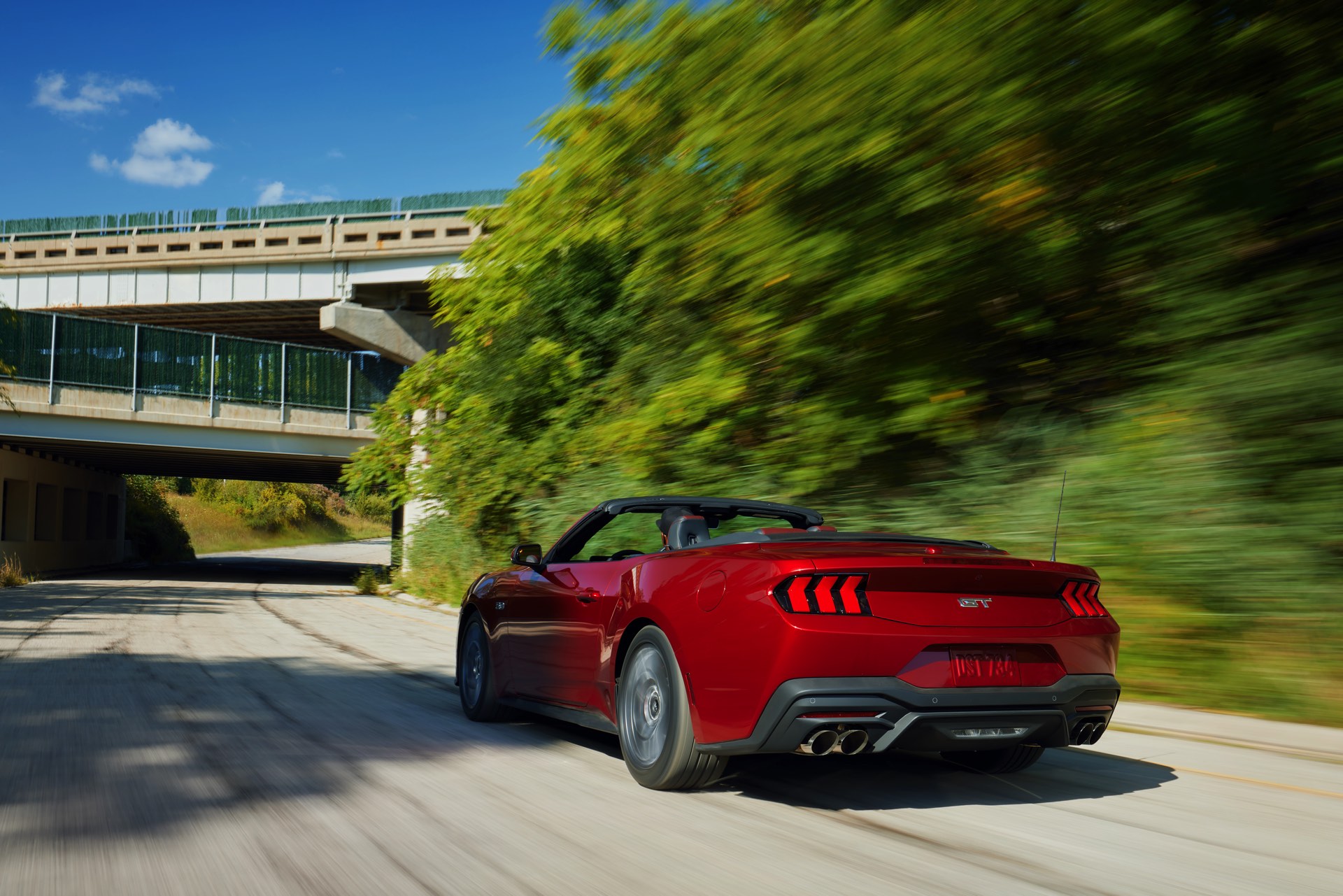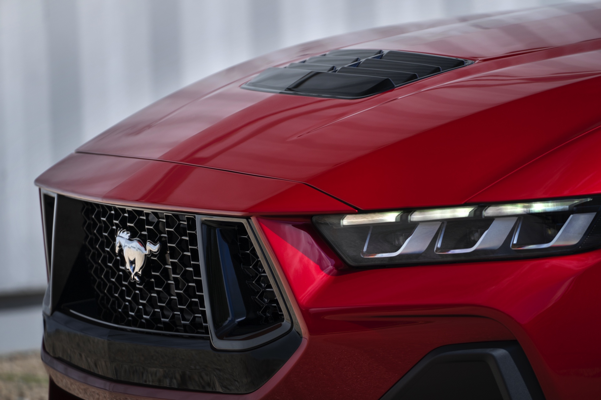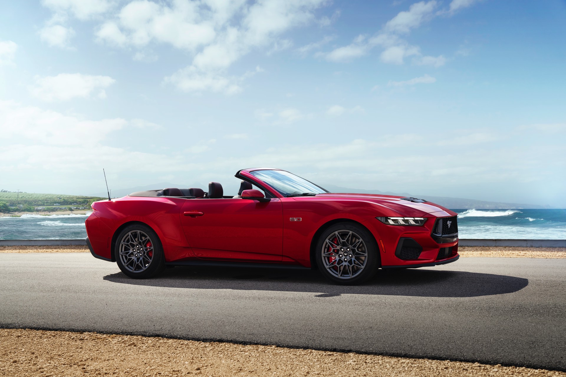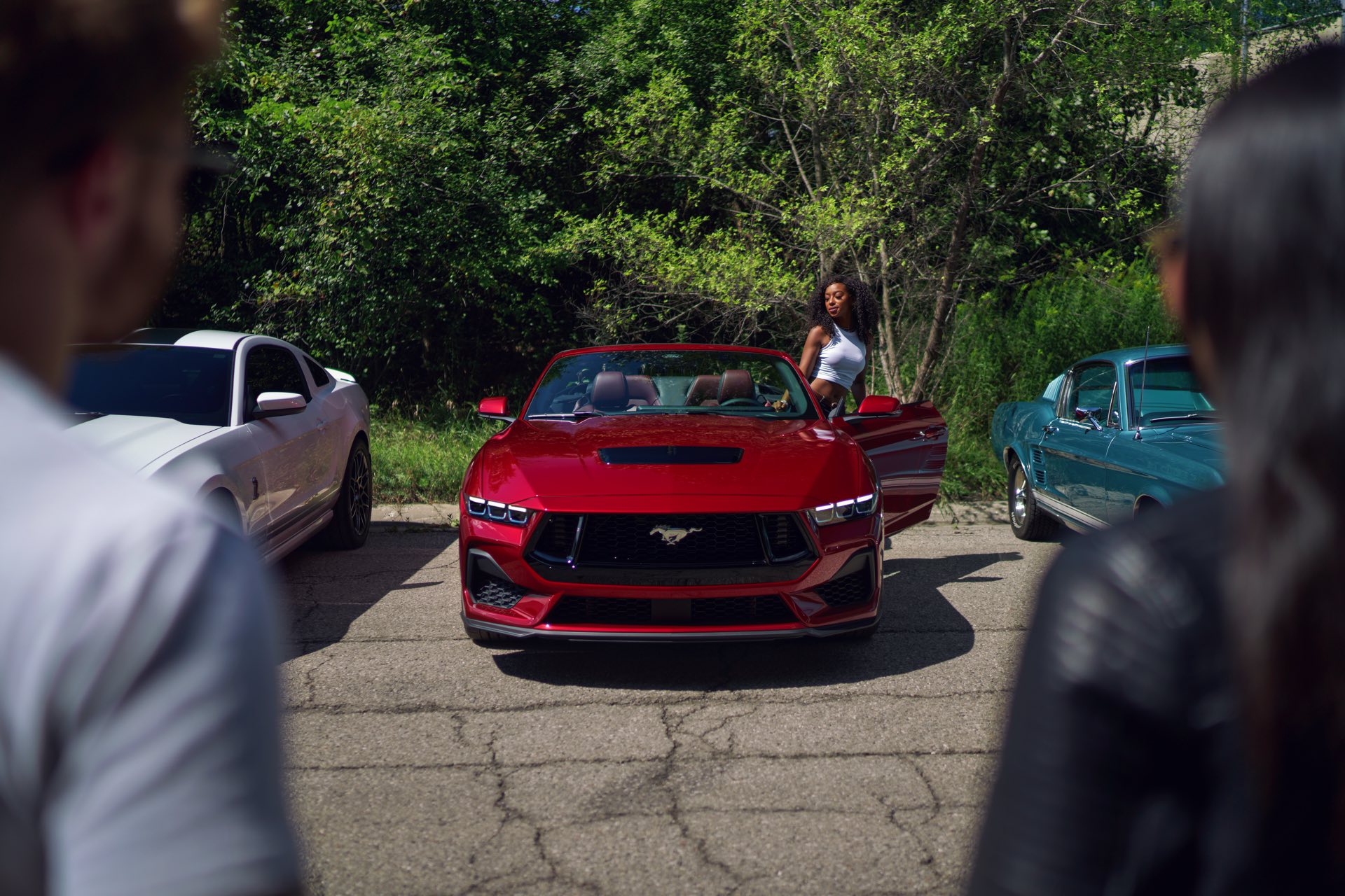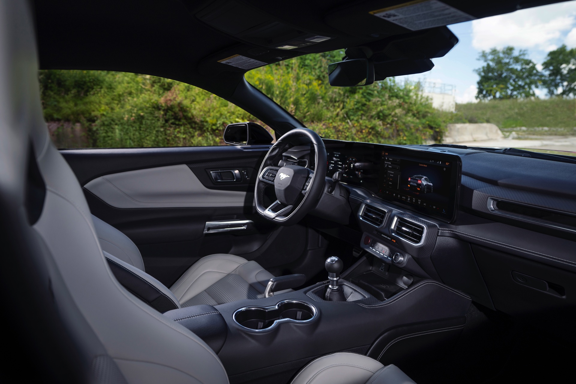 Die Designer haben sich bei der Neuauflage für eine Evolution des typischen Mustang-Looks entschieden und schaffen es so, dass Coupé und Cabrio auf den ersten Blick als Mitglied der Mustang-Familie erkennbar sind und dennoch sehr modern wirken. Auch der Innenraum präsentiert sich Mustang-typisch fahrerorientiert, wie bei diversen aktuellen BMW-Modellen kommt dabei ein zum Fahrer geschwungenes Curved-Display für Infotainment-Zwecke zum Einsatz. Der Handbrems-Hebel in der Mittelkonsole sieht zwar nach klassischer Handbremse aus, dient aber nur zur Bedienung einer heute typischen elektronischen Handbremse.