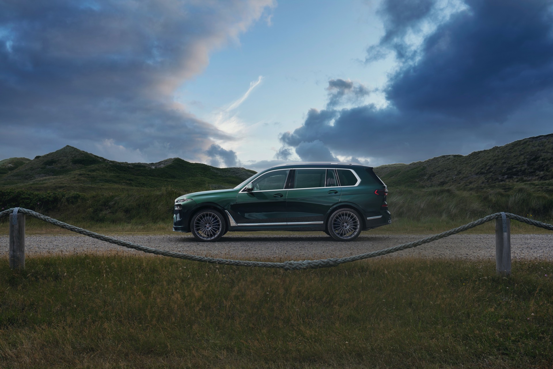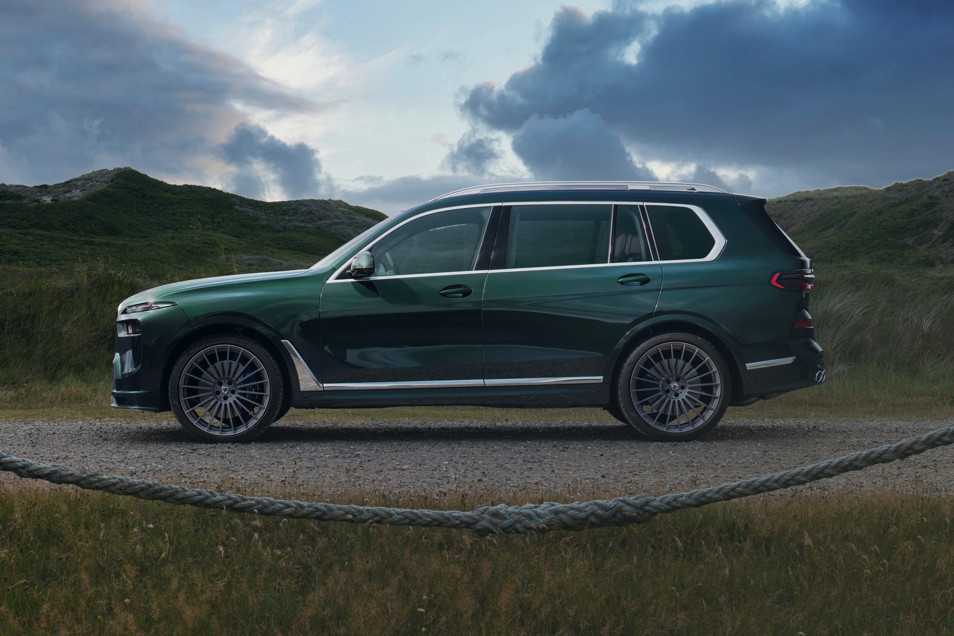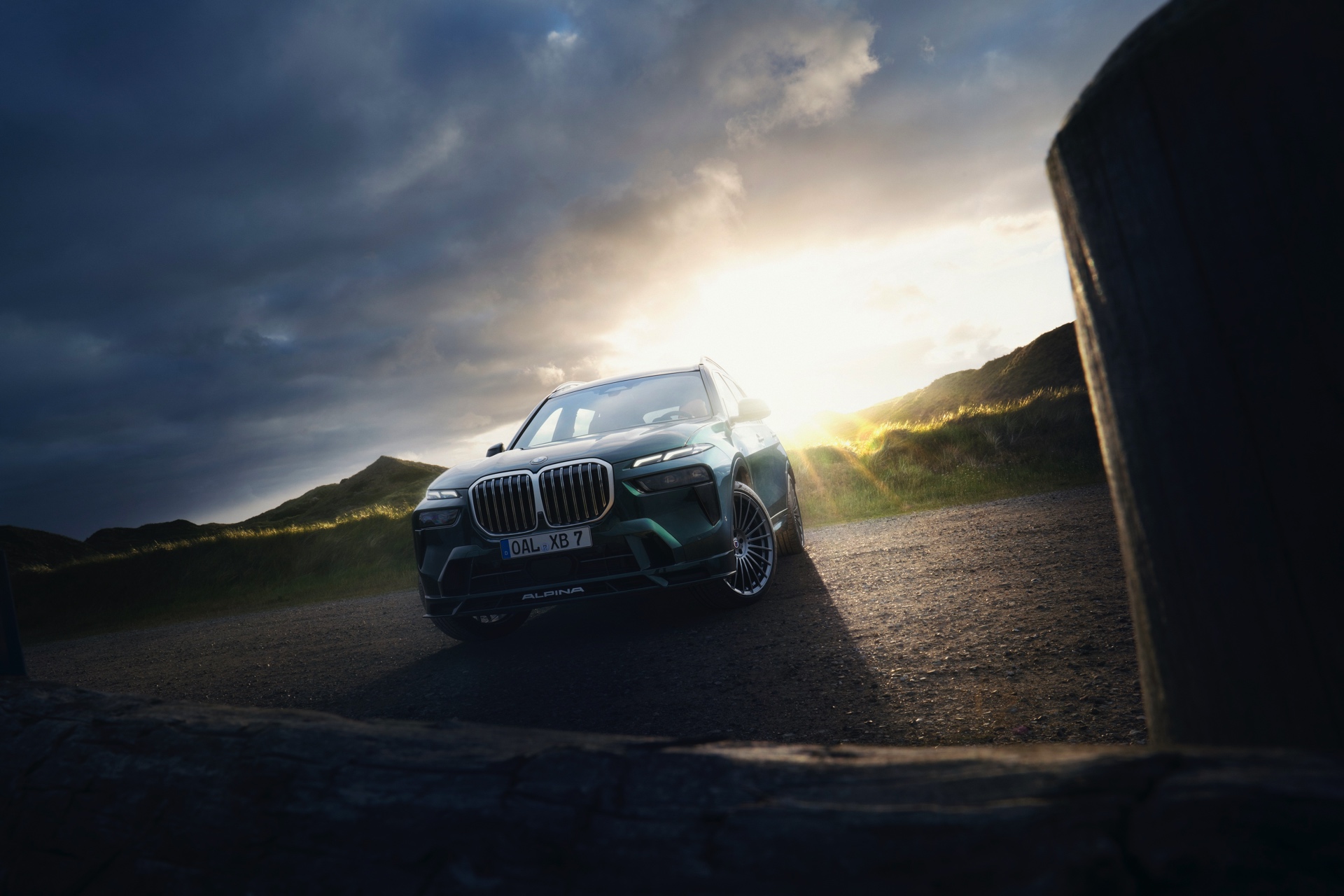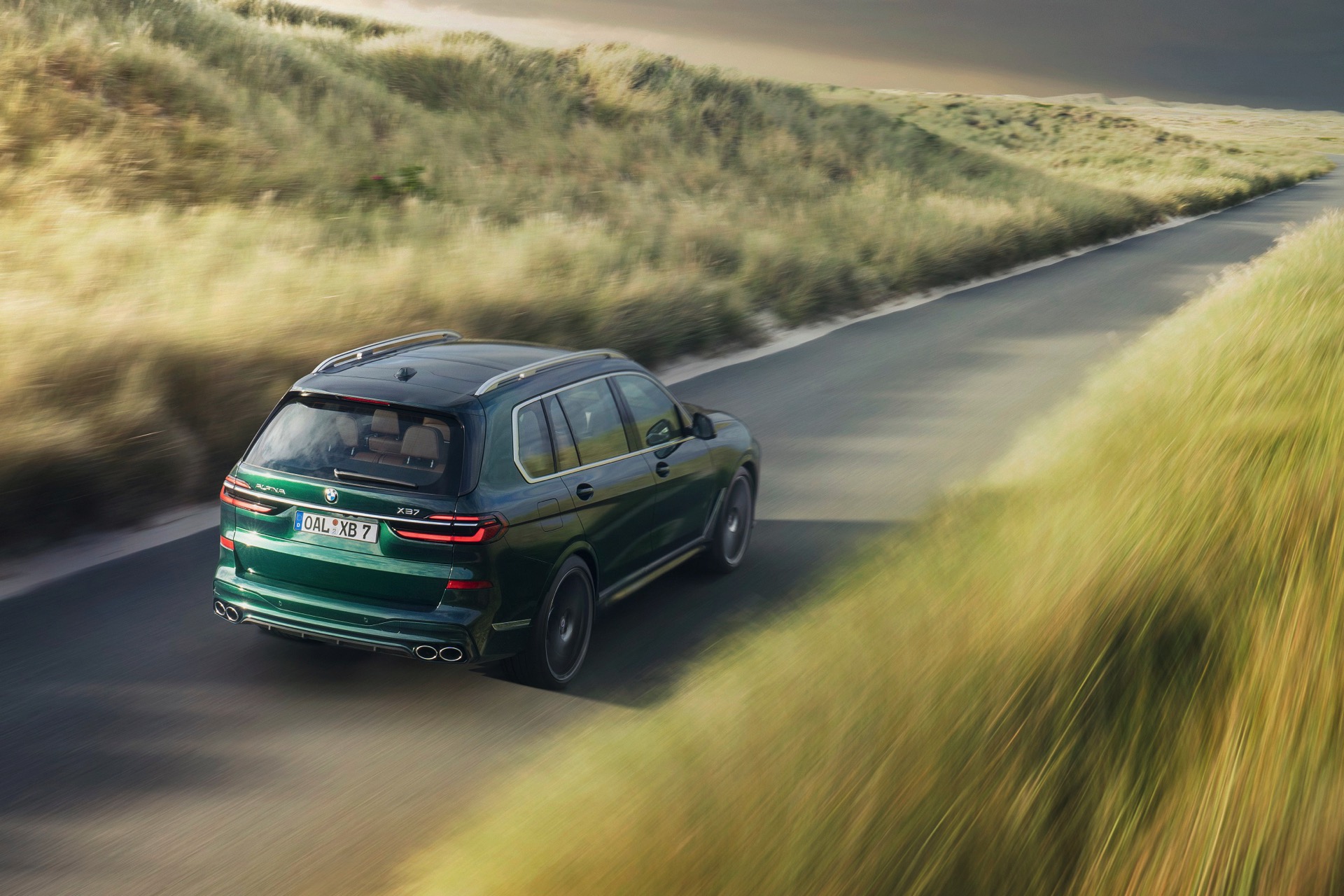 In Szene gesetzt wird das BMW Alpina XB7 Facelift 2022 in einer Serie neuer Fotos und in einem Video, das Alpina auf dem hauseigenen Youtube-Kanal veröffentlicht hat. Wie schon auf den ersten Bildern glänzt das SUV auch dieses Mal in kräftigem Alpina Grün II, einer mit 3.400 Euro Aufpreis verbundenen Sonderlackierung. Alternativ stehen natürlich auch Alpina Blau und eine Vielzahl von bekannten BMW-Farben zur Wahl, eine weitere Individualisierung ist durch die schwarzen Nieren der Shadow Line mit erweiterten Umfängen möglich.