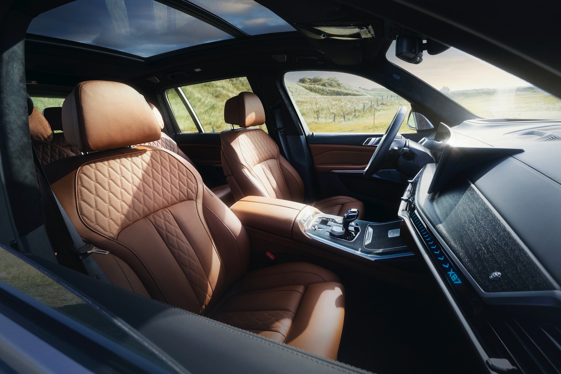 Deutlich aufgewertet präsentiert sich neben dem Exterieur auch der Innenraum des Edel-X7: Genau wie der iX und andere kürzlich erschienene Modelle setzt auch der XB7 auf ein großes Curved-Display und iDrive 8. Vor dem Beifahrer gibt es zudem eine durchleuchtete Interieur-Leiste, wobei sich die Farbe der Beleuchtung über das Infotainment-System wählen und einstellen lässt.