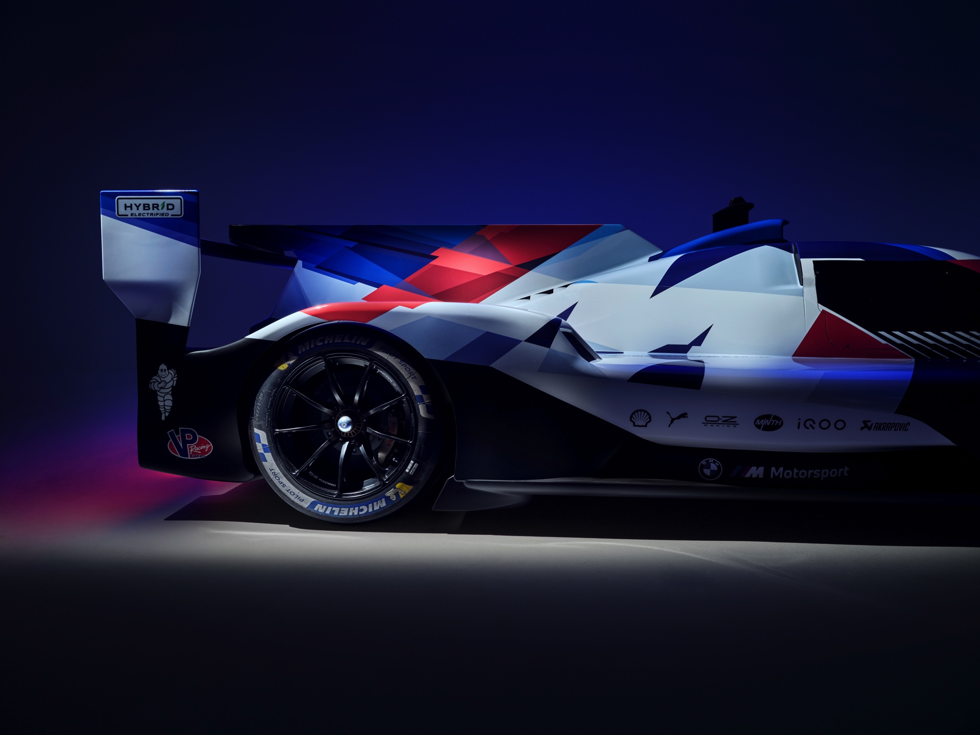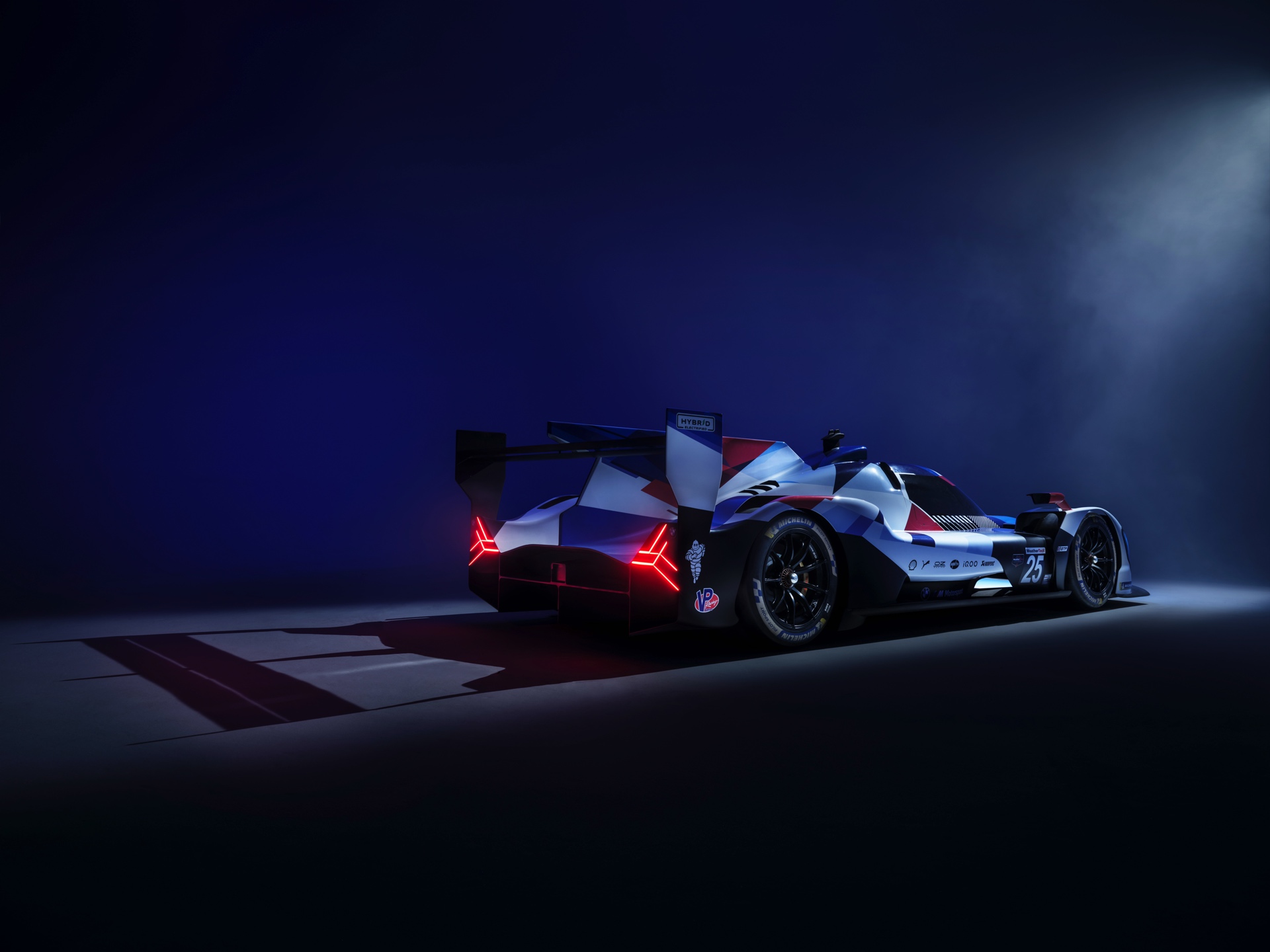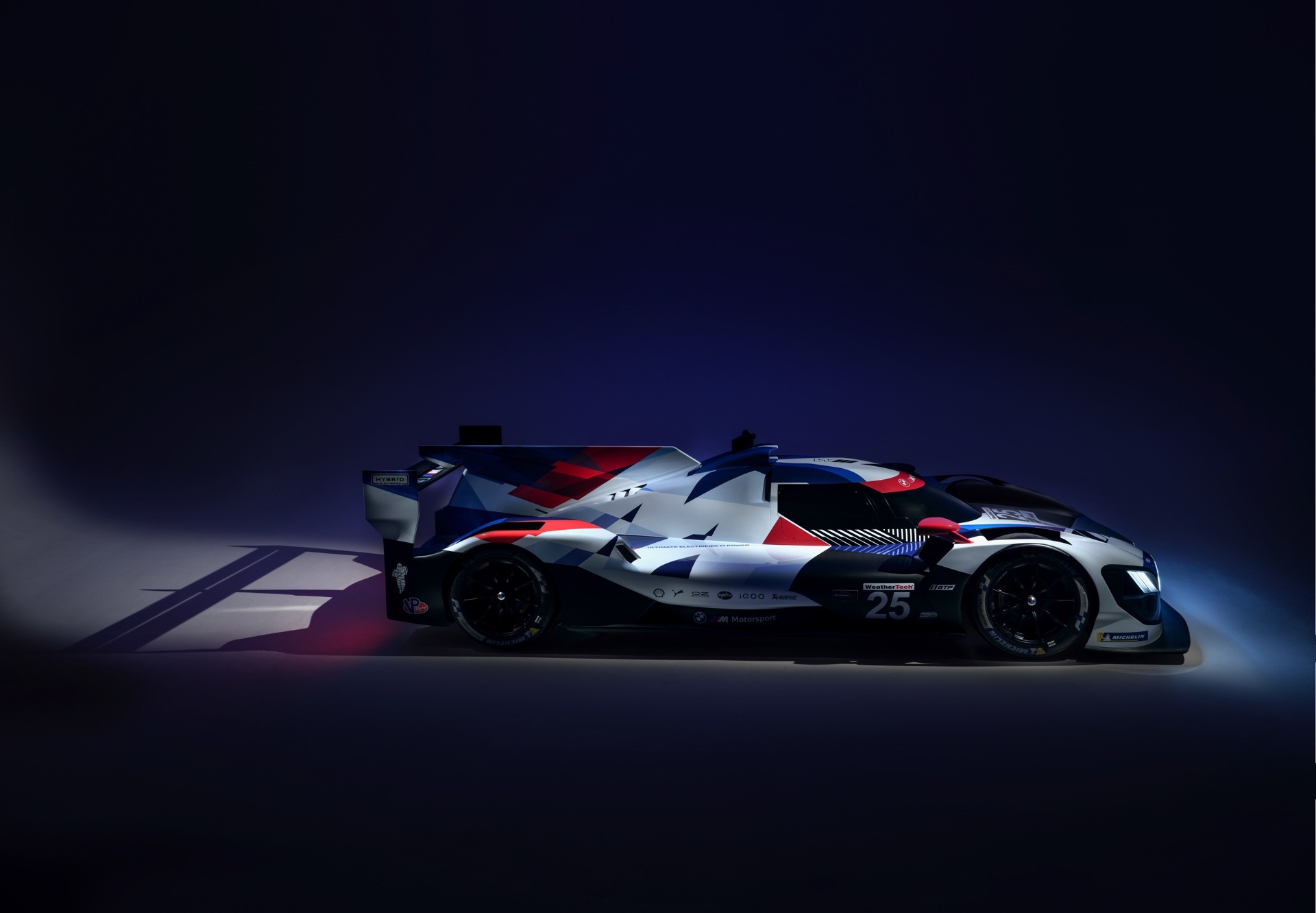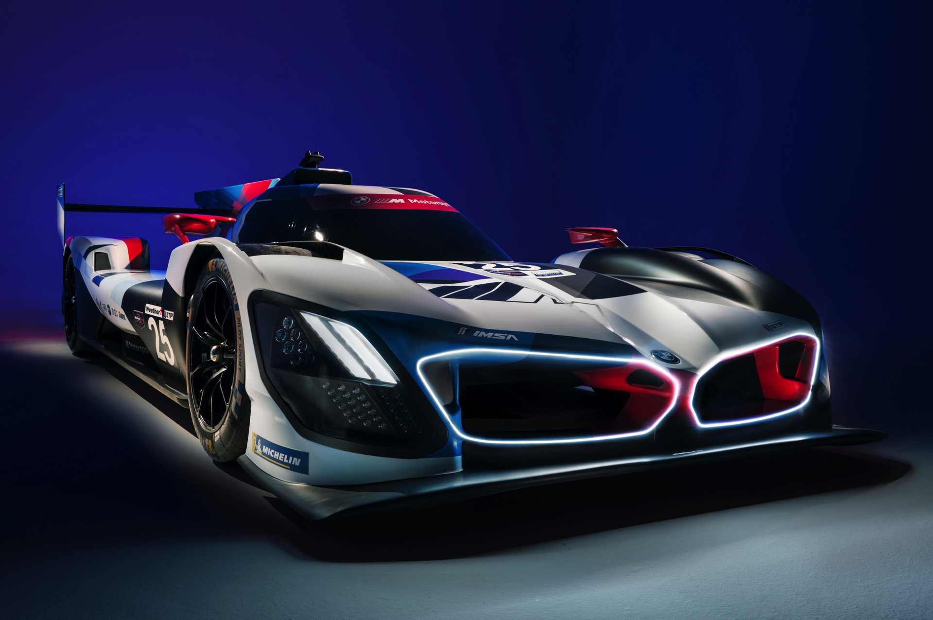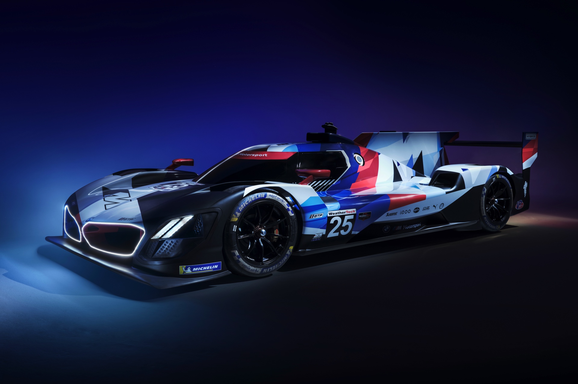 Auf den ersten Blick dreht sich alles um die beleuchtete Niere, aber bei seinen 24-Stunden-Rennen wird der BMW M Hybrid V8 natürlich auch viele Runden im hellen Tageslicht absolvieren. Damit er auch ohne die Beleuchtung der markanten Niere aus jeder Perspektive klar als BMW erkennbar ist, wird der je nach BoP-Einstufung rund 640 PS starke LMDh-Rennwagen ein riesiges M-Logo entlang der kompletten Fahrzeuglänge von 5,10 Meter tragen. Die offizielle Livery in den BMW Motorsport-Farben wurde heute Nacht im Petersen Museum in Los Angeles vorgestellt.