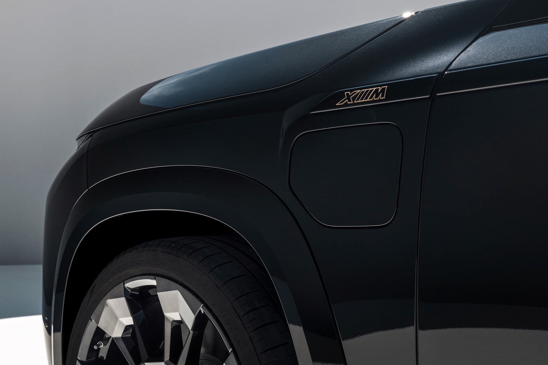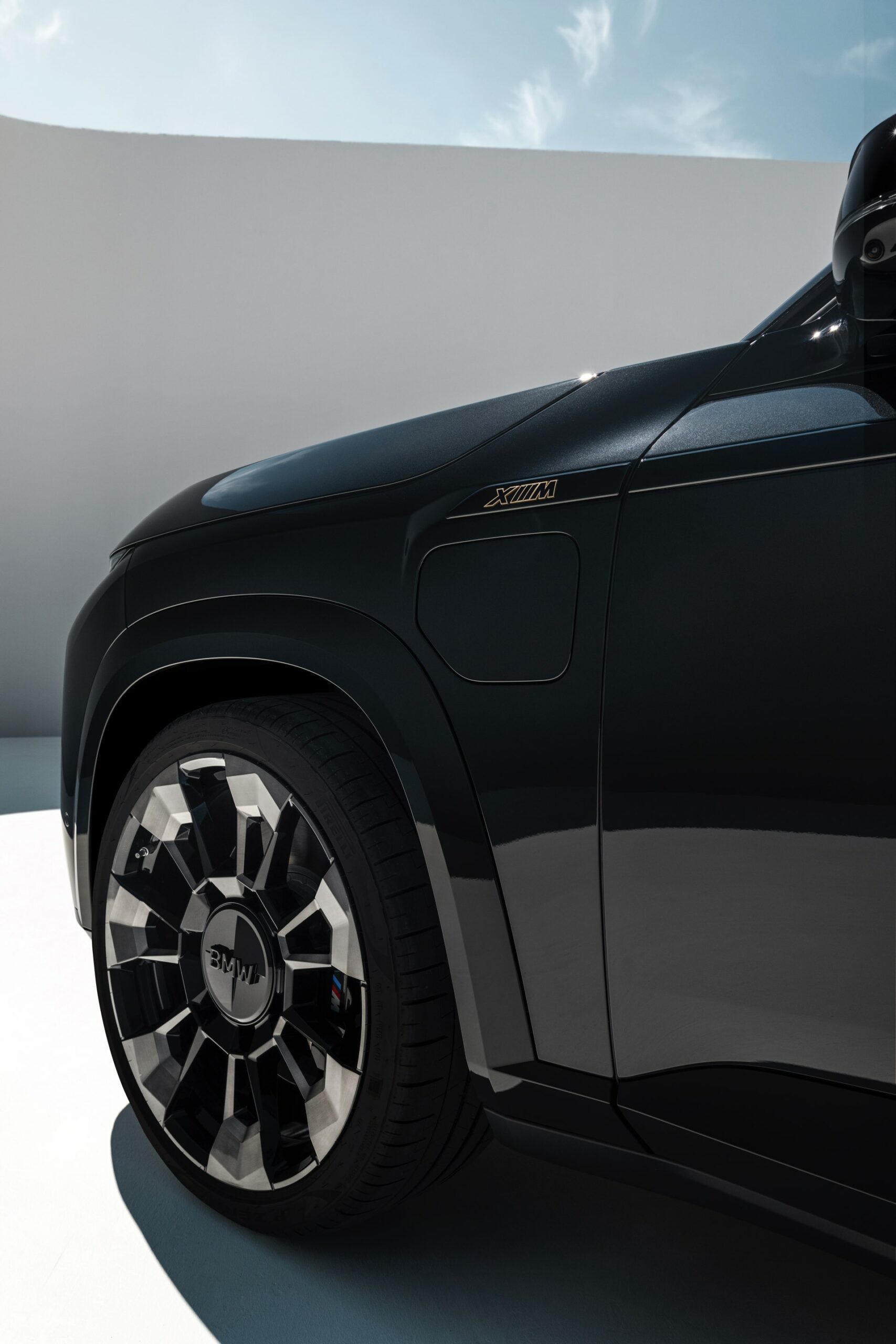 Zur Individualisierung und zum imposanten Gesamt-Auftritt trägt auch das Felgen-Programm bei: Schon serienmäßig steht der BMW XM auf 21-Zöllern, aber gegen Aufpreis werden auch Leichtmetallräder in 22 und sogar 23 Zoll angeboten. Im Gegensatz zu allen anderen bisherigen Serien-BMW verzichtet der XM außerdem auf ein BMW-Logo als Nabenabdeckung, stattdessen kommt ein dreidimensionaler BMW-Schriftzug zum Einsatz. Wer einen besonders markanten Akzent setzen will, kann die exklusiv für den XM gestalteten 23-Zöller auch mit Lackierung in dunklem Nightgold bestellen.