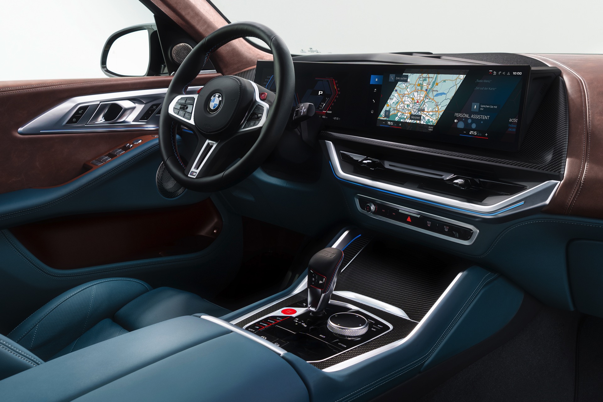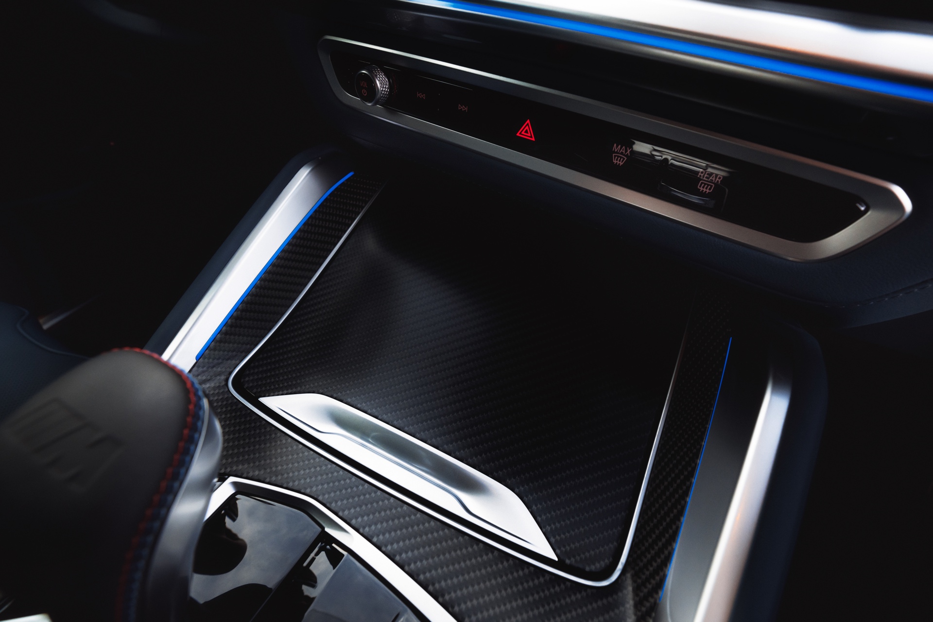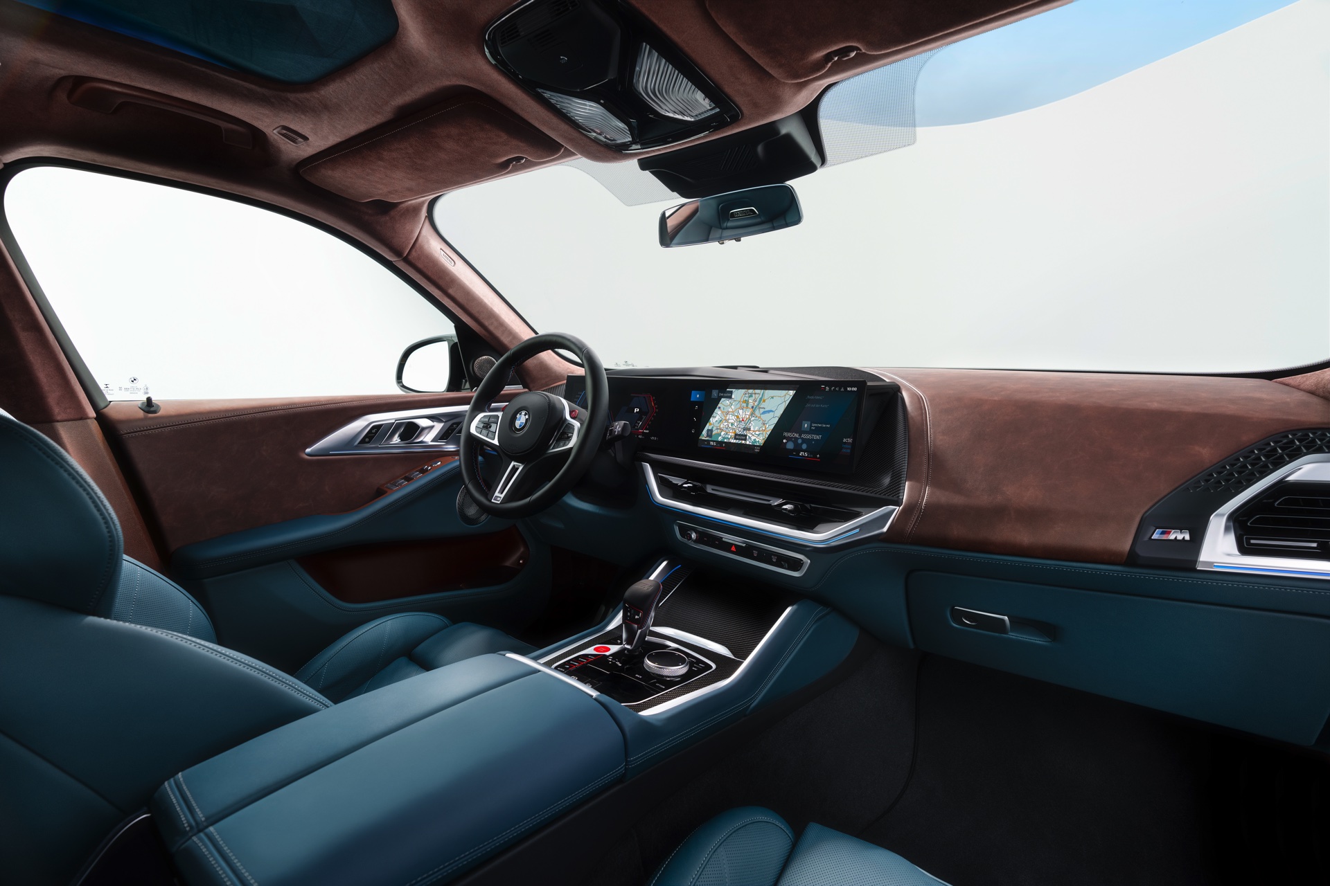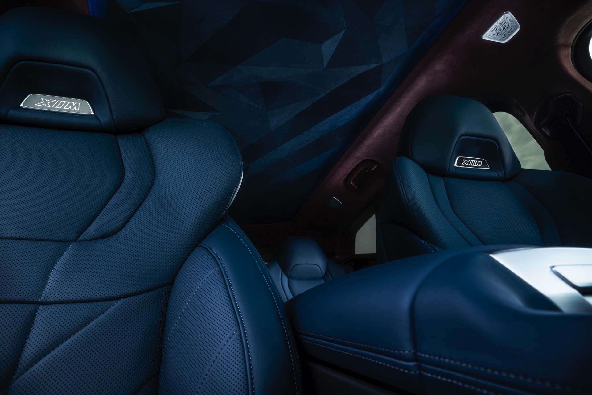 Um im Segment der extrem leistungsstarken SUV nicht übersehen zu werden, durften die Designer jede Zurückhaltung über Bord werfen und dem ersten eigenständigen M-Modell seit dem legendären M1 eine unverwechselbare Außenhaut verpassen. Größter Hingucker sind sicher die beleuchteten Nieren und die Split Headlights, aber auch die Seitenansicht und das Heck mit seinen beiden in die Scheibe gravierten BMW-Logos links und rechts, extrem flach gezeichneten Rückleuchten sowie den vier übereinander angeordneten Endrohren bieten viel Raum für Diskussionen. Ein spannendes Detail sind auch die Naben-Abdeckungen auf den bis zu 23 Zoll großen Felgen, denn statt einem BMW-Logo tragen diese einen schwarzen BMW-Schriftzug. "