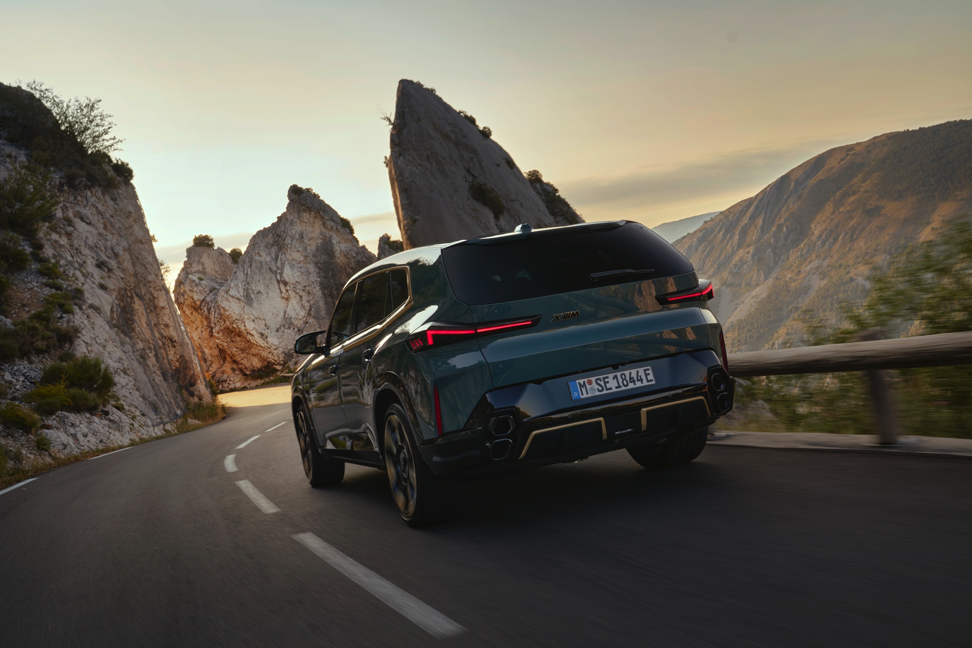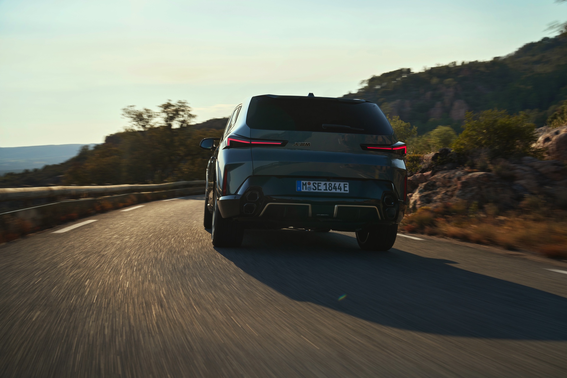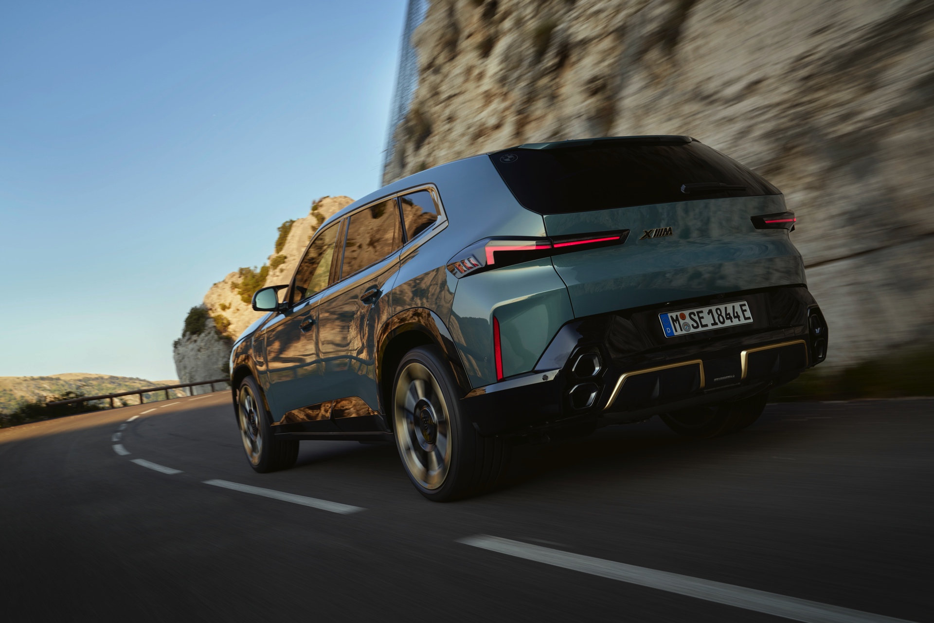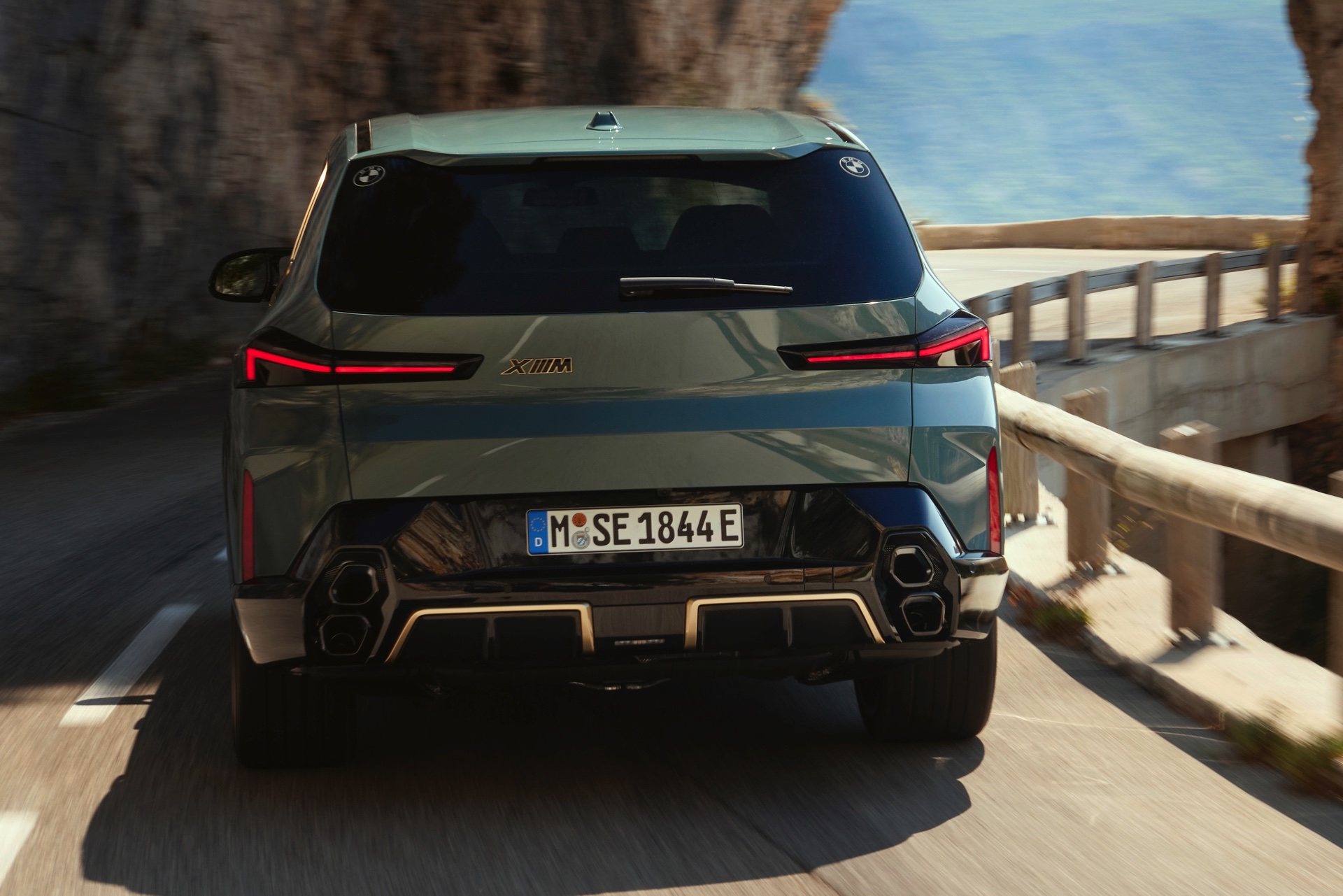 Um im Segment der extrem leistungsstarken SUV nicht übersehen zu werden, durften die Designer jede Zurückhaltung über Bord werfen und dem ersten eigenständigen M-Modell seit dem legendären M1 eine unverwechselbare Außenhaut verpassen. Größter Hingucker sind sicher die beleuchteten Nieren und die Split Headlights, aber auch die Seitenansicht und das Heck mit seinen beiden in die Scheibe gravierten BMW-Logos links und rechts, extrem flach gezeichneten Rückleuchten sowie den vier übereinander angeordneten Endrohren bieten viel Raum für Diskussionen. Ein spannendes Detail sind auch die Naben-Abdeckungen auf den bis zu 23 Zoll großen Felgen, denn statt einem BMW-Logo tragen diese einen schwarzen BMW-Schriftzug. "