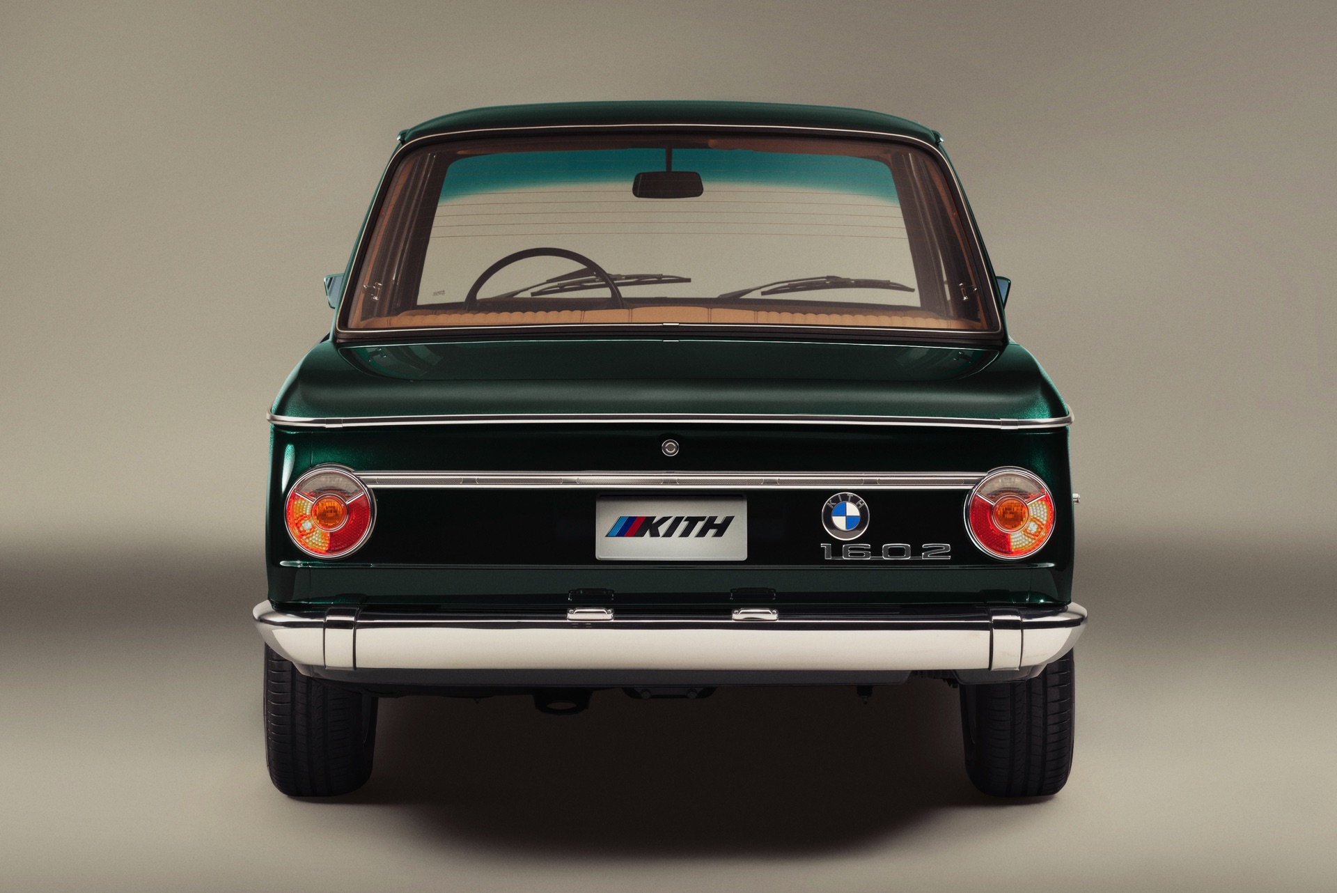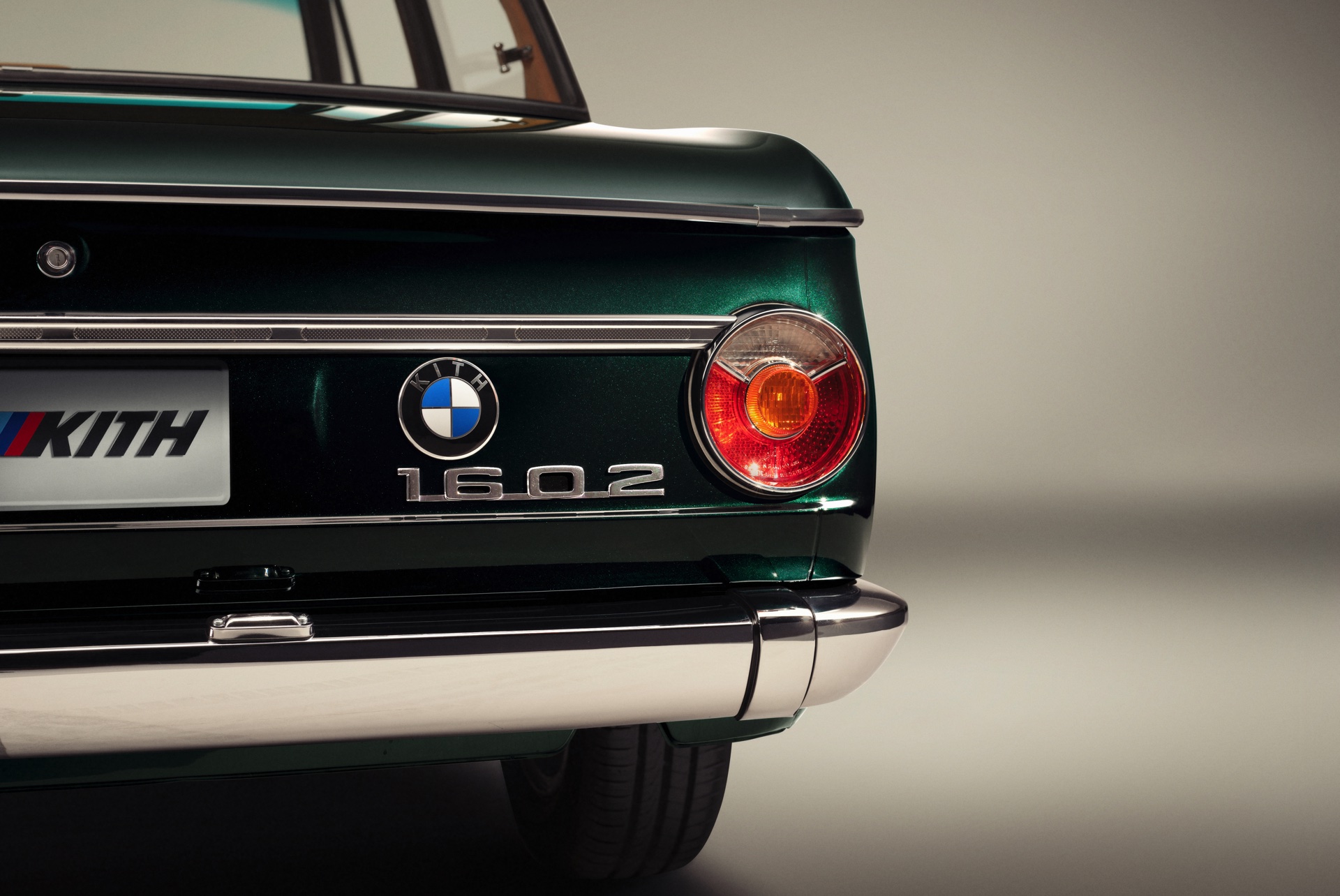 Ein interessantes Detail ist erneut das BMW-Logo an der Front, denn dieses kommt mit einer speziellen Einfassung als Hinweis auf die Exklusivität des Fahrzeugs. Noch einen Schritt weiter geht das BMW 1602 Elektro-Unikat: Hier wurden wie schon beim M4 sogar die BMW-Buchstaben innerhalb der Logos ausgetauscht, sodass im schwarzen äußeren Ring die Buchstaben KITH stehen dürfen. Der einzigartige 1602 in Vitality Green wird nun Bestandteil der BMW-Sammlung von Ronnie Fieg, zu der neben diversen E30 unter anderem auch ein seltener BMW M6 (E24) und ein BMW 8er (E31) gehören (Fotos am ende des Artikels).