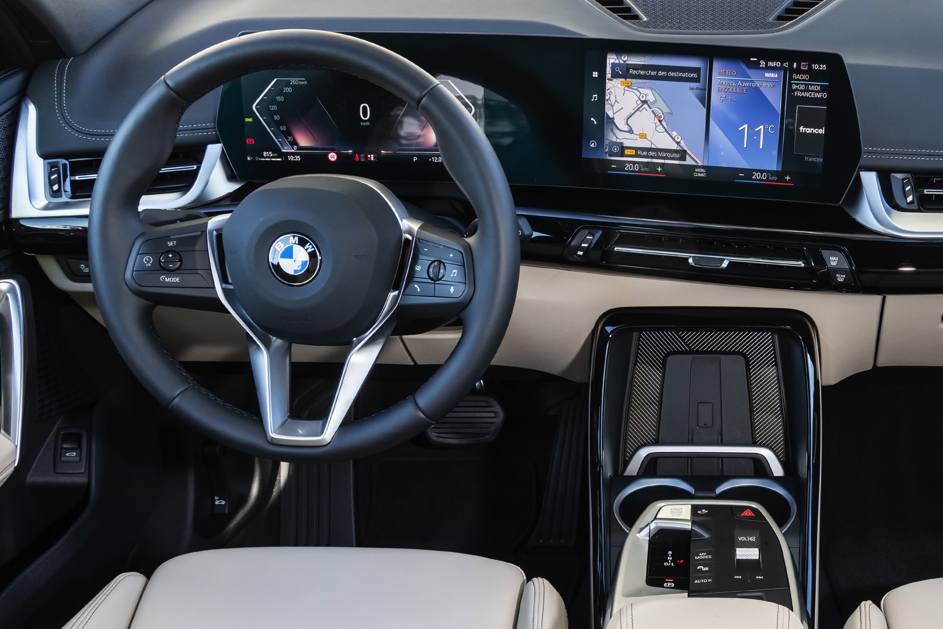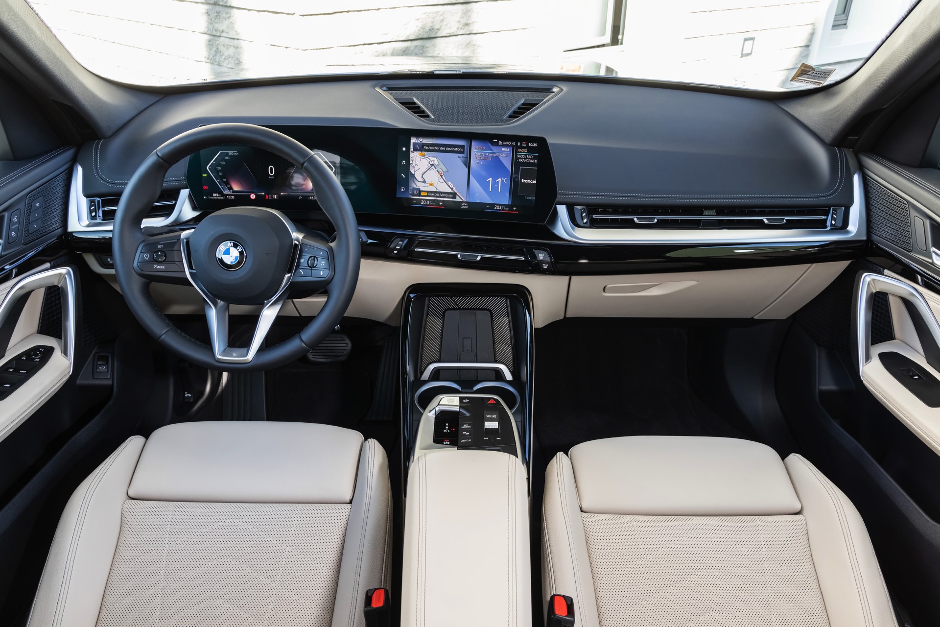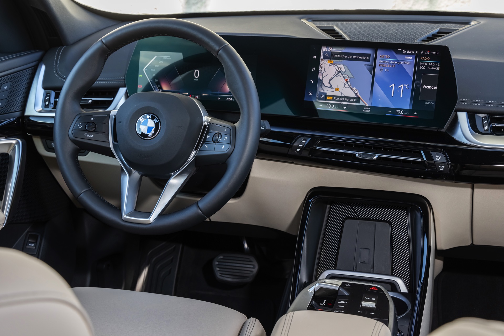 Im Innenraum zeigt sich, dass auch die Serienausstattung recht umfangreich ist: Das BMW Live Cockpit Plus mit dem aus zwei jeweils über 10 Zoll großen Displays bestehenden Curved-Display für Anzeigen und Infotainment ist genau wie der Parking Assistant inklusive PDC und Rückfahrkamera sowie 7-Gang-DKG und Zwei-Zonen-Klimaautomatik immer mit an Bord. Schade oder zumindest ungewohnt bleibt, dass es den bewährten iDrive-Controller im neuen BMW X1 (U11) weder für Geld noch gute Worte gibt, weil die Entwickler stattdessen voll auf eine Steuerung per Touchscreen und Spracheingabe setzen.