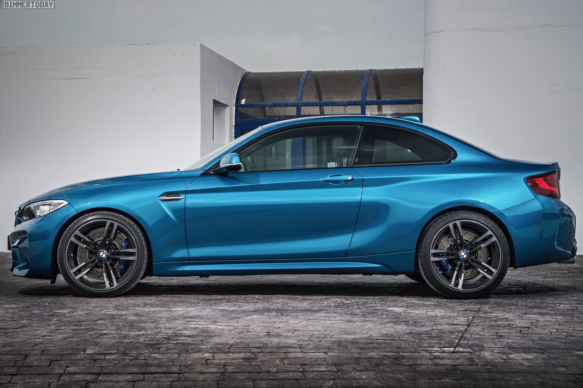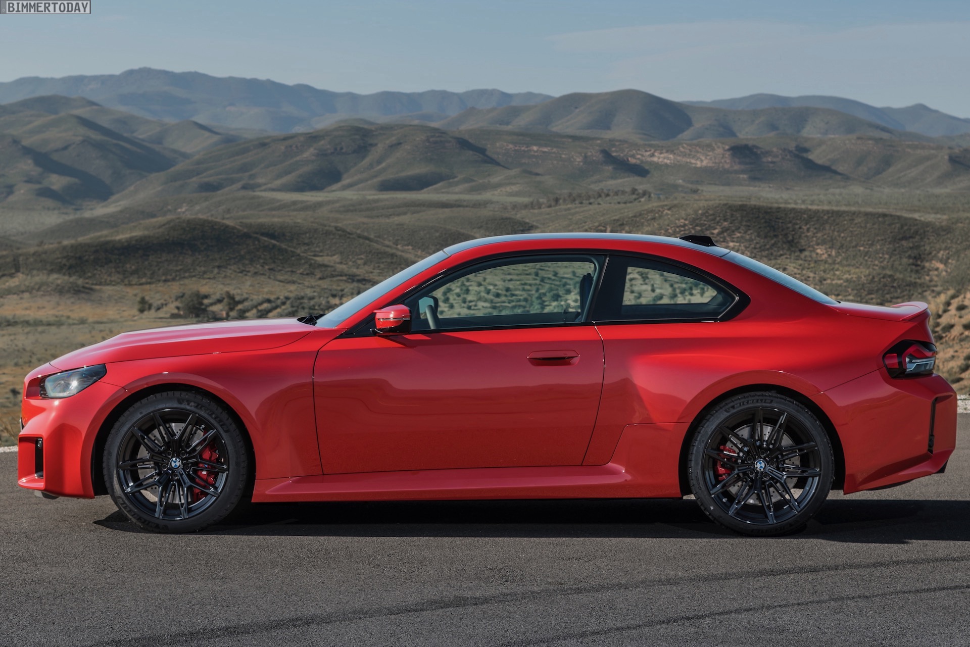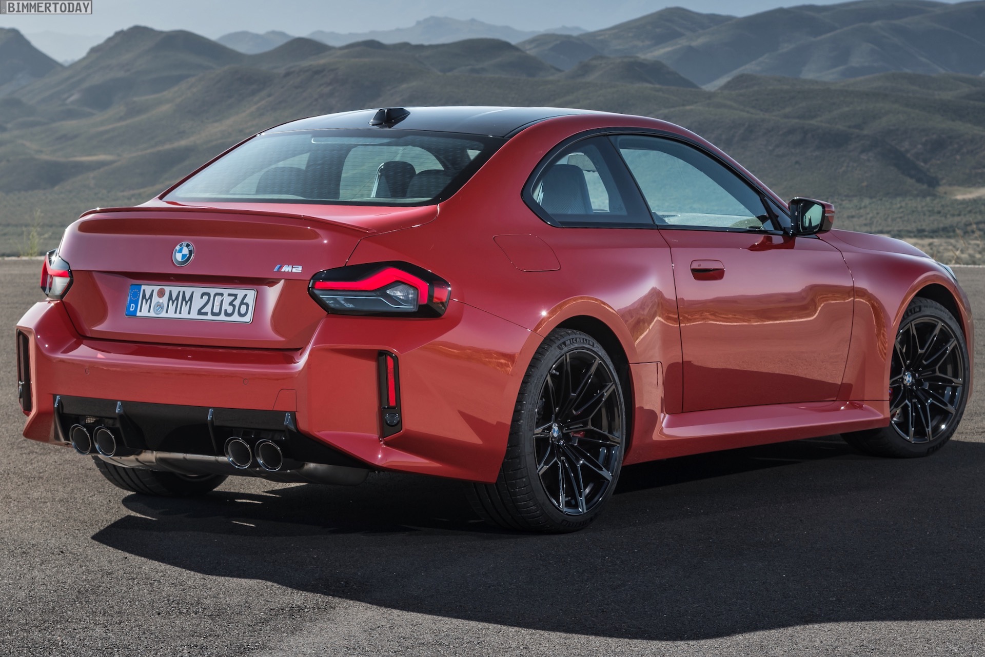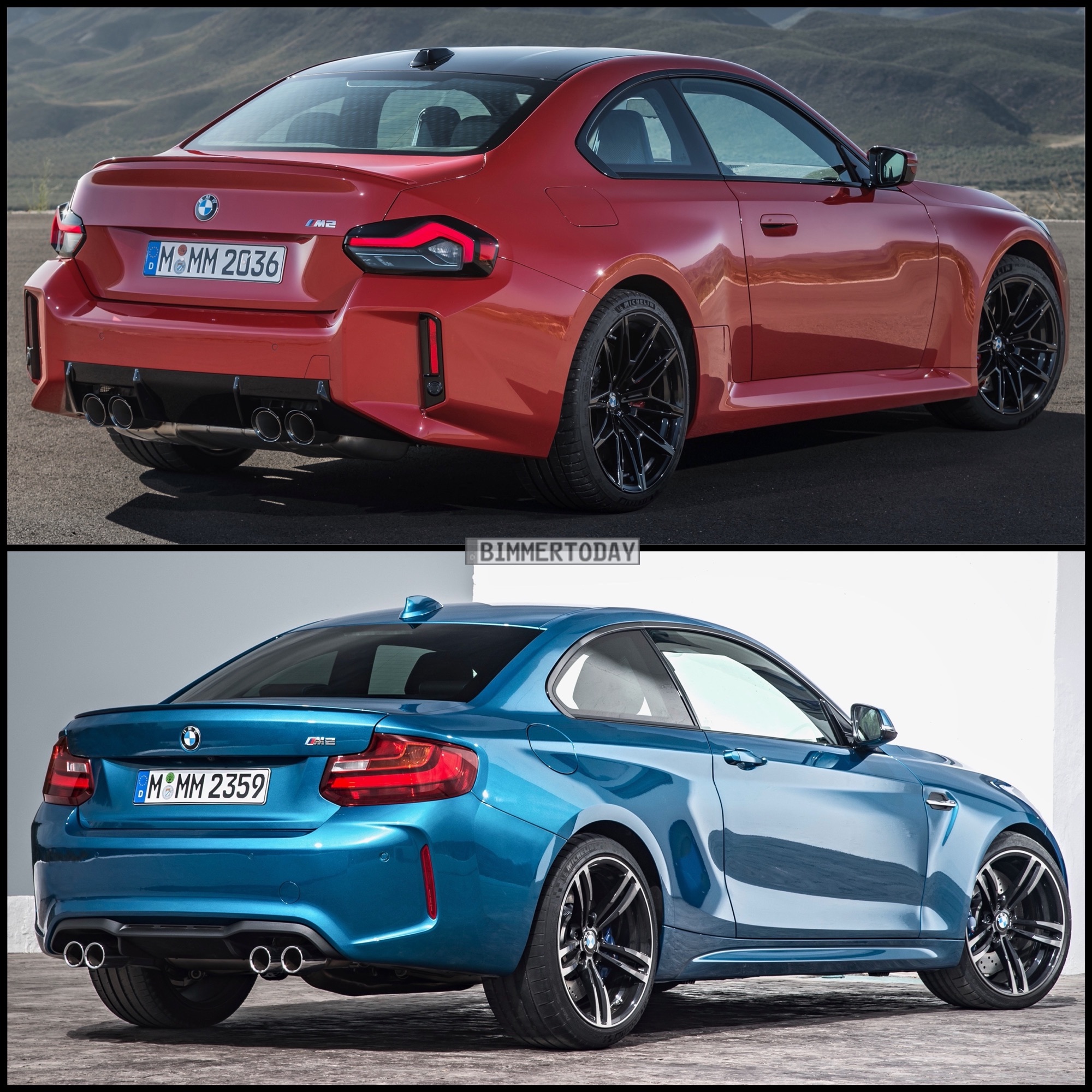 Eine komplett eigenständige Front mit veränderter Nierenform und horizontalen Streben, modifizierten Scheinwerfern und beinahe rechteckigen Lufteinlässen darunter werden mit noch markanter ausgestellten Kotflügeln und einem aggressiven Heck kombiniert, sodass Verwechslungen mit einem regulären 2er Coupé (G42) aus jedem Blickwinkel ausgeschlossen sind. Im Vergleich zu seinem harmonisch gezeichneten Vorgänger wirkt der neue BMW M2 geradezu provokant brutal und scheint gar nicht erst zu versuchen, jedermann zu gefallen. Der kantige Ansatz wird auch in der Seitenansicht deutlich: Die erheblich verbreiterten Kotflügel sind beim zweiten M2 noch stärker ausgeformt, während sie beim Vorgänger vergleichsweise sanft ins Gesamtbild integriert wurden.