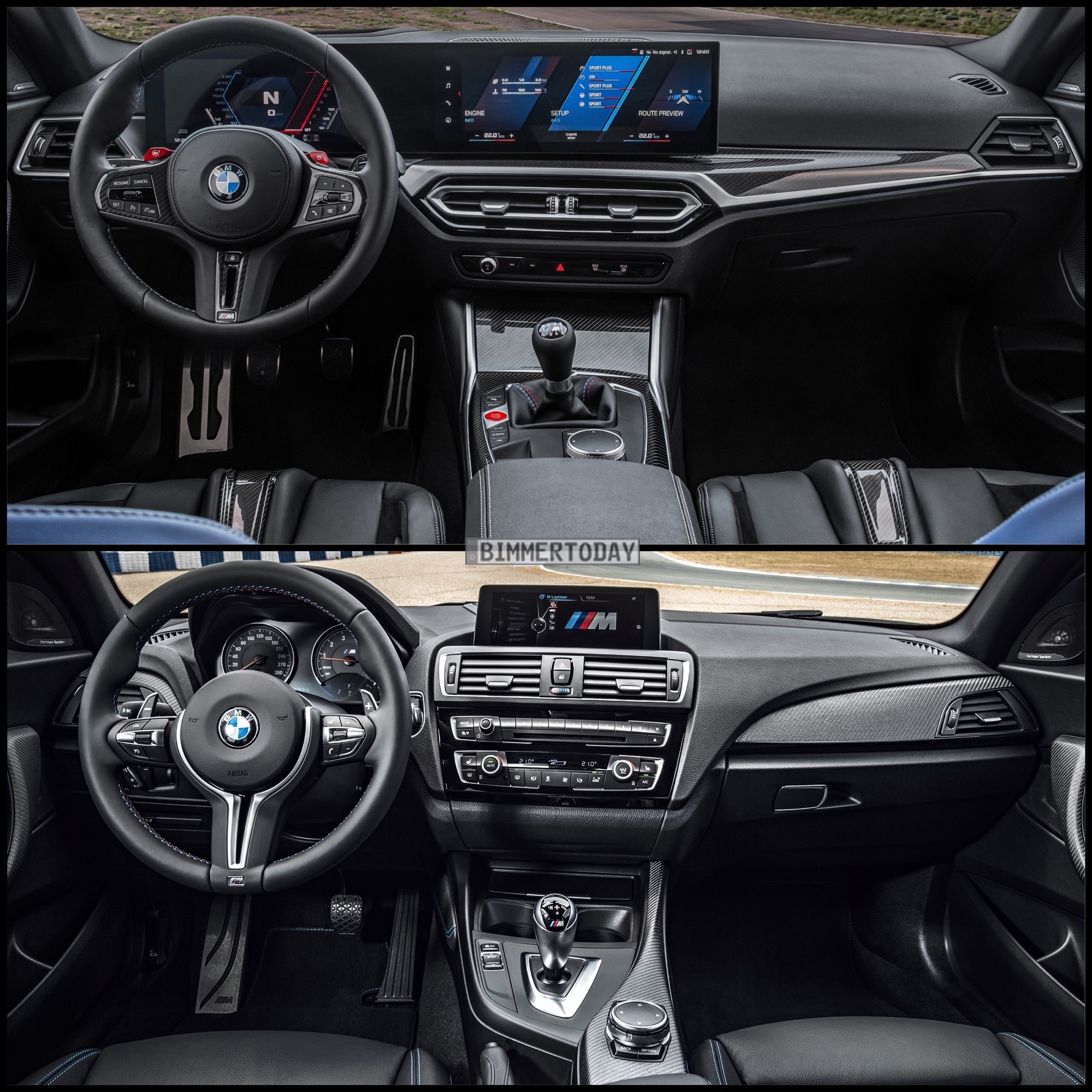 Der technische Fortschritt wird auch im Innenraum sichtbar: Im Vergleich mit dem Anzeigen-Verbund des Vorgängers wirkt das Curved-Display des neuen M2 geradezu riesig, außerdem gibt es nun auf Wunsch auch die aus M3 und M4 bekannten M Carbon-Schalensitze. Dass heute ein anderer Wind als zu Zeiten des ersten M2 weht, zeigt sich allerdings auch beim Preis: War der F87 zum Marktstart 2016 ab 56.700 Euro erhältlich, werden für die 90 PS stärkere Neuauflage 2023 mindestens 72.800 Euro fällig.