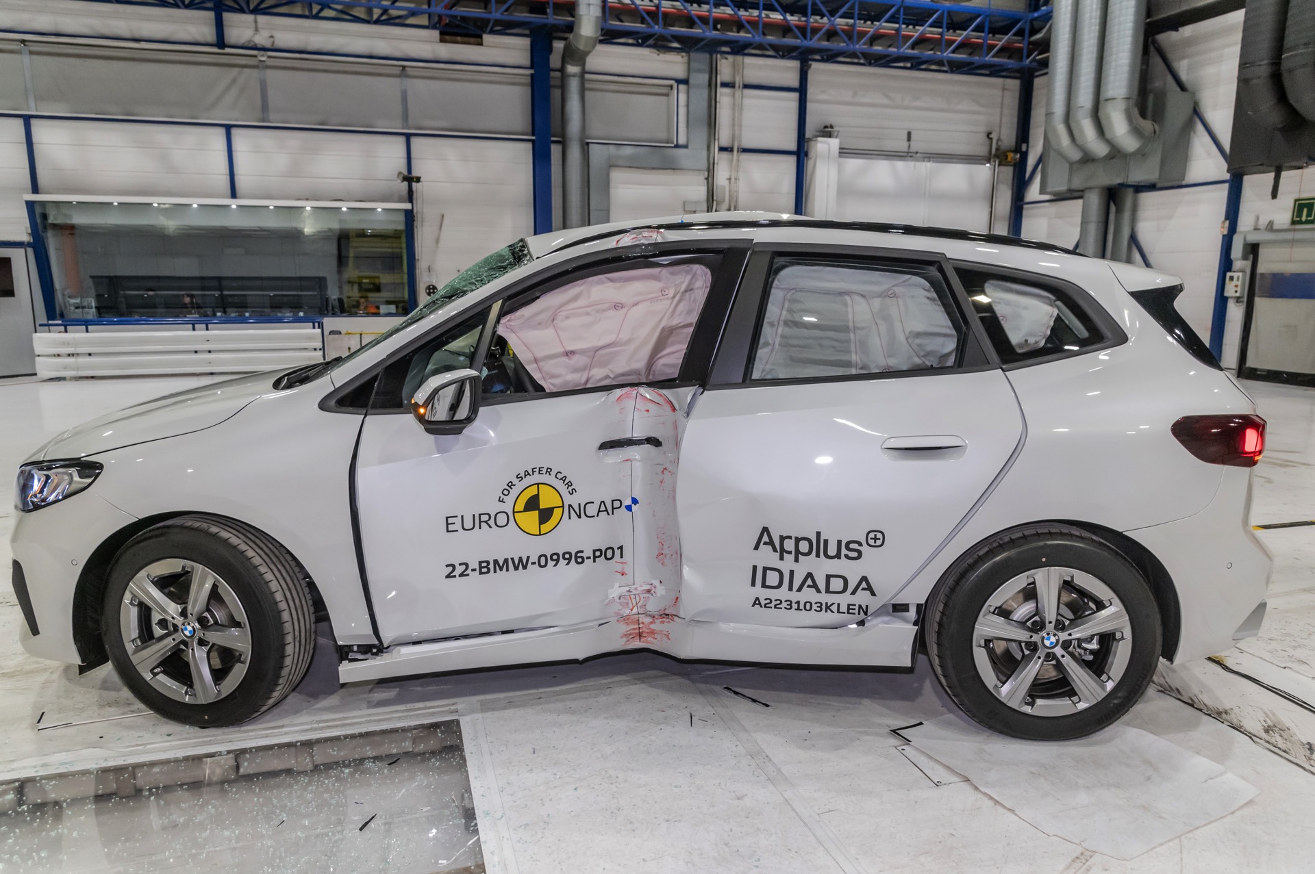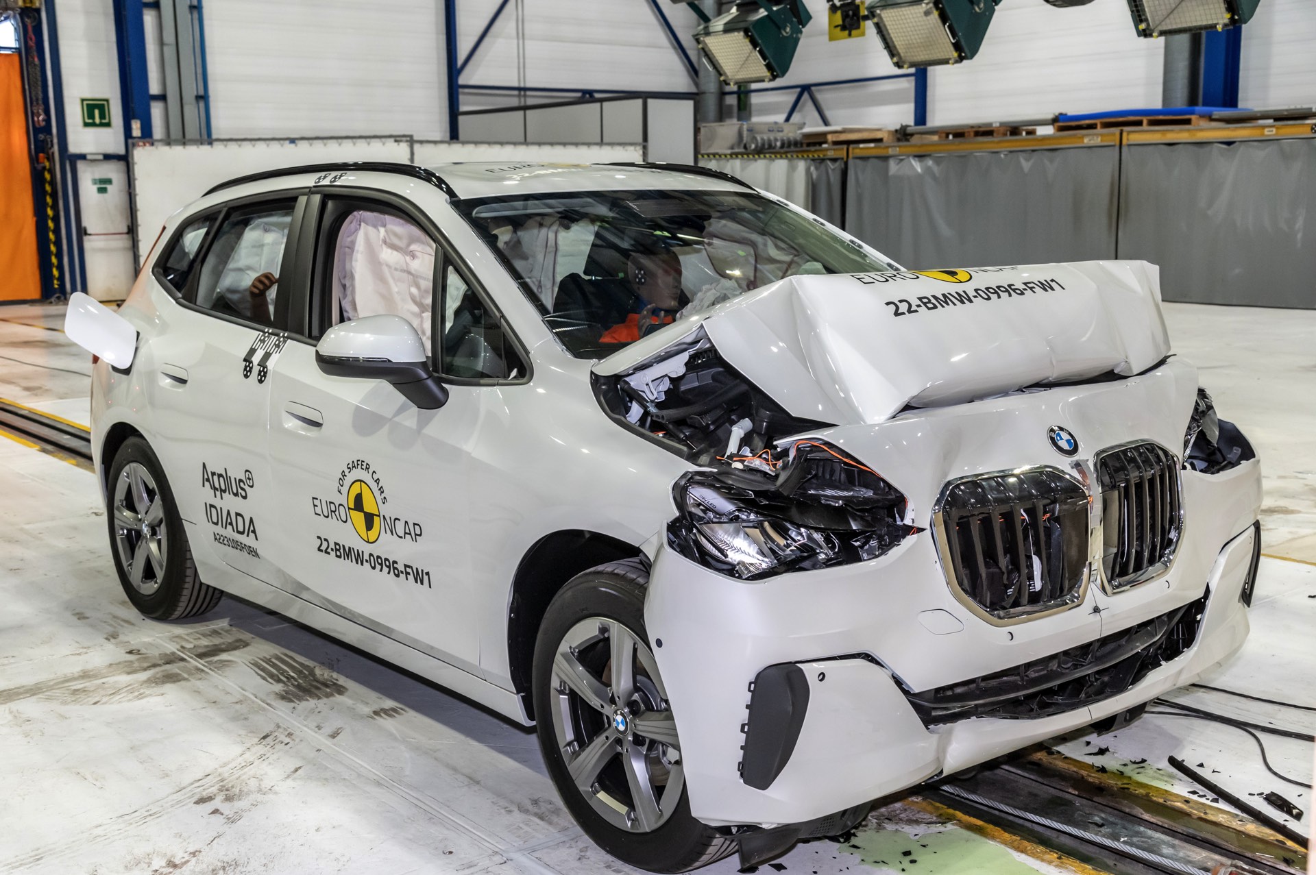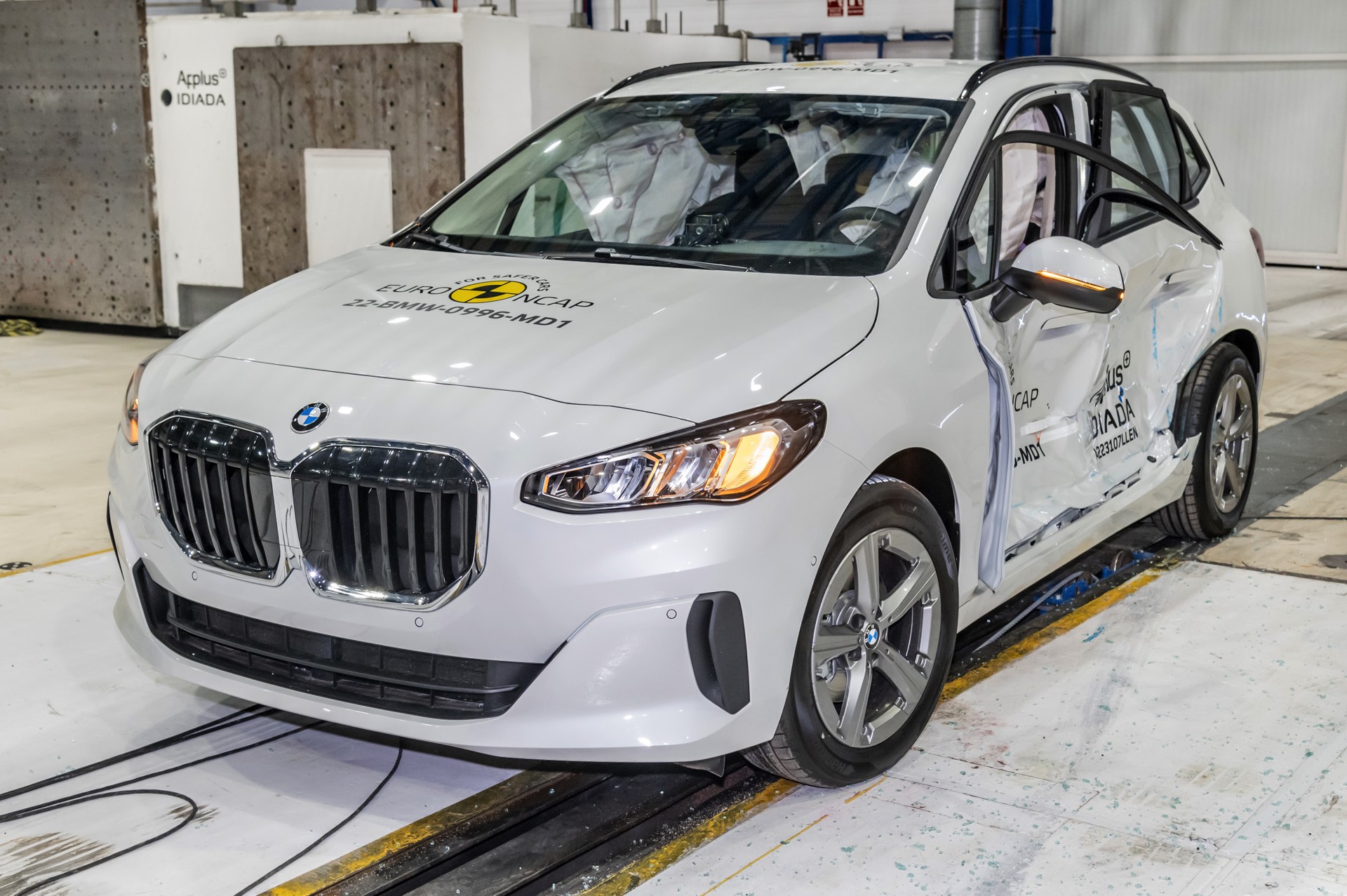 Trotz prinzipiell enger Verwandtschaft lesen sich die Ergebnisse für den BMW 2er Active Tourer (U06) etwas anders: Erwachsene Insassen sind laut den unabhängigen Tests etwas besser geschützt, denn der Van holt hier 88 Prozent der Punkte. Überraschend ist, dass der Van bei der Kinder-Sicherheit mit 81 Prozent etwas schwächer abschneidet als das SUV.