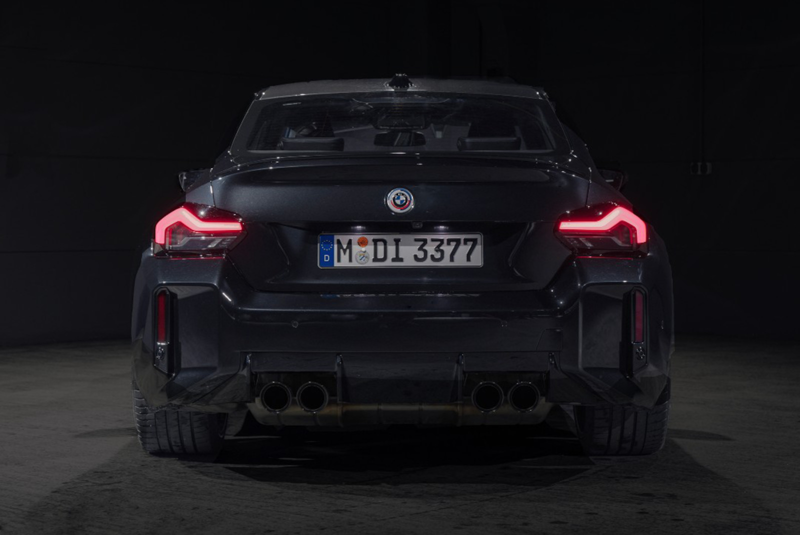 Das brachiale Design des neuen BMW M2 (G87) tritt aufgrund der schwarzen Lackierung ein wenig in den Hintergrund, allerdings trägt hierzu auch der dunkle Hintergrund der ersten Fotos bei. Vor allem die weit herausgestellten Radhäuser werden in natura auch bei einem schwarzen M2 ein absoluter Hingucker sein, andere Aspekte wie die großen schwarzen Flächen des Heck-Diffusors fallen aber nicht länger ins Auge.