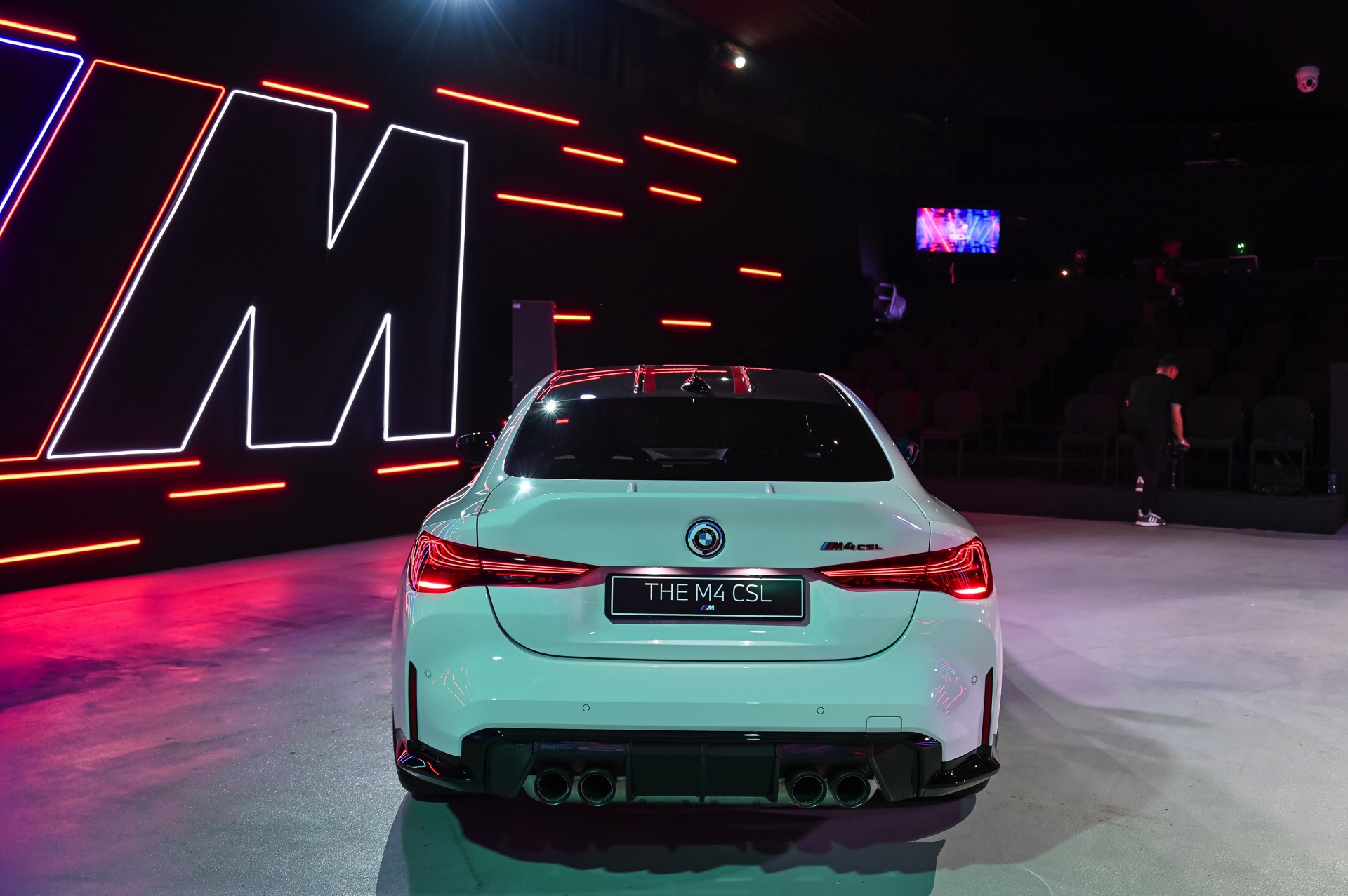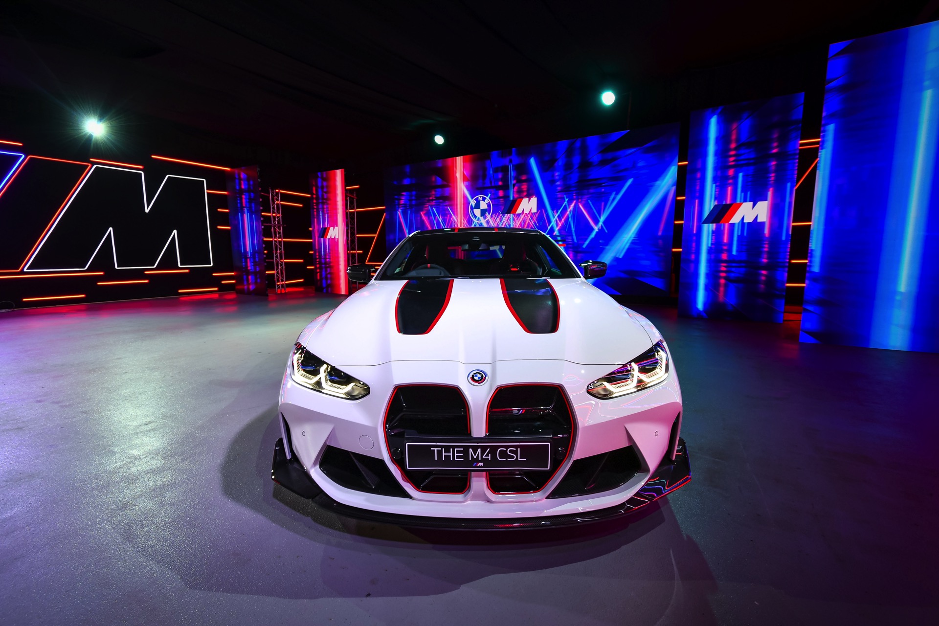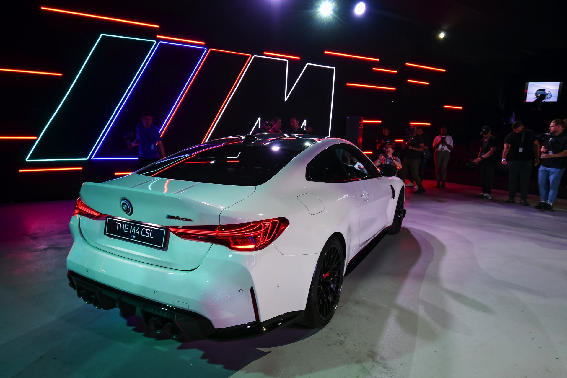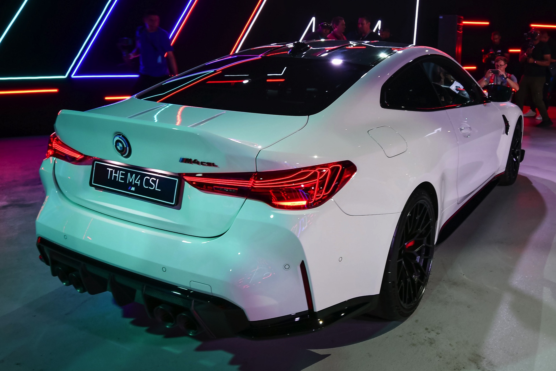 Auch der Frontsplitter und die Seitenschweller verfügen genau wie die Niereneinfassung über rote Akzente, die den besonderen Anspruch des BMW M4 CSL unterstreichen. Absolutes Highlight am Heck ist die Kofferraum-Haube aus Carbon, die mit ihrem markanten Bürzel Aerodynamik sichtbar macht. Bei Dunkelheit rücken außerdem die exklusiv dem CSL vorbehaltenen Heckleuchten mit ihren filigranen Laser-Elementen in den Fokus und sorgen für eine weitere Abgrenzung vom “gewöhnlichen” M4.