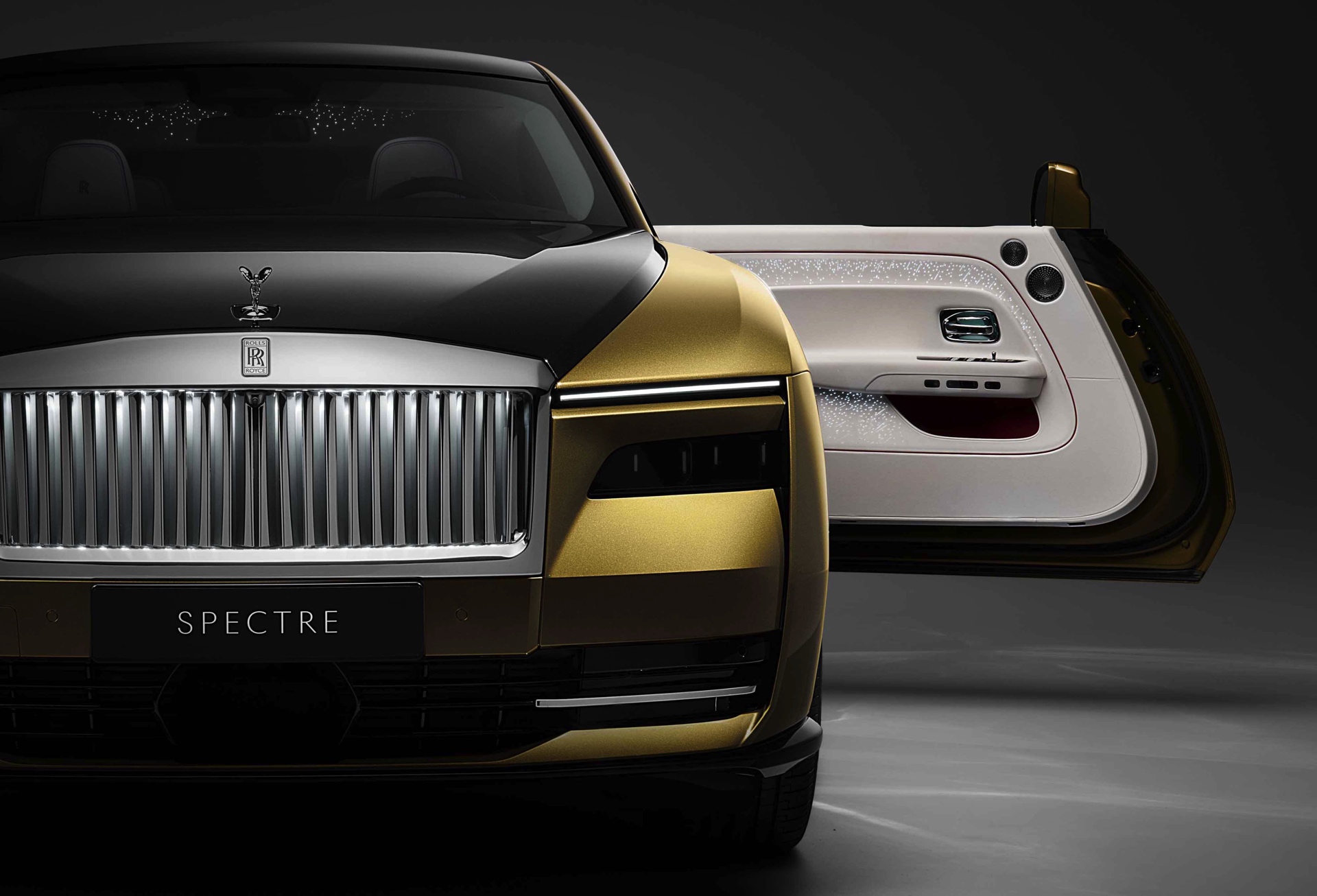 Rein technisch basiert der Rolls-Royce Spectre auf der aktuellen Aluminium-Spaceframe Architektur, die auch von Phantom und Ghost genutzt wird. Er versteht sich dabei trotz seiner prinzipiell an den Wraith erinnernden Formensprache eher als Nachfolger des Phantom Coupé: Bei knapp drei Tonnen Leergewicht steht Genuss unstrittig an erster Stelle. Der fast 700 Kilogramm schwere Lithium-Ionen-Akku im Unterboden des Coupés fungiert so gesehen auch als Geräuschdämmung, die jeden möglicherweise von der Straße in Richtung Innenraum dringenden Ton abschwächt oder eliminiert.