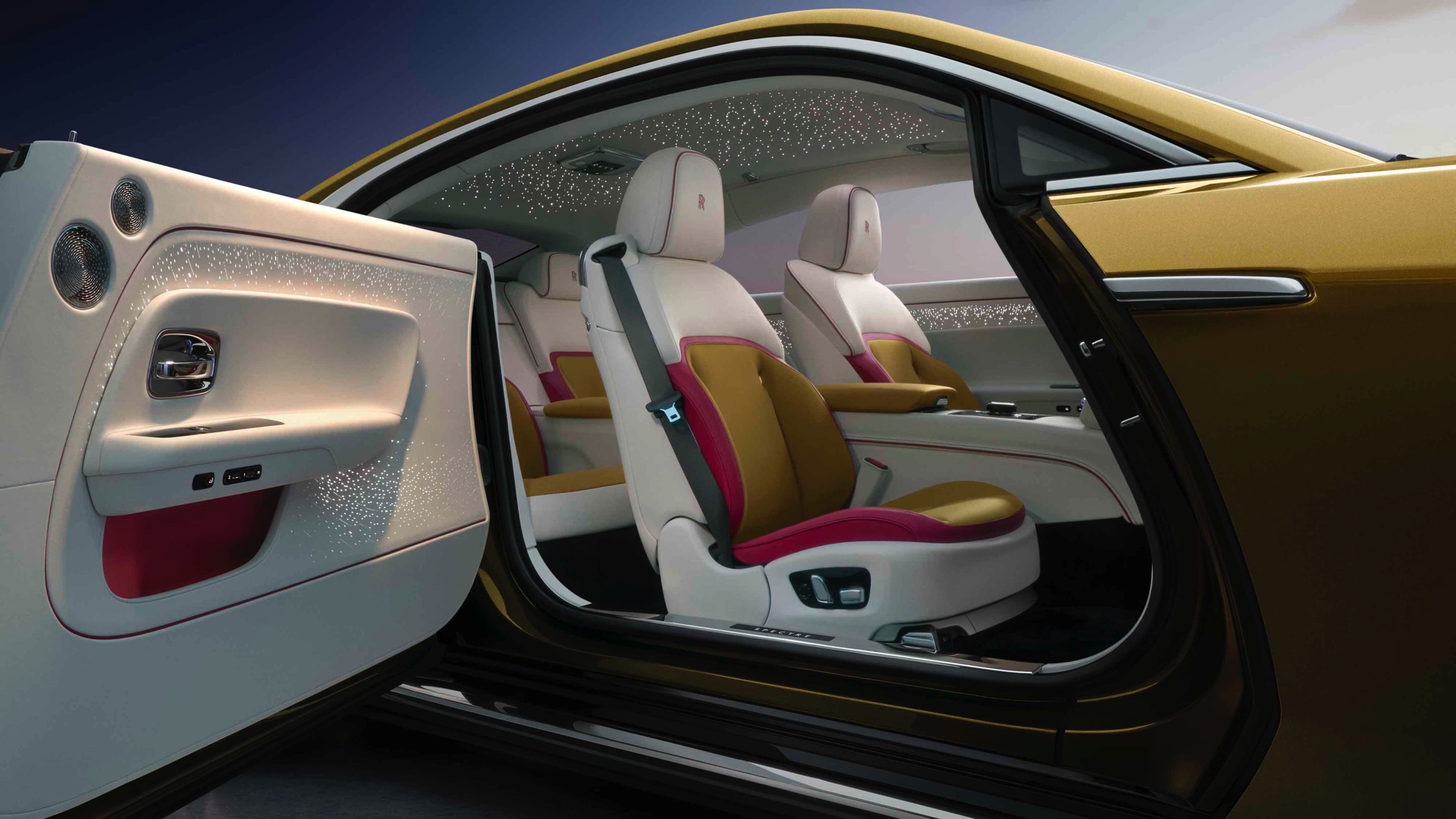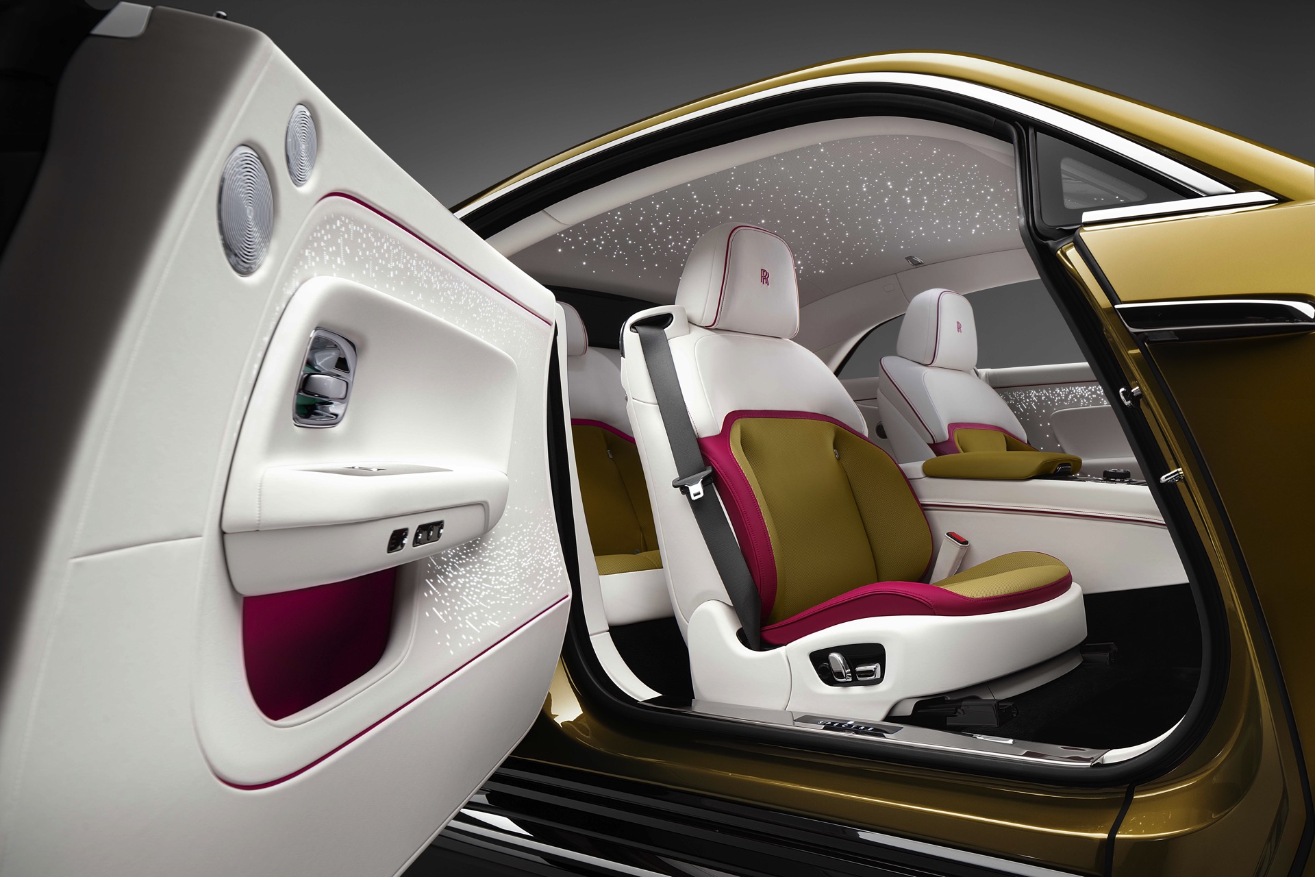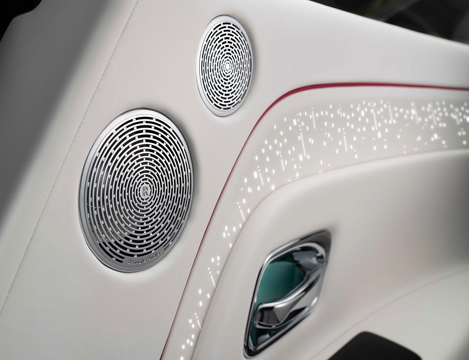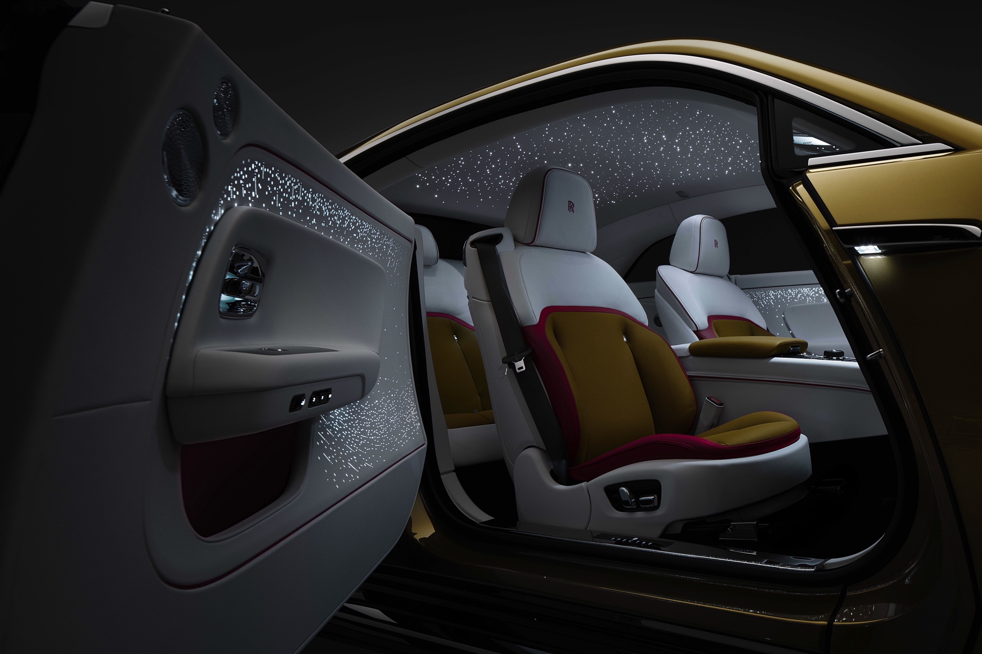 Dass der Innenraum auch jenseits der Geräuschdämmung allerhöchsten Ansprüchen genügt, versteht sich bei einem Rolls-Royce von selbst. Neben einem durch LEDs zum Nachthimmel aufgewerteten Dachhimmel bietet der Spectre erstmals auch die Option entsprechend illuminierter Türen, bei denen 4.796 LEDs als kleine Sterne für eine sanfte Beleuchtung sorgen. Noch weit wichtiger als diese Details dürfte den Kunden aber sein, dass der Innenraum unzählige Möglichkeiten zur Individualisierung bietet und sich so ganz genau an die persönlichen Vorlieben und Vorstellungen anpassen lässt.