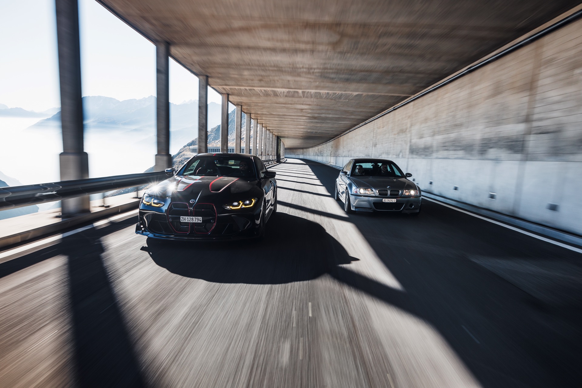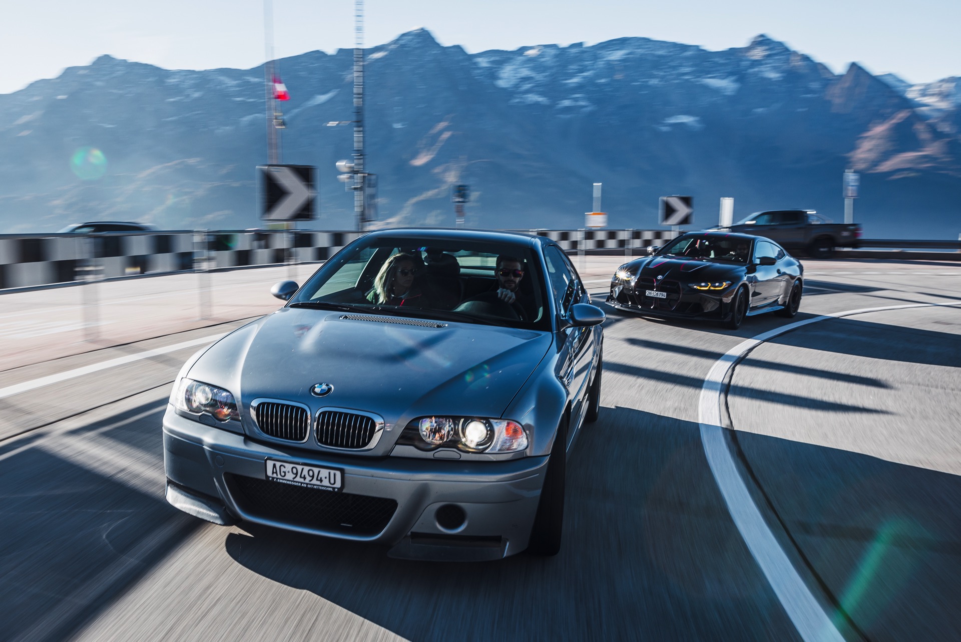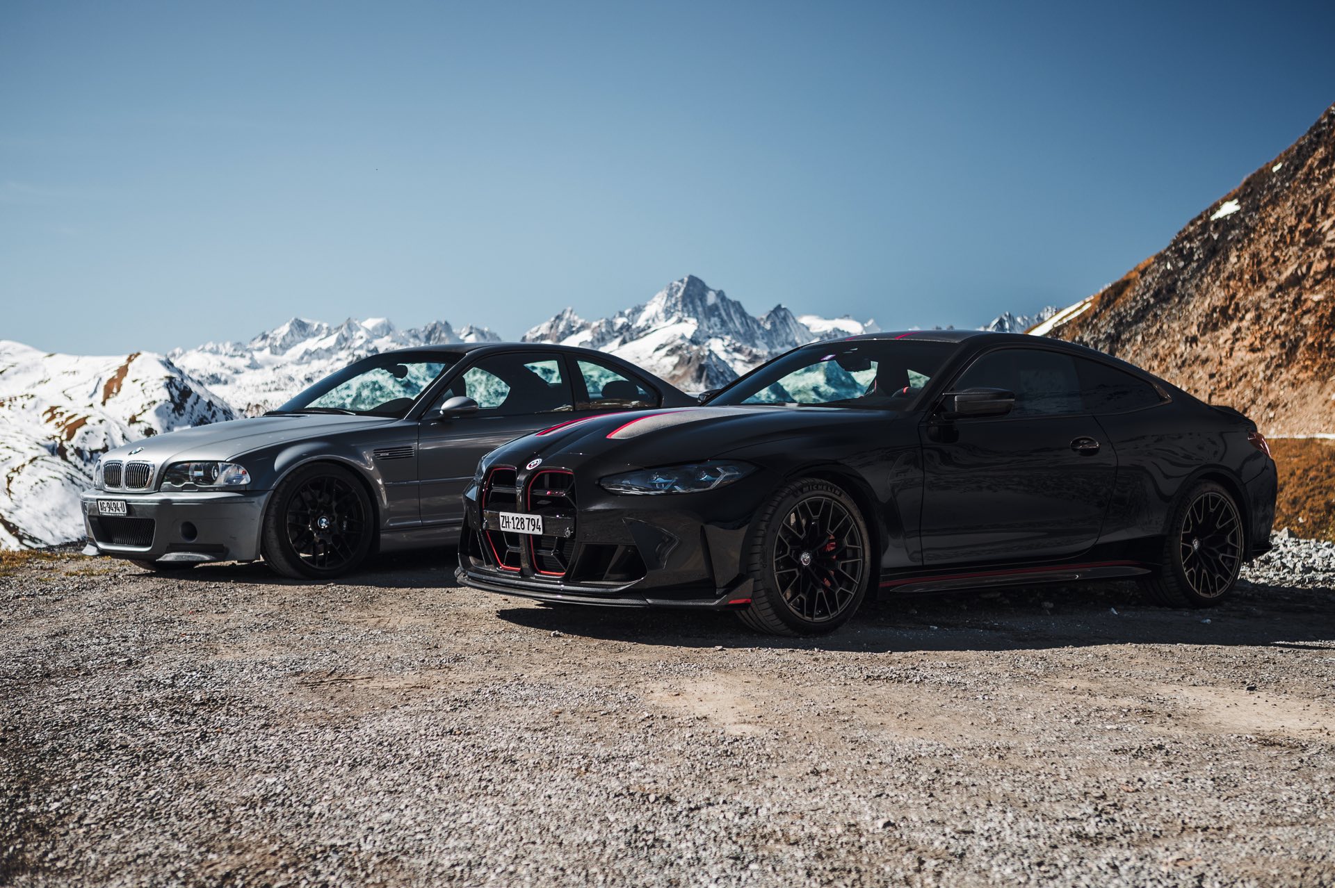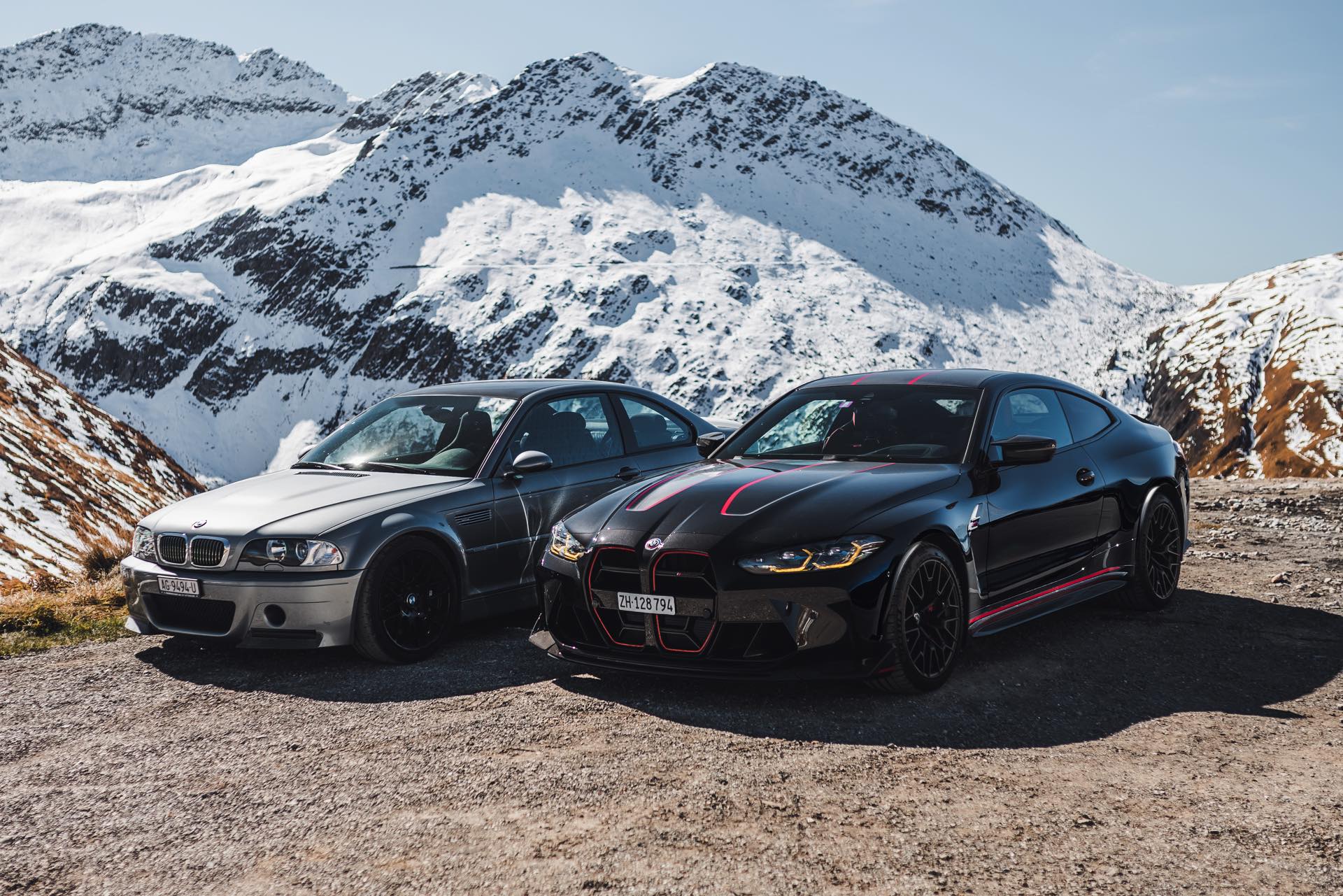Wenn zwei derart beeindruckende Fahrzeuge wie der BMW M3 CSL (E46) und der neue BMW M4 CSL (G82) vor der imposanten Kulisse der Schweizer Alpen aufeinandertreffen, sind sehenswerte Fotos praktisch unvermeidlich. Beide Fahrzeuge zählen zu den Ikonen der M GmbH und auch wenn zwischen ihnen fast 20 Jahre und natürlich auch ein erheblicher Performance-Fortschritt liegen, gibt es auch eine ganze Reihe von Gemeinsamkeiten. Beim Namen geht es hier aber vor allem um das Kürzel CSL, denn die Bedeutung der Buchstaben wurde in der Zwischenzeit leicht angepasst: Statt “Coupé, Sport, Leichtbau” steht CSL heute für “Competition, Sport, Leichtbau”, womit sich die Garchinger eine Tür für CSL-Modelle mit anderen Karosserieformen geöffnet haben.