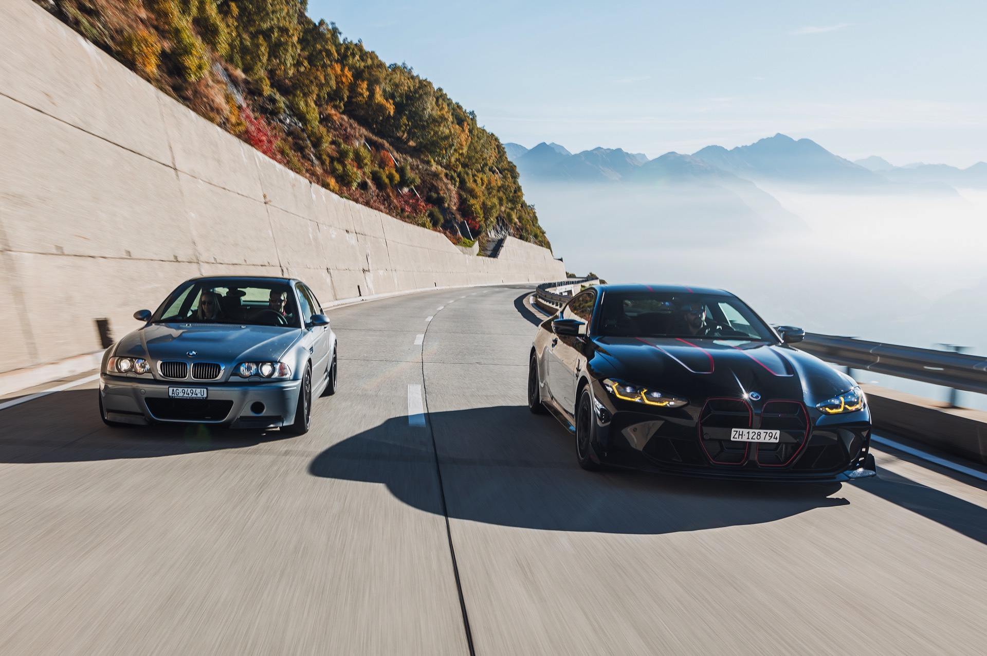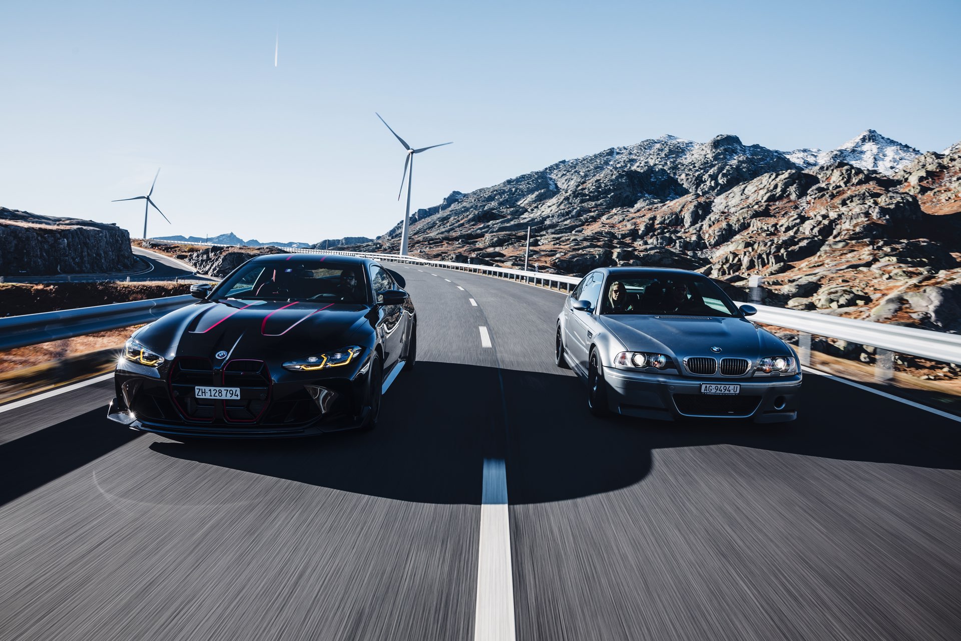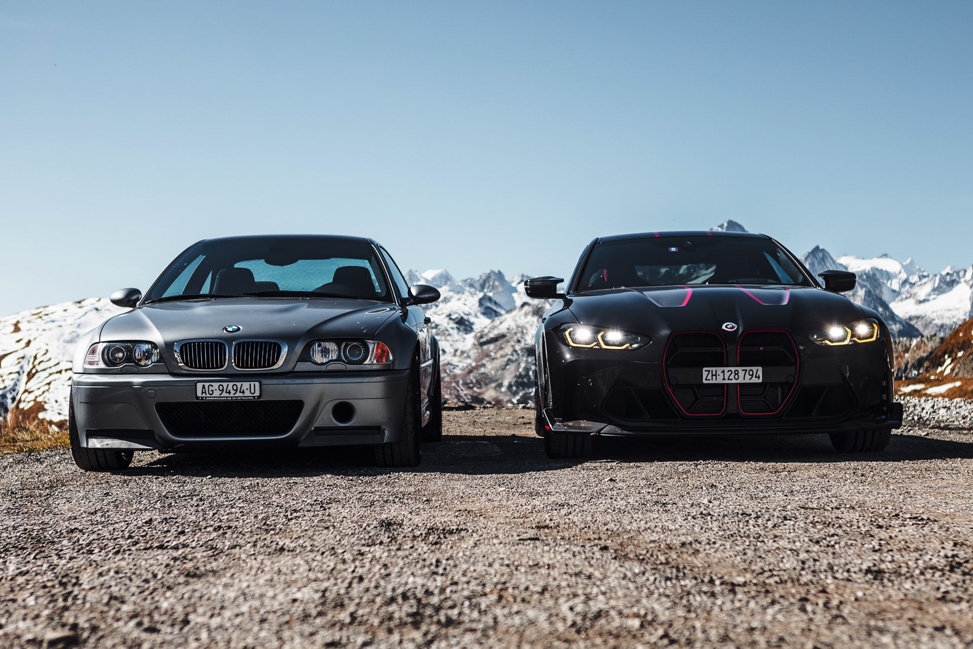 Wenn zwei derart beeindruckende Fahrzeuge wie der BMW M3 CSL (E46) und der neue BMW M4 CSL (G82) vor der imposanten Kulisse der Schweizer Alpen aufeinandertreffen, sind sehenswerte Fotos praktisch unvermeidlich. Beide Fahrzeuge zählen zu den Ikonen der M GmbH und auch wenn zwischen ihnen fast 20 Jahre und natürlich auch ein erheblicher Performance-Fortschritt liegen, gibt es auch eine ganze Reihe von Gemeinsamkeiten. Beim Namen geht es hier aber vor allem um das Kürzel CSL, denn die Bedeutung der Buchstaben wurde in der Zwischenzeit leicht angepasst: Statt “Coupé, Sport, Leichtbau” steht CSL heute für “Competition, Sport, Leichtbau”, womit sich die Garchinger eine Tür für CSL-Modelle mit anderen Karosserieformen geöffnet haben.