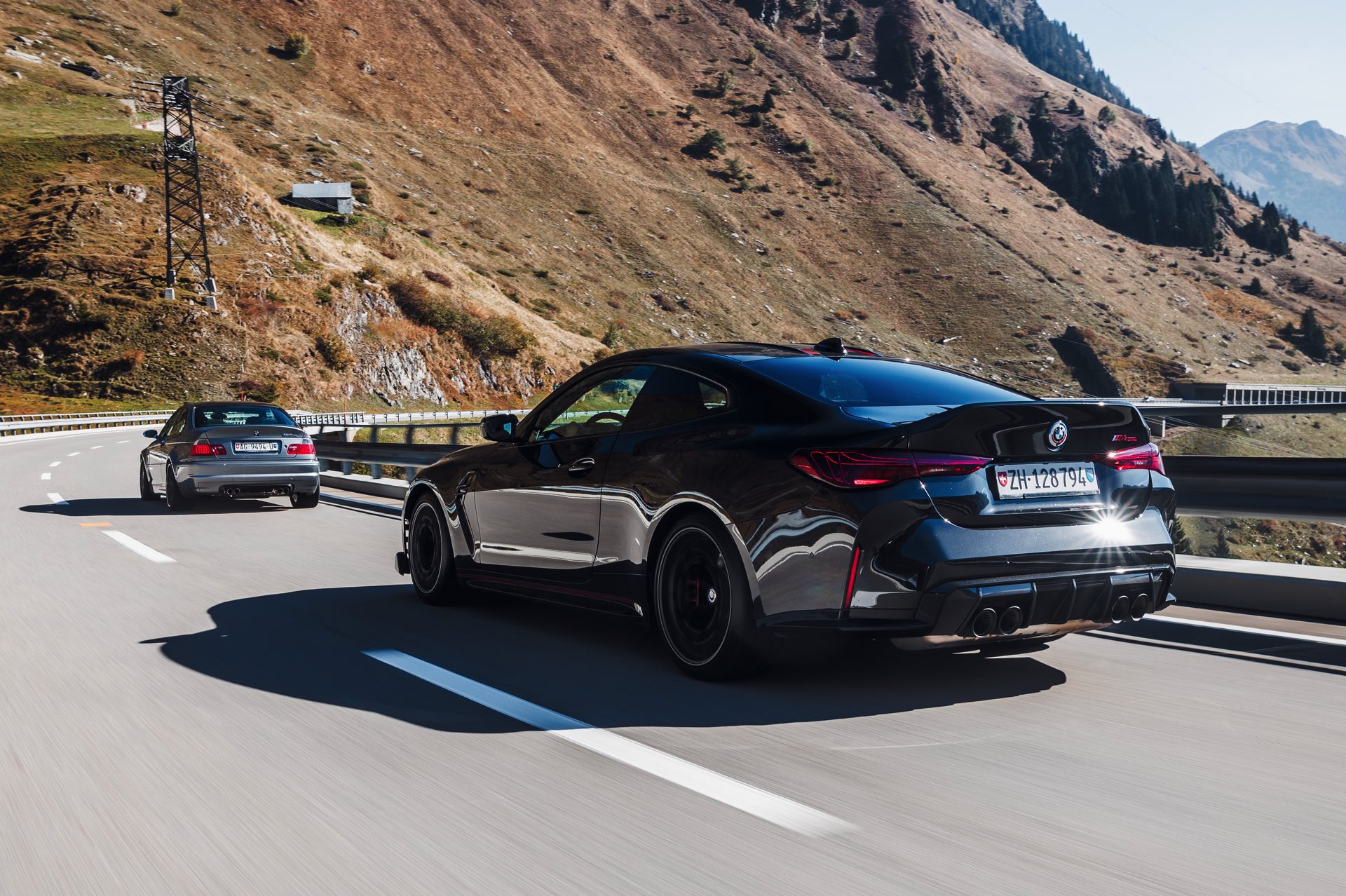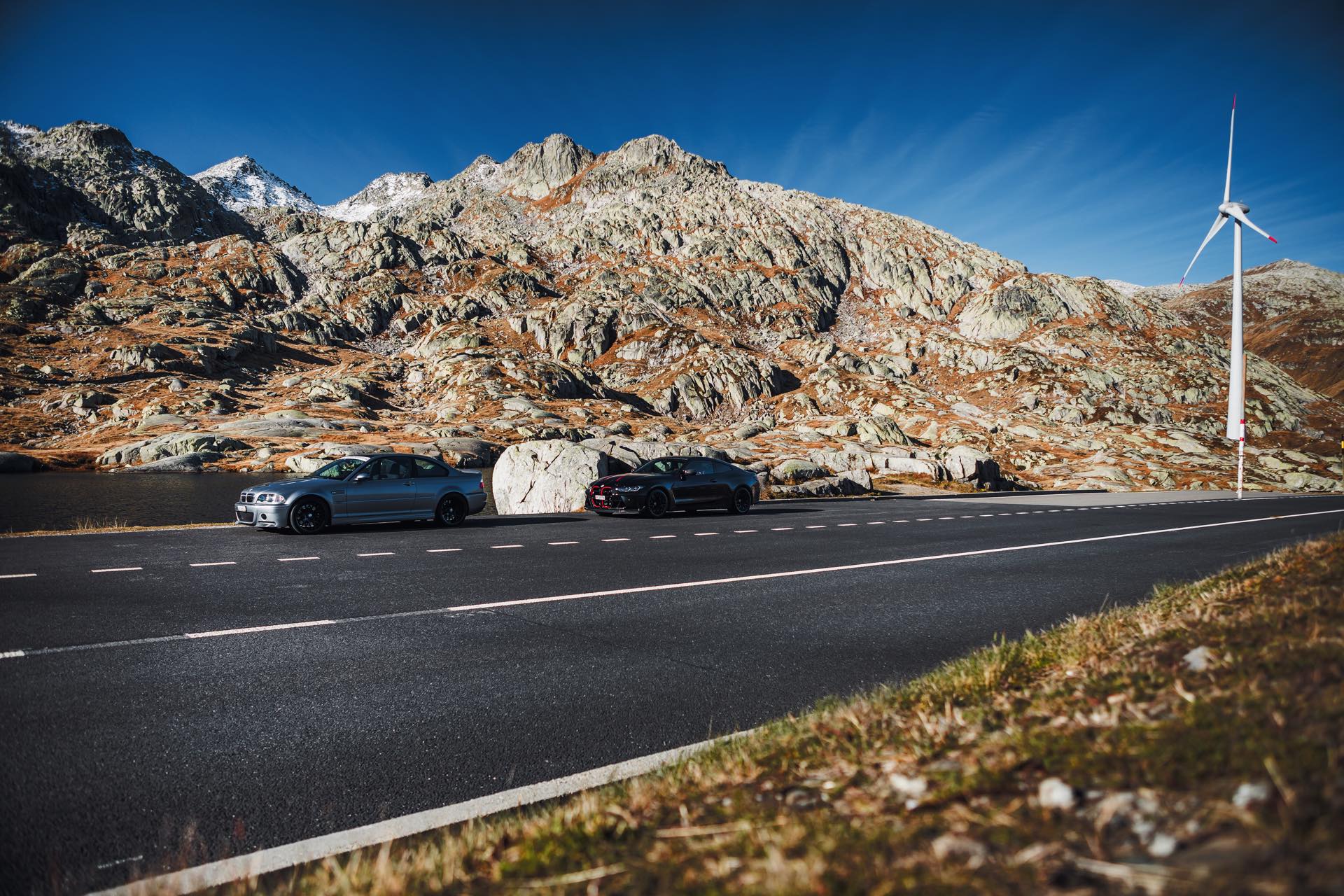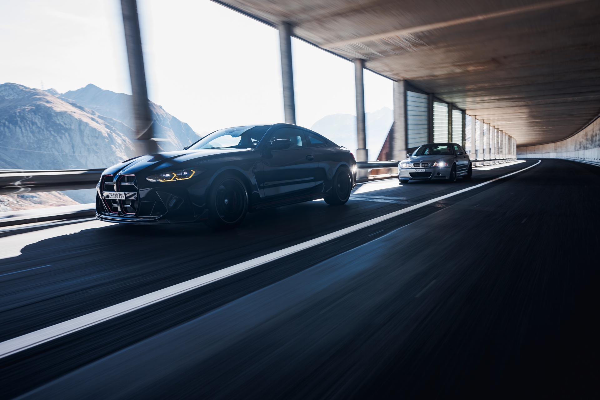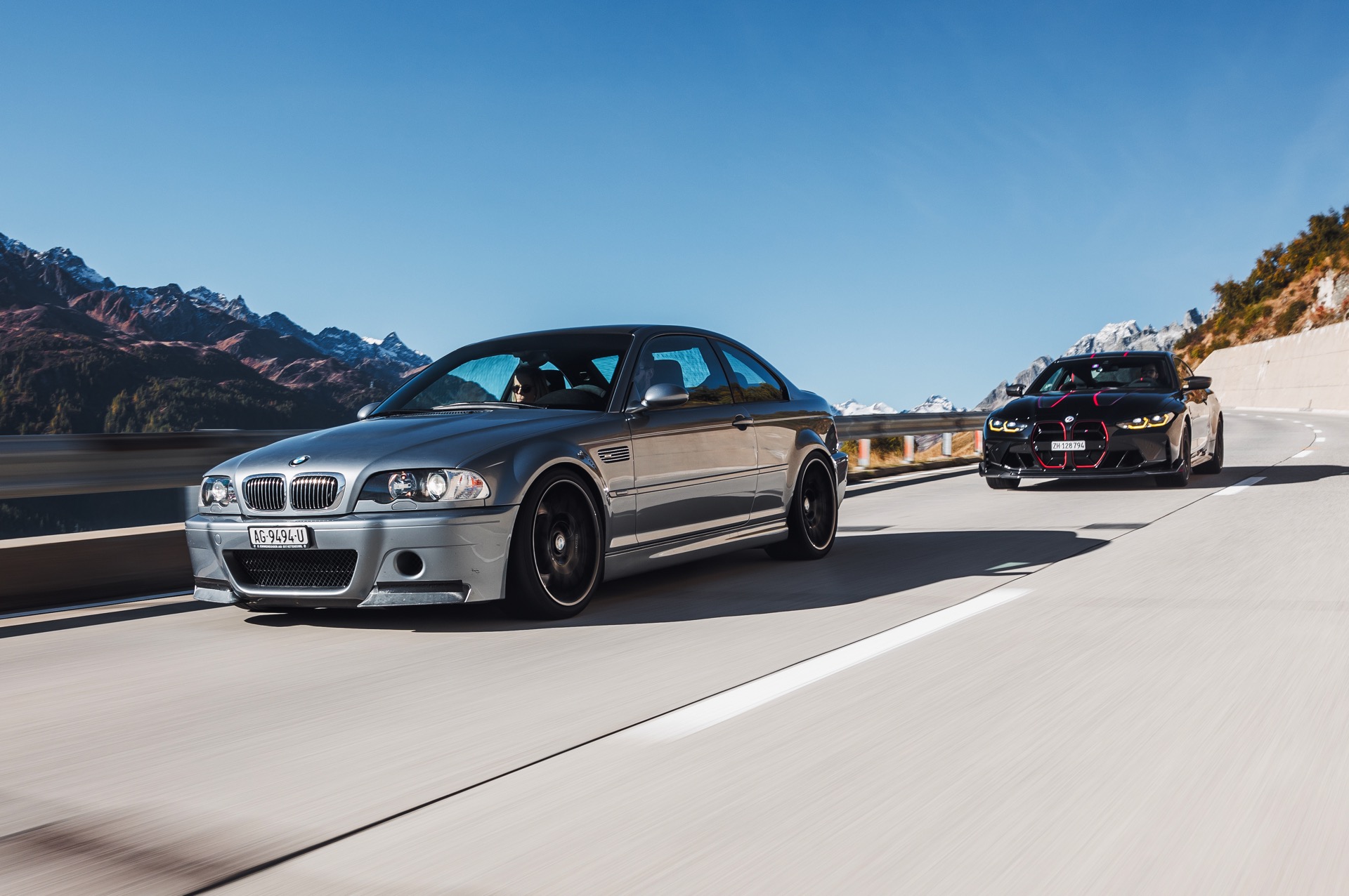 Wenn zwei derart beeindruckende Fahrzeuge wie der BMW M3 CSL (E46) und der neue BMW M4 CSL (G82) vor der imposanten Kulisse der Schweizer Alpen aufeinandertreffen, sind sehenswerte Fotos praktisch unvermeidlich. Beide Fahrzeuge zählen zu den Ikonen der M GmbH und auch wenn zwischen ihnen fast 20 Jahre und natürlich auch ein erheblicher Performance-Fortschritt liegen, gibt es auch eine ganze Reihe von Gemeinsamkeiten. Beim Namen geht es hier aber vor allem um das Kürzel CSL, denn die Bedeutung der Buchstaben wurde in der Zwischenzeit leicht angepasst: Statt “Coupé, Sport, Leichtbau” steht CSL heute für “Competition, Sport, Leichtbau”, womit sich die Garchinger eine Tür für CSL-Modelle mit anderen Karosserieformen geöffnet haben.