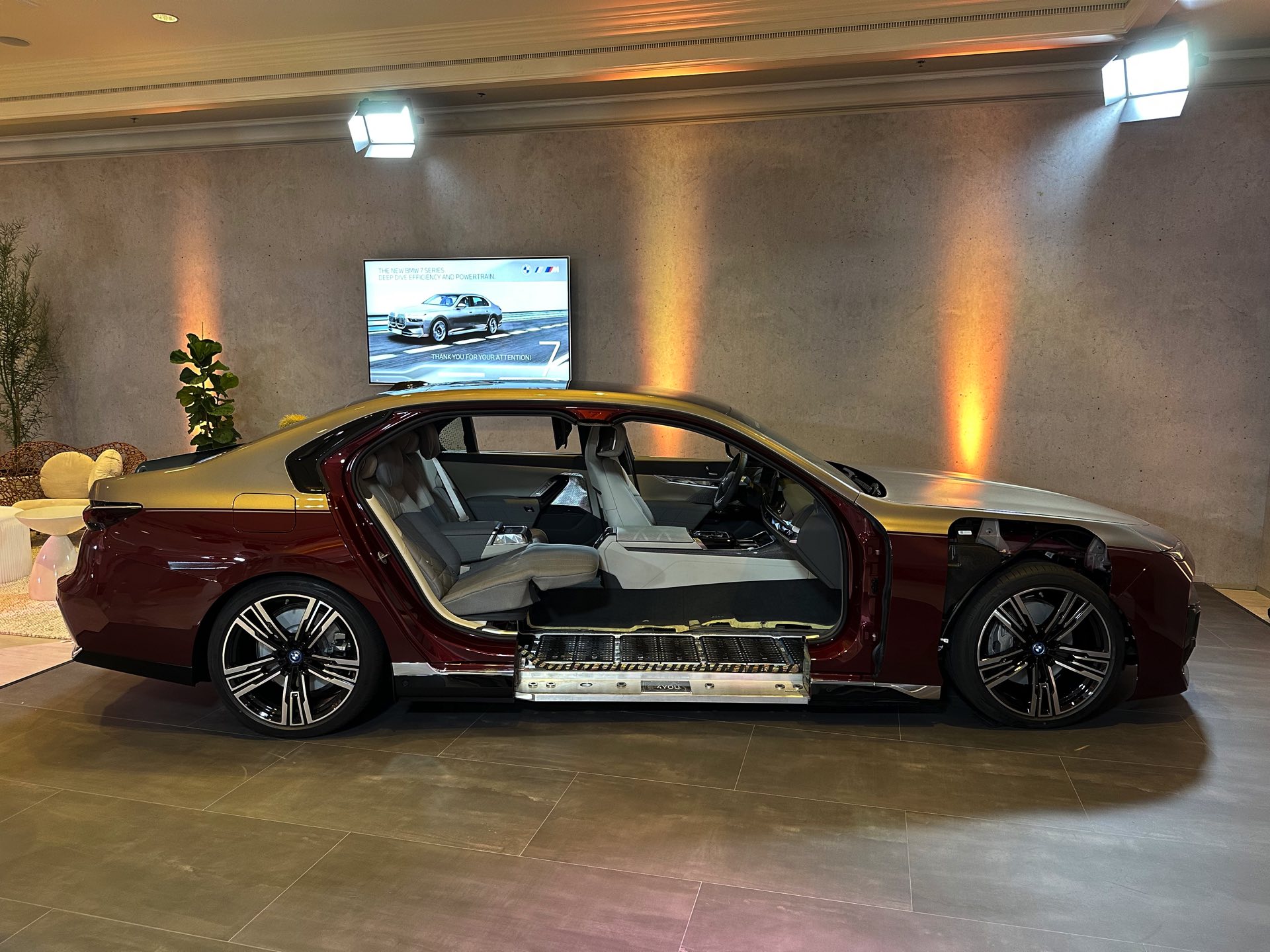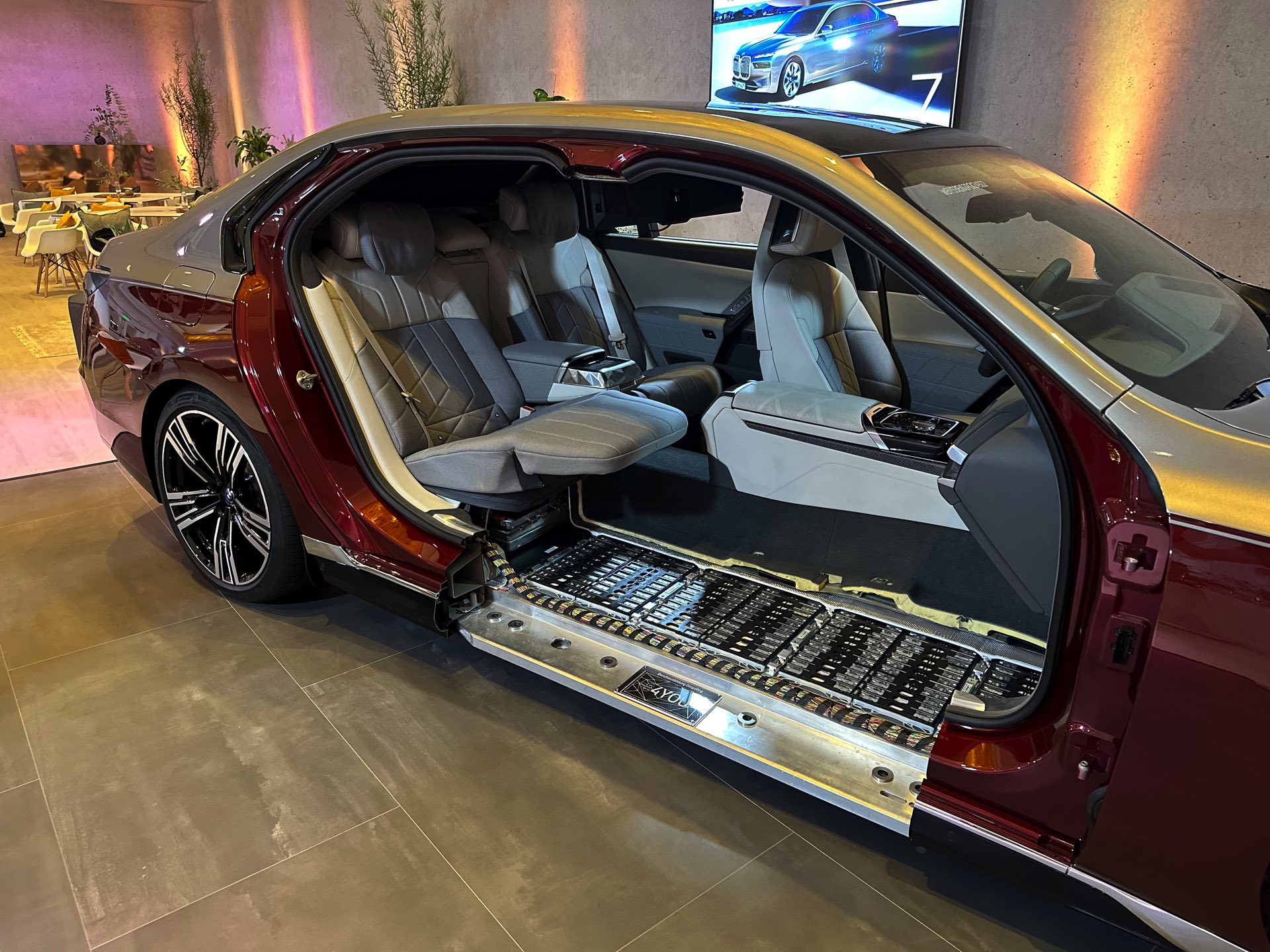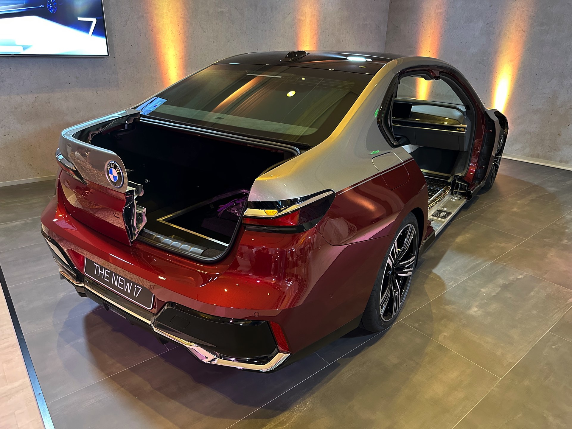 Es kommt extrem selten vor, dass man einem Fahrzeug wie dem BMW i7 und damit der Elektro-Variante des neuen 7er (G70) detailliert unters Blechkleid schauen darf, aber dank der Auszubildenden im Werk Dingolfing hatten wir genau diese Gelegenheit. Unsere Fotos bieten einen spannenden Blick auf die weiterentwickelte Cluster-Architektur, die intern das Kürzel “CLAR WE” (Cluster Architektur Weiterentwicklung) trägt und mit der neuen 7er-Reihe debütiert. Im Vergleich zur bisherigen CLAR wurde die WE-Variante so modifiziert, dass sie alle aktuell benötigten Antriebskonzepte problemlos beherbergen kann. Die Bandbreite möglicher Verbrennungsmotoren endet nun außerdem beim Achtzylinder, schließlich sind unterhalb von Rolls-Royce keine weiteren Einsätze für den V12-Biturbo N74 geplant.