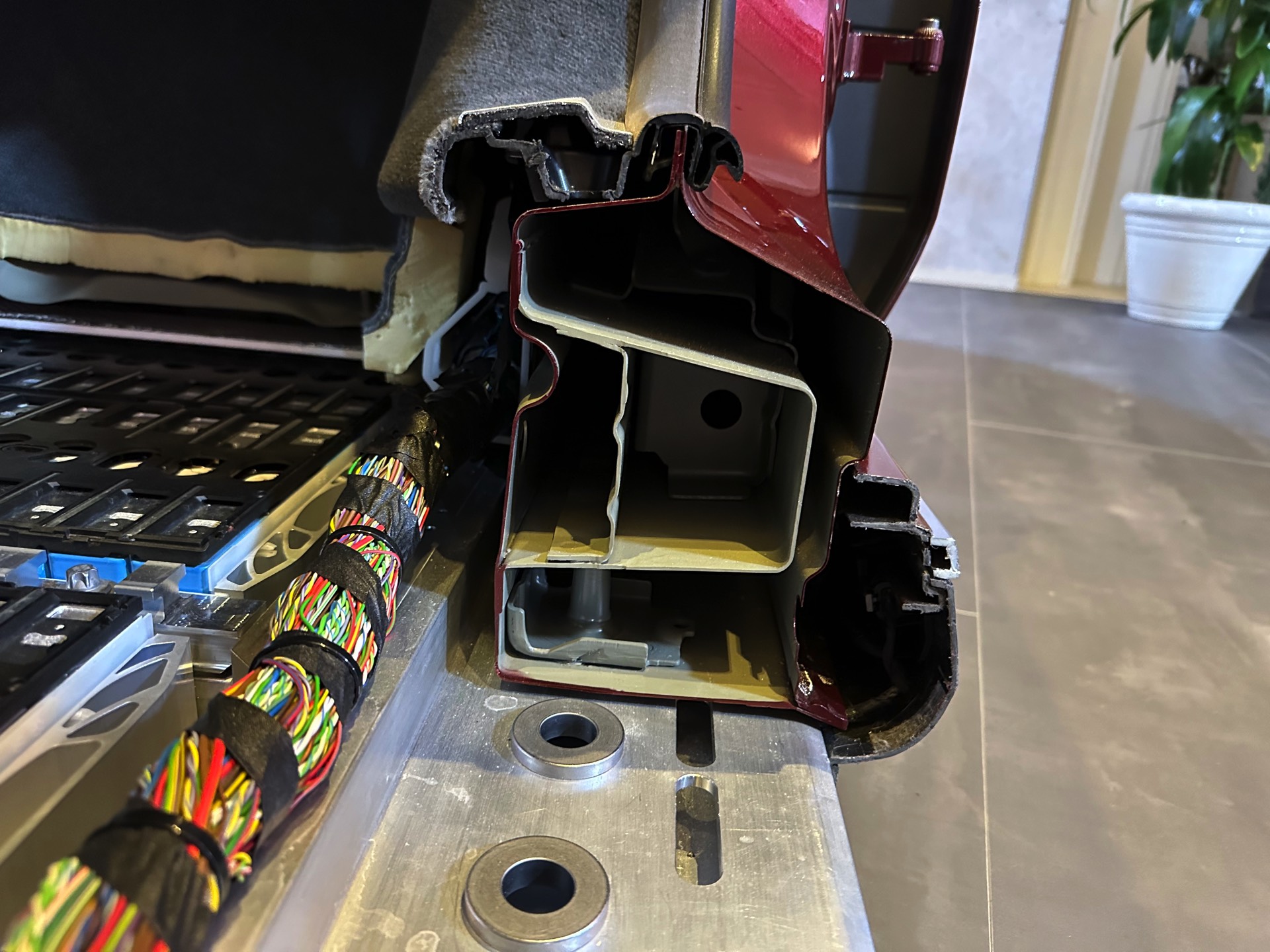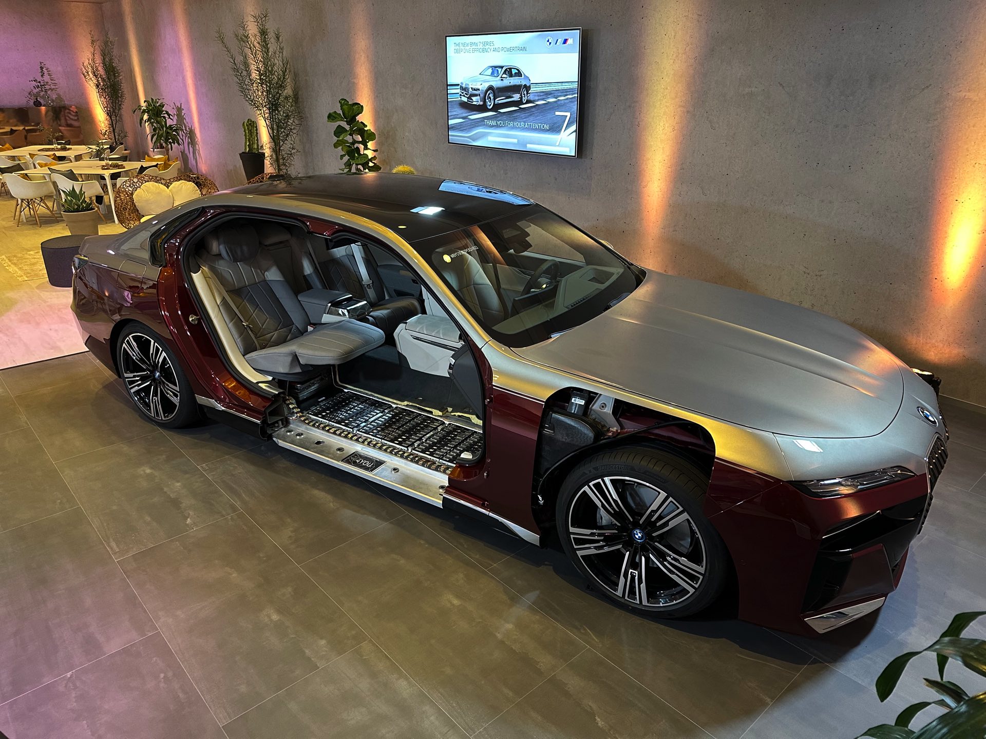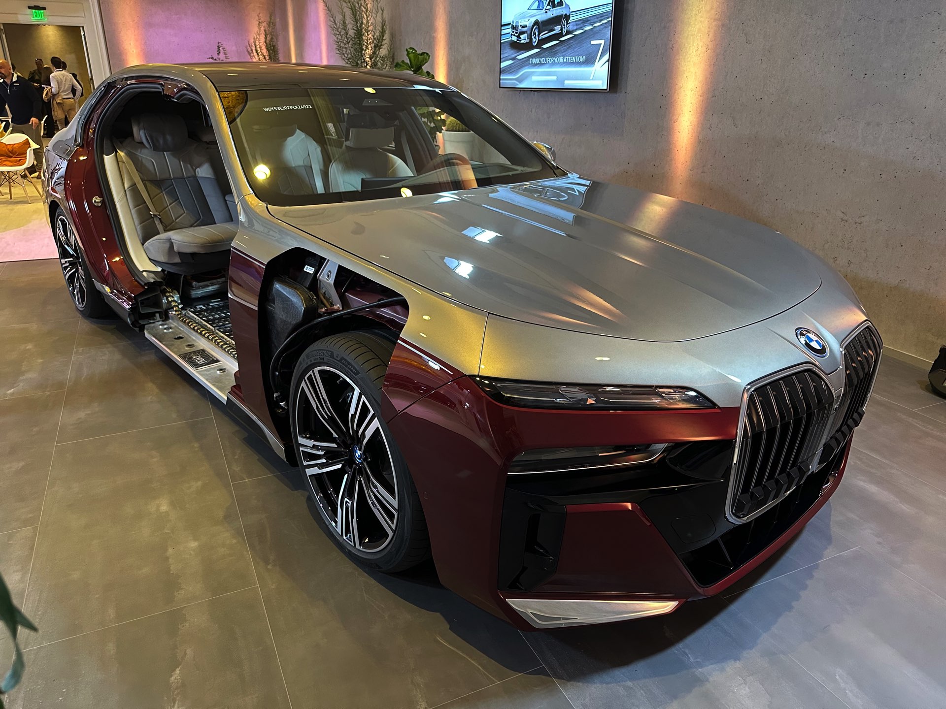 Es kommt extrem selten vor, dass man einem Fahrzeug wie dem BMW i7 und damit der Elektro-Variante des neuen 7er (G70) detailliert unters Blechkleid schauen darf, aber dank der Auszubildenden im Werk Dingolfing hatten wir genau diese Gelegenheit. Unsere Fotos bieten einen spannenden Blick auf die weiterentwickelte Cluster-Architektur, die intern das Kürzel “CLAR WE” (Cluster Architektur Weiterentwicklung) trägt und mit der neuen 7er-Reihe debütiert. Im Vergleich zur bisherigen CLAR wurde die WE-Variante so modifiziert, dass sie alle aktuell benötigten Antriebskonzepte problemlos beherbergen kann. Die Bandbreite möglicher Verbrennungsmotoren endet nun außerdem beim Achtzylinder, schließlich sind unterhalb von Rolls-Royce keine weiteren Einsätze für den V12-Biturbo N74 geplant.