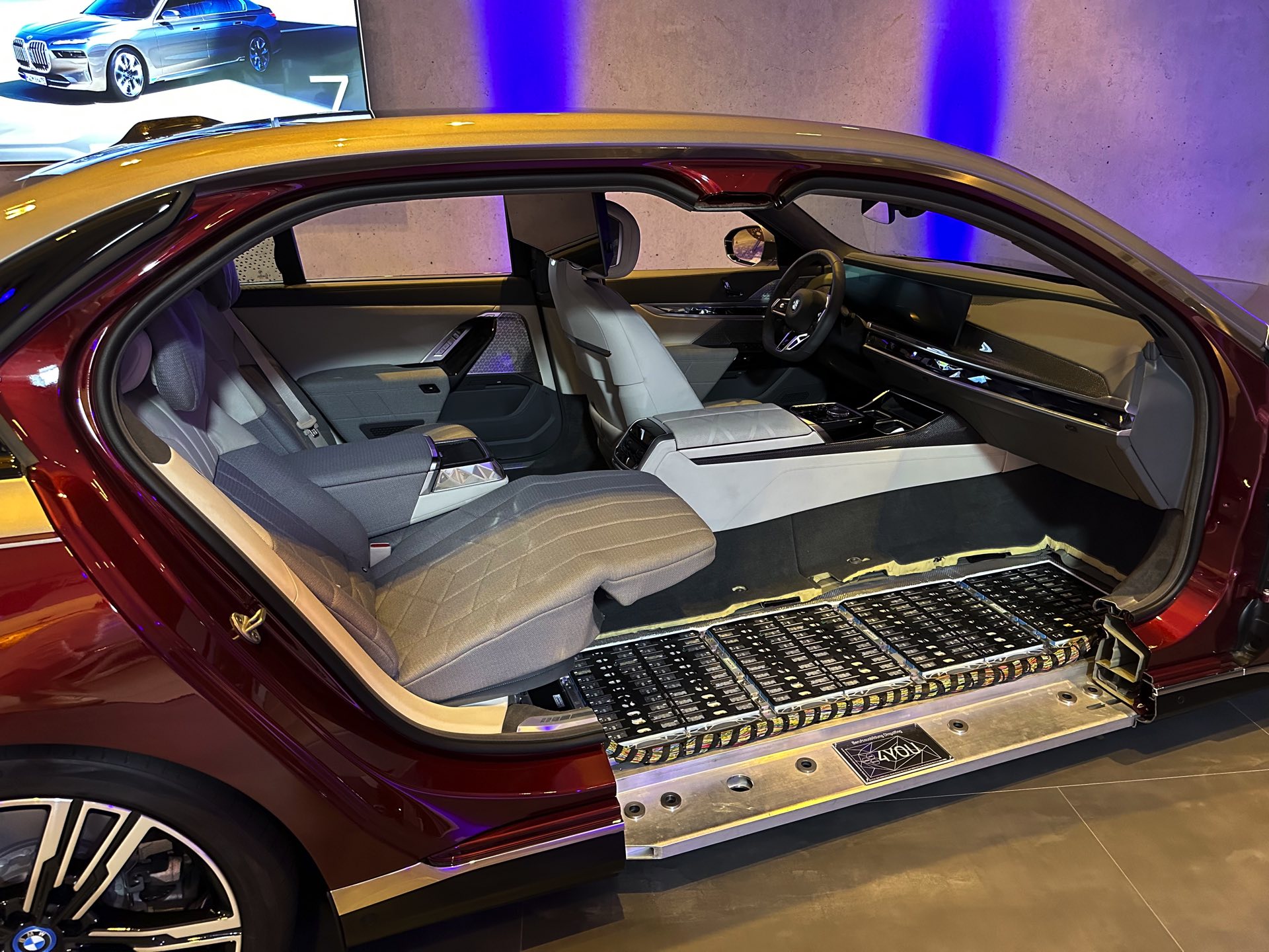 Im Fall des BMW i7 sorgt CLAR WE dafür, dass sich der Elektro-7er einen großen Teil seiner Technik mit den konventionell angetriebenen Modellen teilen kann. Einzigartig für den i7 ist aber naturgemäß das riesige Akku-Paket im Unterboden: Unterhalb des Fahrgastraums sind auf elf Zentimetern Höhe fünf Module mit jeweils 72 Akku-Zellen platziert, dazu kommen zwei 12er-Pakete im Mitteltunnel sowie zwei weitere 12er-Pakete direkt unterhalb der Rückbank. Zusammen bietet der Lithium-Ionen-Akku eine nutzbare Kapazität von 101,7 Kilowattstunden, was dem i7 eine elektrische Reichweite von bis zu 625 Kilometern ermöglicht.