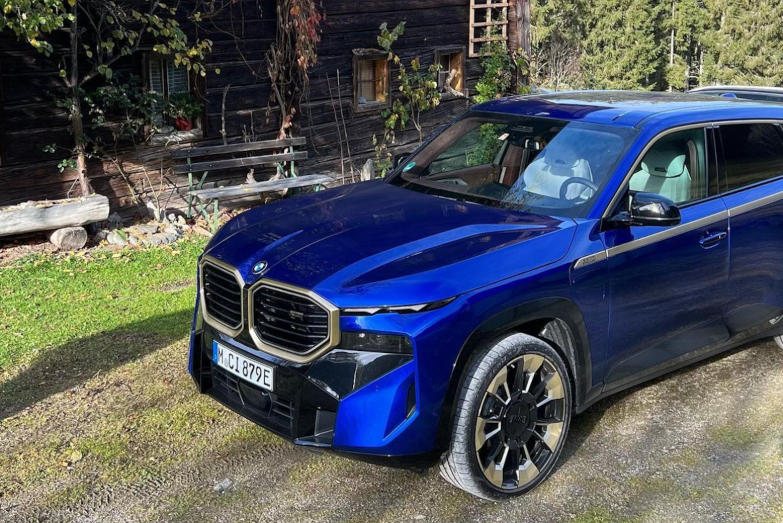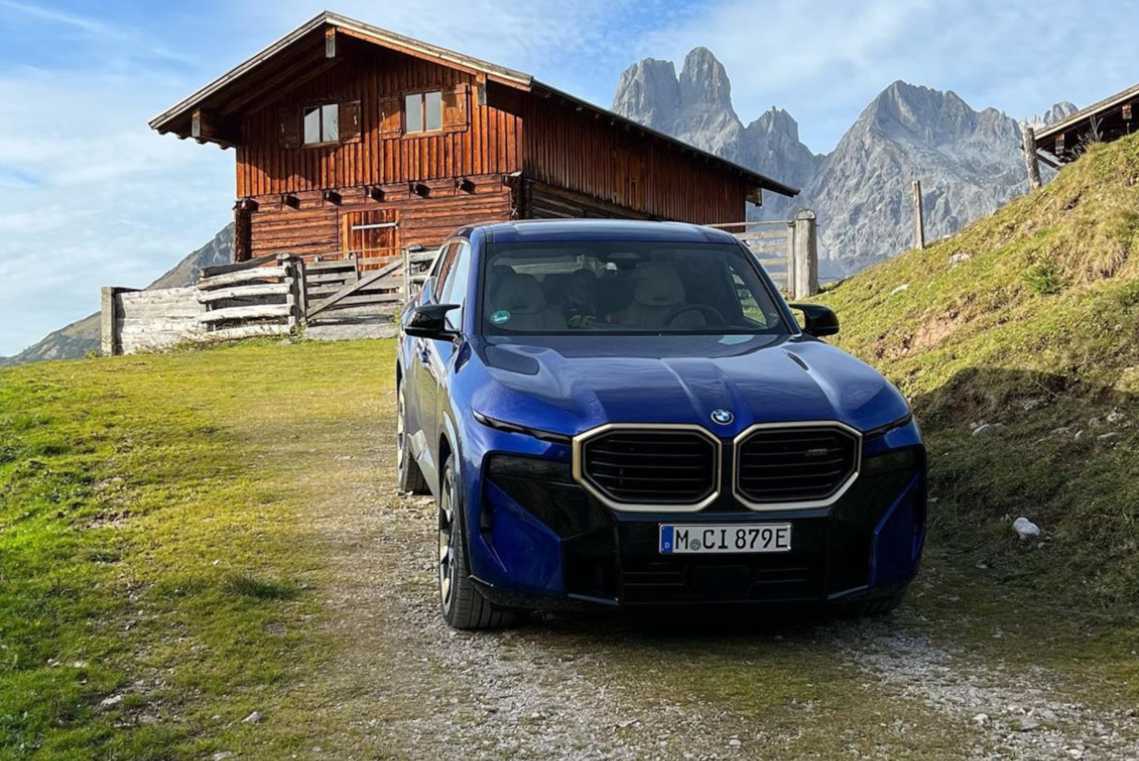 Neben Toronto Rot und Cape York Green ist Marina Bay Blau wohl die auffälligste Farbe, die direkt zum Marktstart des neuen BMW XM (G09) im April 2023 erhältlich ist. Auch der ehemalige M-Chef Markus Flasch macht sich nun erneut ein eigenes Bild vom künftigen M-Flaggschiff und präsentiert seinen Followern bei Instagram, wie sein aktueller Dienstwagen in Marina Bay Blau vor einer atemberaubenden Alpen-Kulisse glänzt. Neben der blauen Lackierung sind es vor allem die goldenen Akzente und die dank horizontaler Teilung extrem flach wirkenden Scheinwerfer, die den BMW XM zu einem absoluten Hingucker machen.