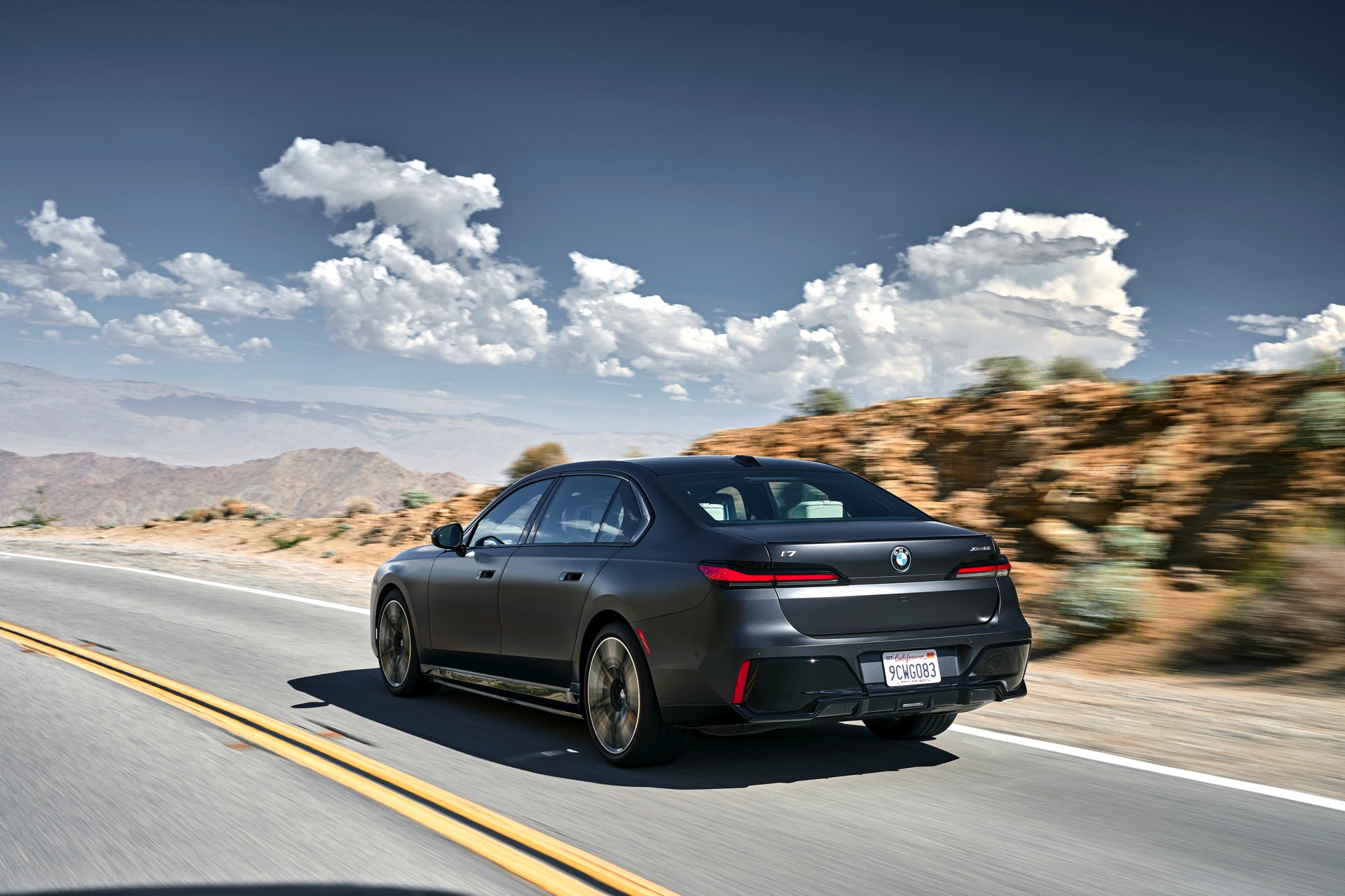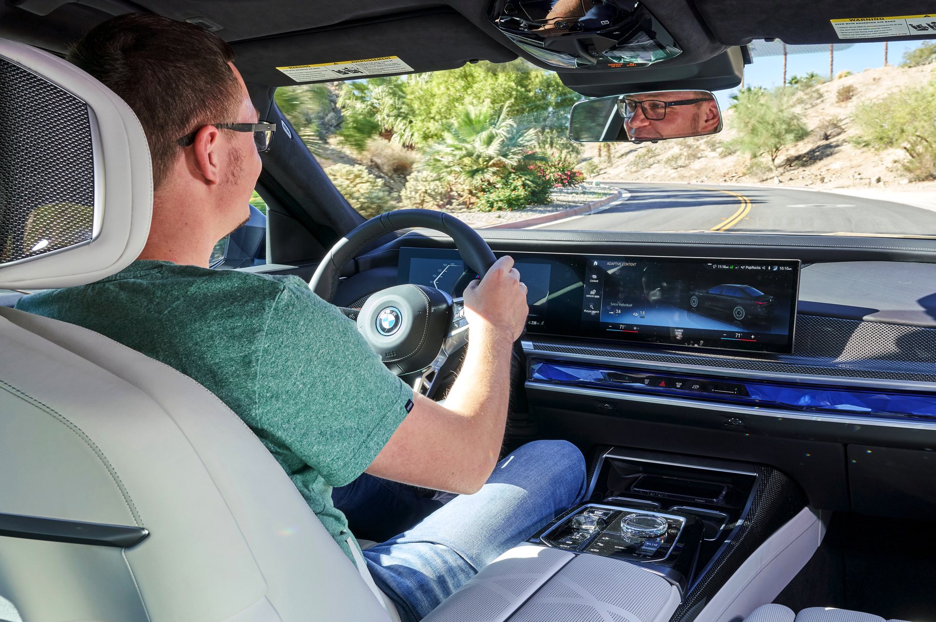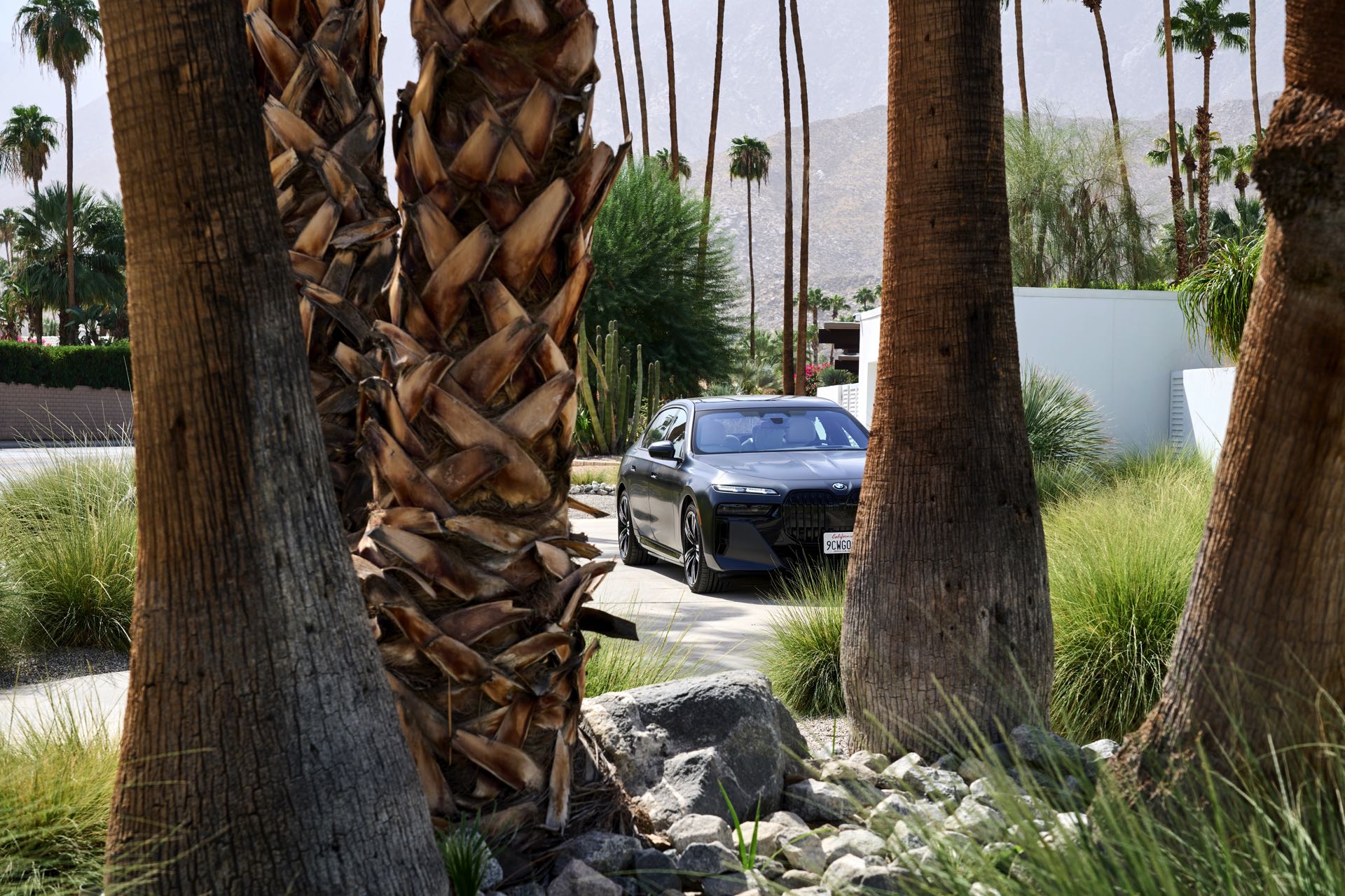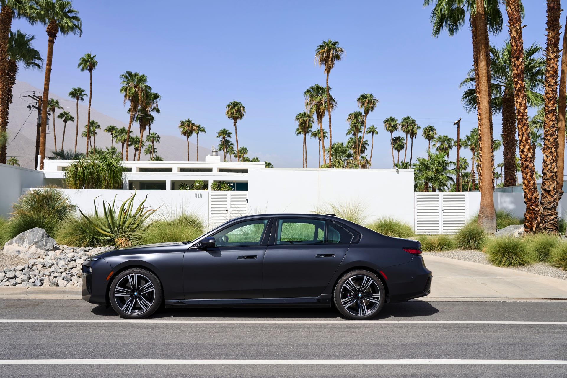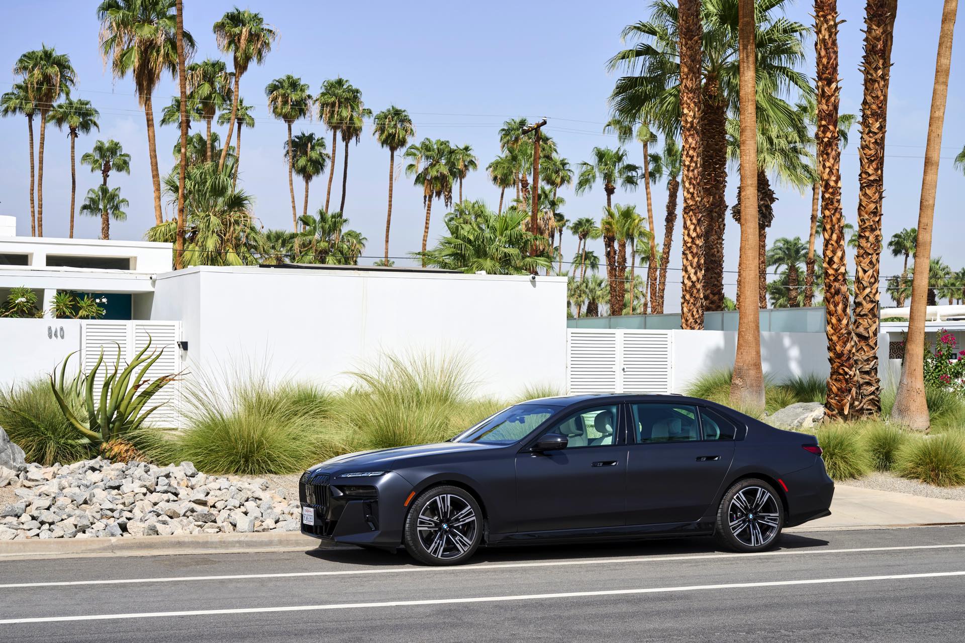 Komfort allein genügt allerdings nicht, um die Kunden eines BMW 7er zu überzeugen: Wer sich für den Bayern und gegen die Mercedes S-Klasse entscheidet, darf auch mehr Freude am Fahren erwarten. Auf den kurvigen Bergstraßen rund um Palm Springs kann der BMW i7 bereits andeuten, dass er diesem Anspruch Gerecht werden will: Wer den MyMode Sport aktiviert, wechselt den Charakter der Limousine auf Knopfdruck und verabschiedet sich mit Nachdruck vom komfortablen Gleiter, in dem er eben noch saß: Die aggressivere Gaspedalkennlinie, die mehr Kraft fordernde Lenkung und das straffer ansprechende Fahrwerk machen den i7 sofort erheblich fahraktiver.