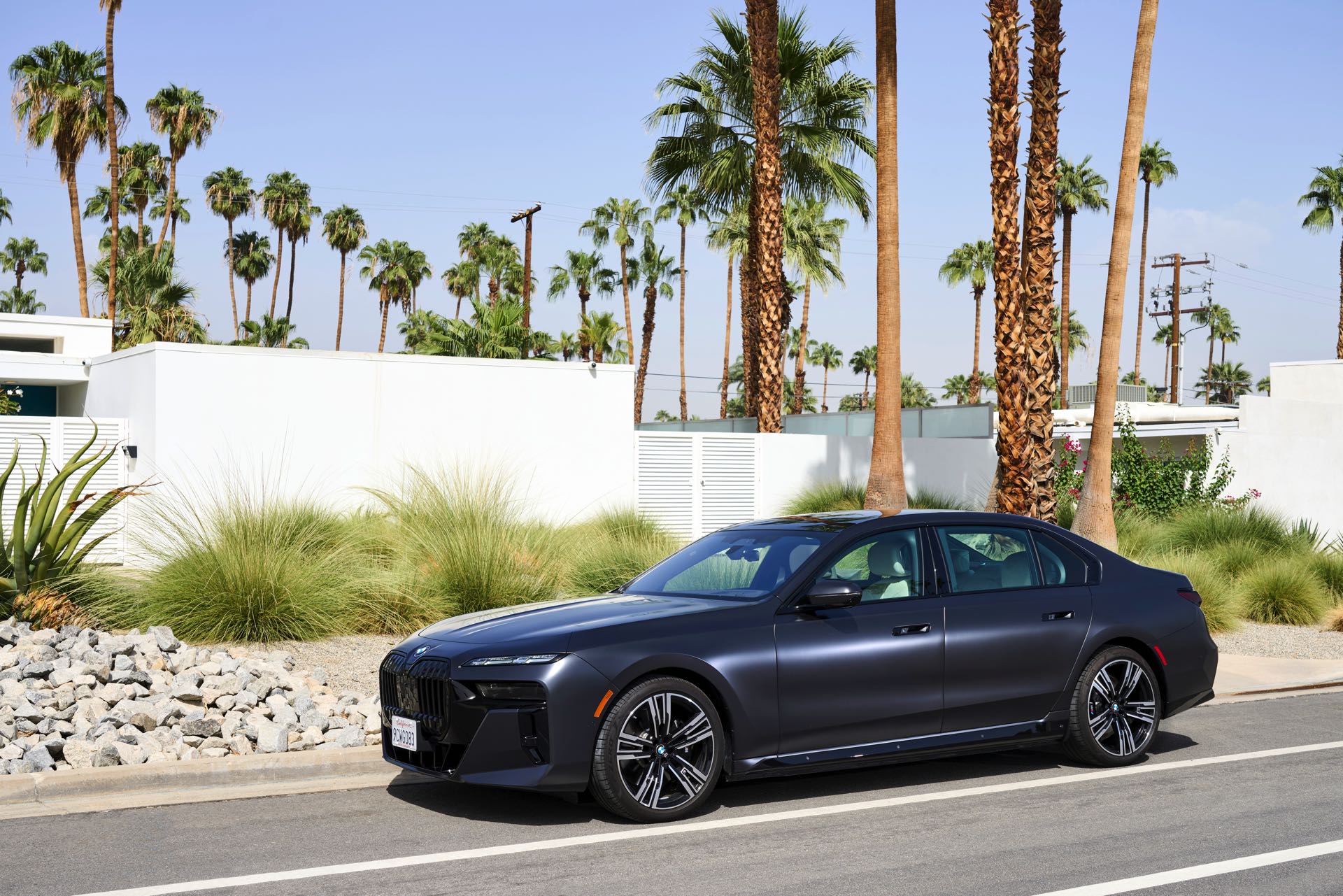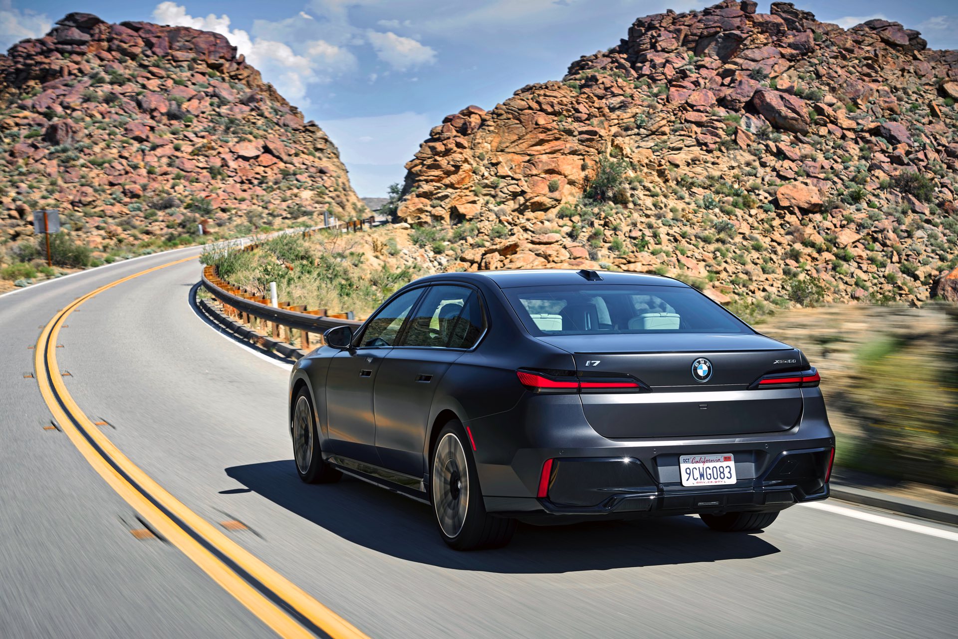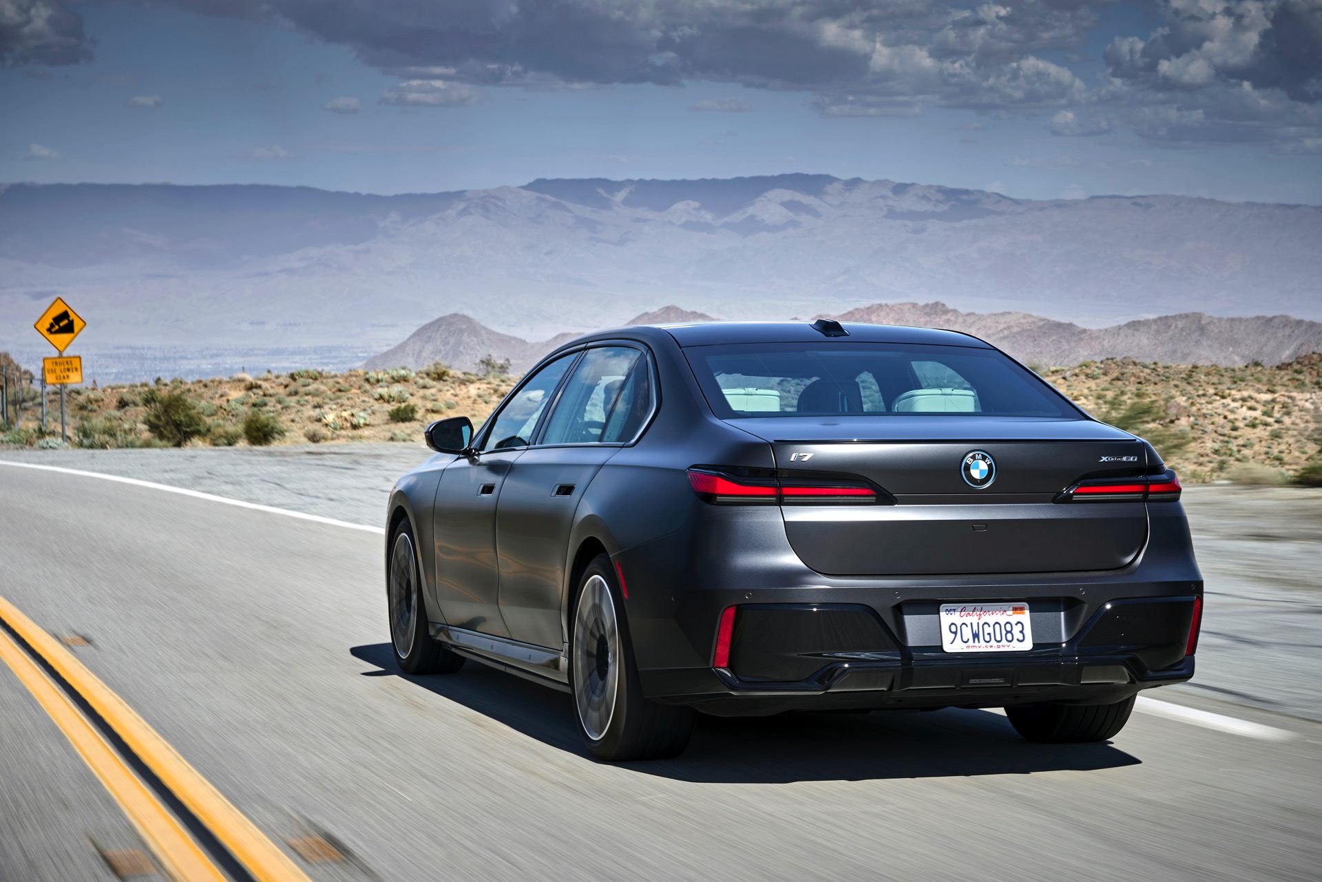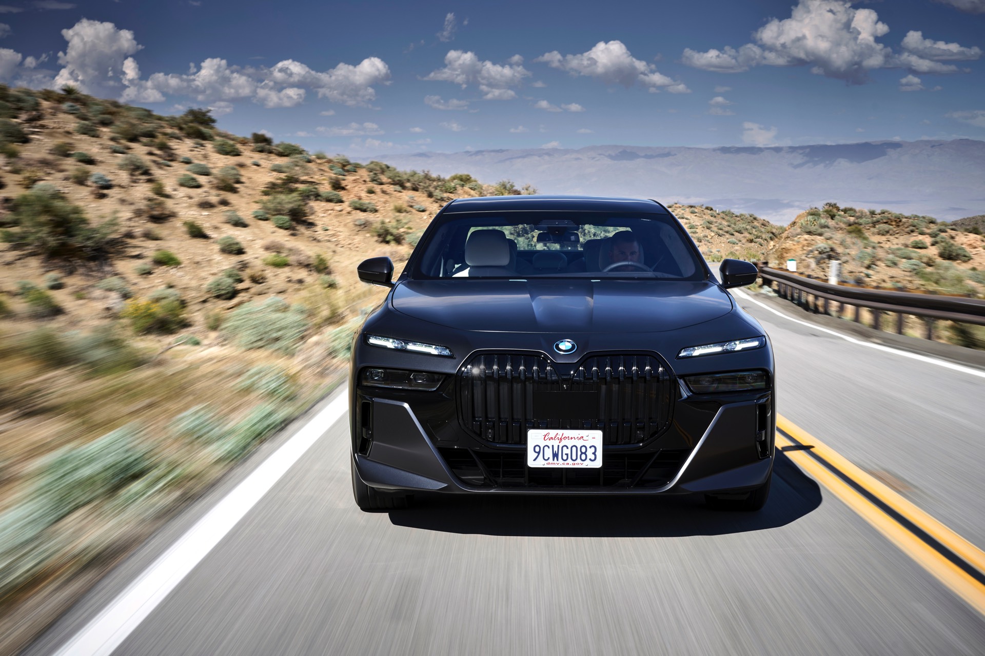 Komfort allein genügt allerdings nicht, um die Kunden eines BMW 7er zu überzeugen: Wer sich für den Bayern und gegen die Mercedes S-Klasse entscheidet, darf auch mehr Freude am Fahren erwarten. Auf den kurvigen Bergstraßen rund um Palm Springs kann der BMW i7 bereits andeuten, dass er diesem Anspruch Gerecht werden will: Wer den MyMode Sport aktiviert, wechselt den Charakter der Limousine auf Knopfdruck und verabschiedet sich mit Nachdruck vom komfortablen Gleiter, in dem er eben noch saß: Die aggressivere Gaspedalkennlinie, die mehr Kraft fordernde Lenkung und das straffer ansprechende Fahrwerk machen den i7 sofort erheblich fahraktiver.
