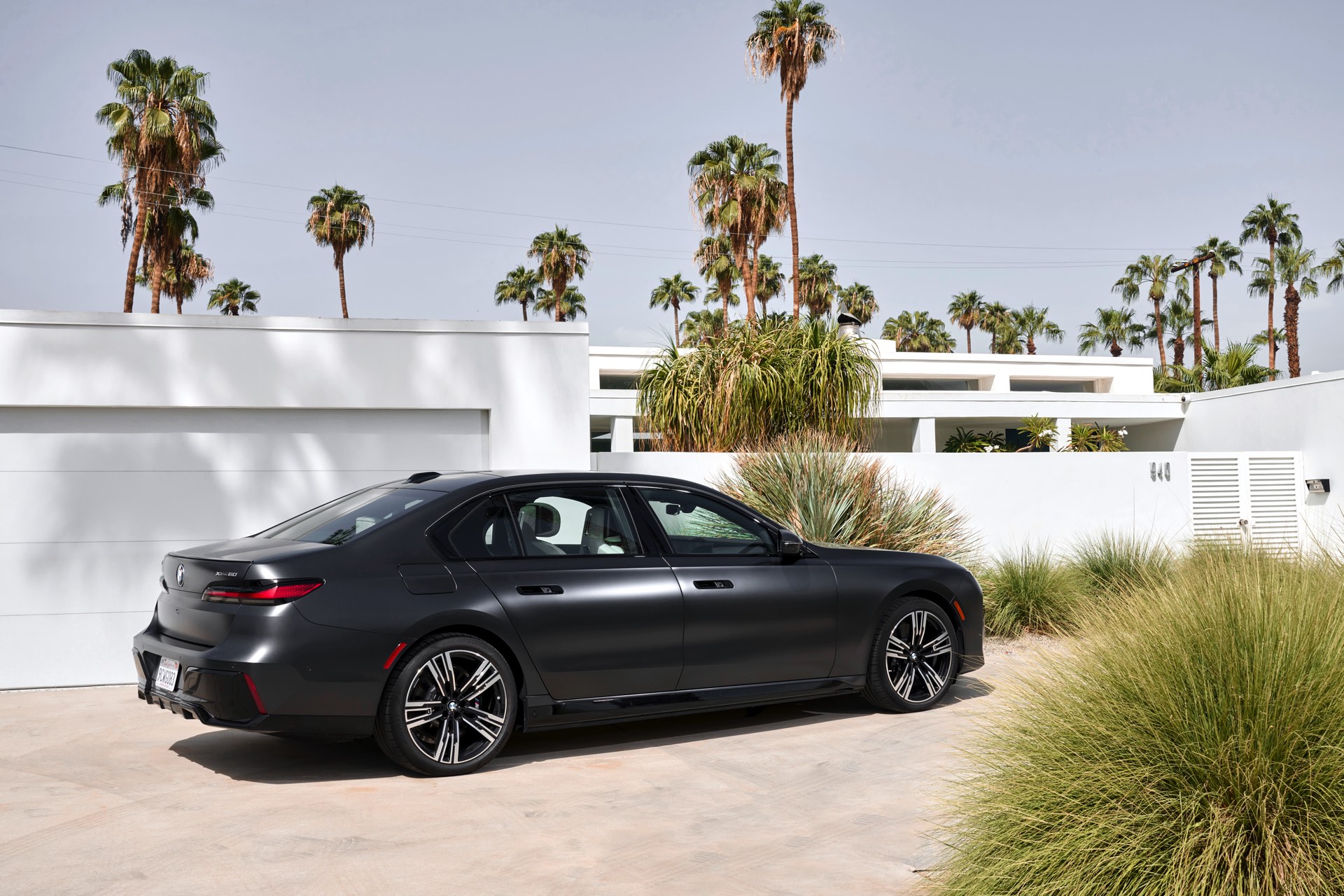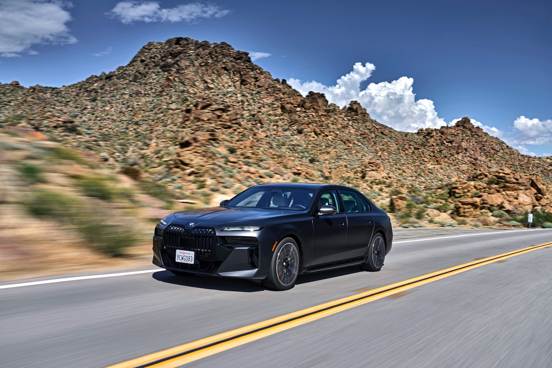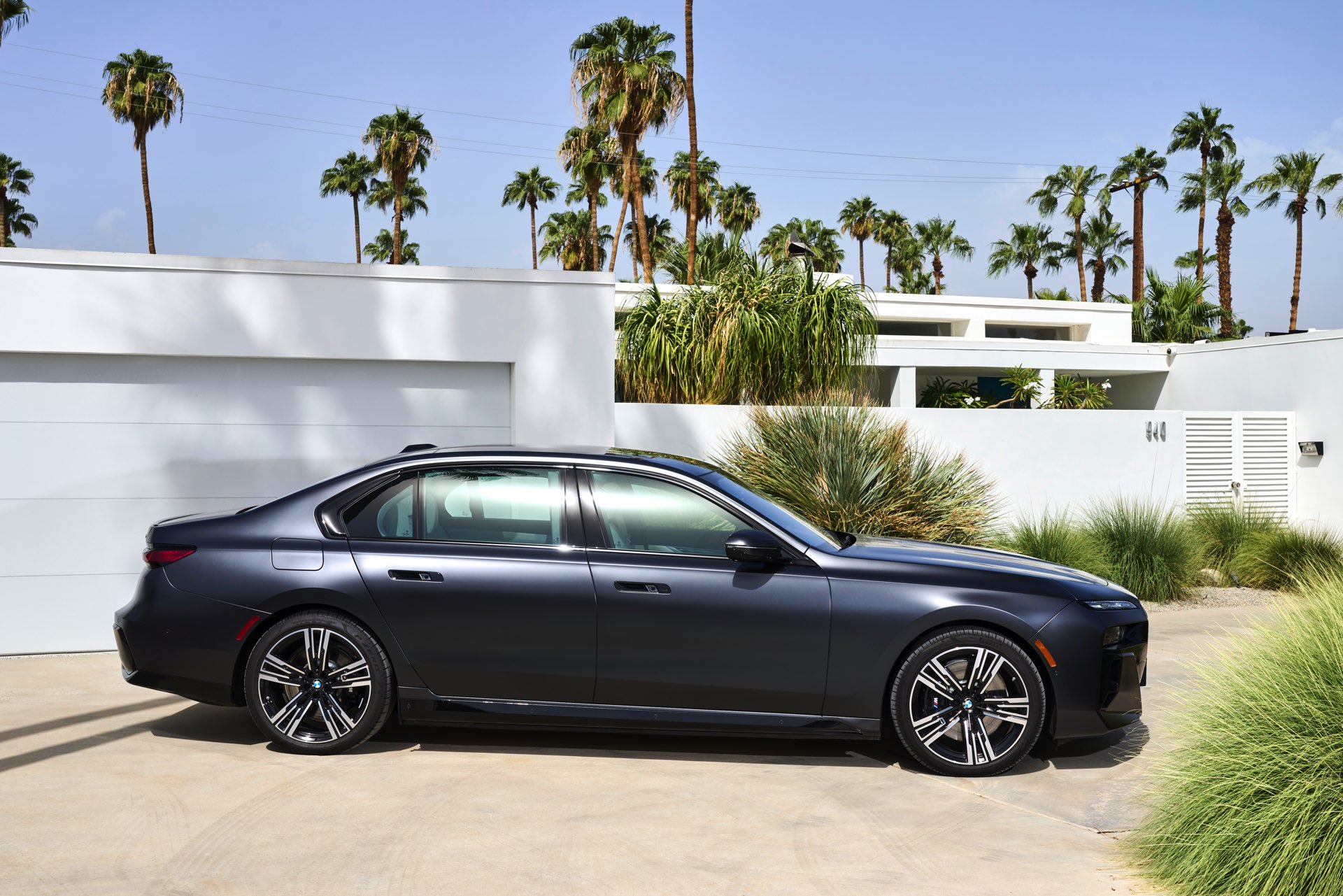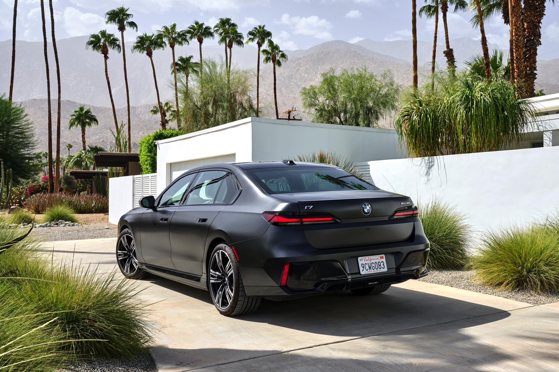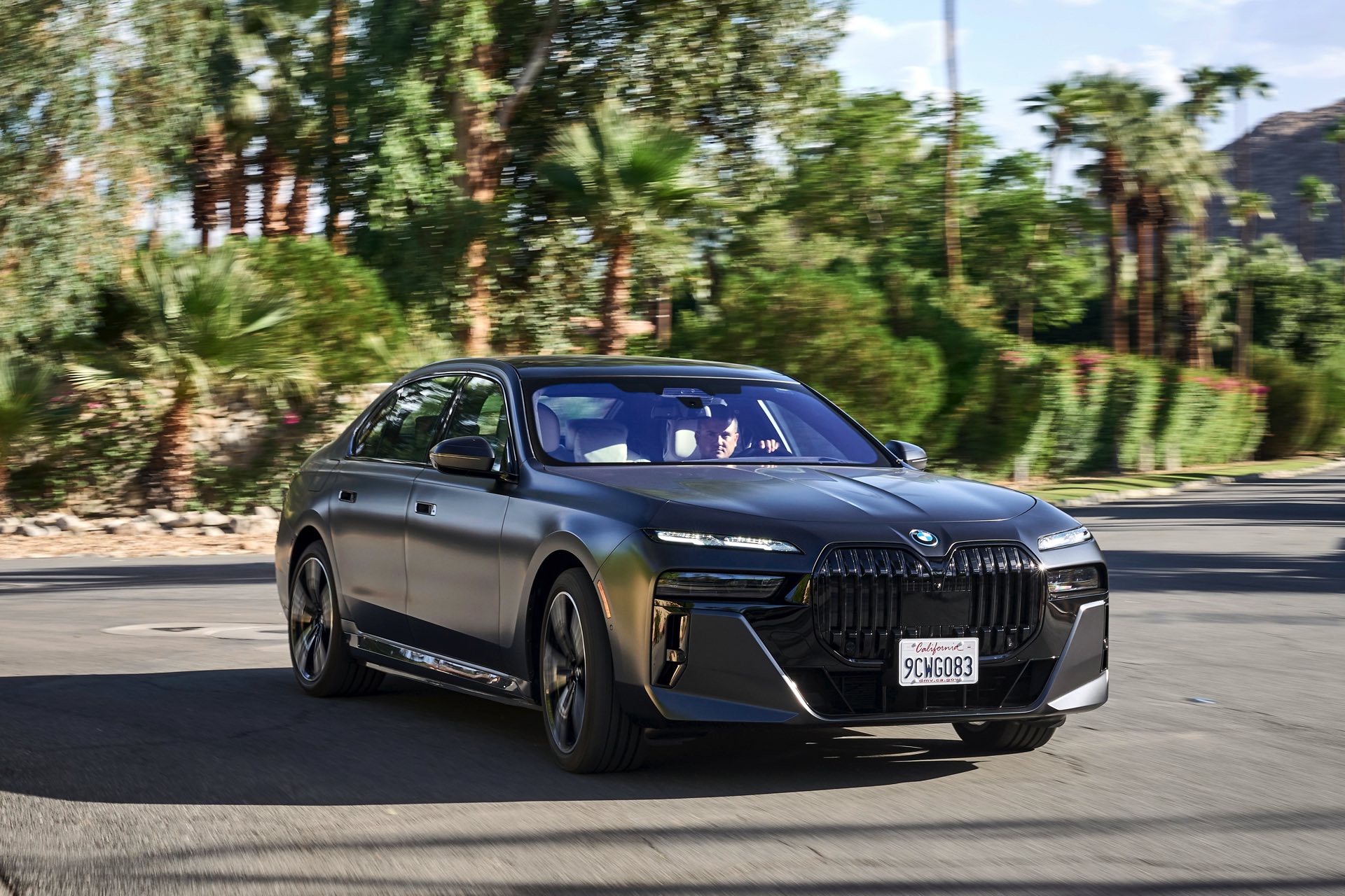 Komfort allein genügt allerdings nicht, um die Kunden eines BMW 7er zu überzeugen: Wer sich für den Bayern und gegen die Mercedes S-Klasse entscheidet, darf auch mehr Freude am Fahren erwarten. Auf den kurvigen Bergstraßen rund um Palm Springs kann der BMW i7 bereits andeuten, dass er diesem Anspruch Gerecht werden will: Wer den MyMode Sport aktiviert, wechselt den Charakter der Limousine auf Knopfdruck und verabschiedet sich mit Nachdruck vom komfortablen Gleiter, in dem er eben noch saß: Die aggressivere Gaspedalkennlinie, die mehr Kraft fordernde Lenkung und das straffer ansprechende Fahrwerk machen den i7 sofort erheblich fahraktiver.