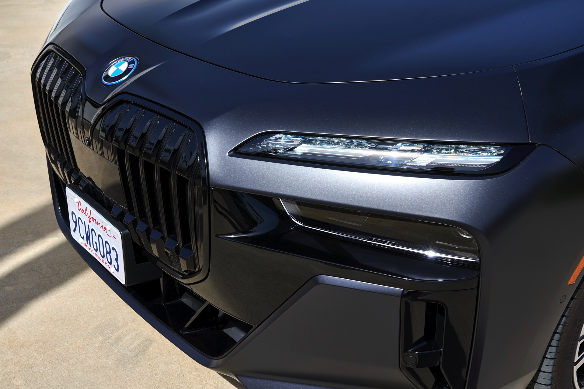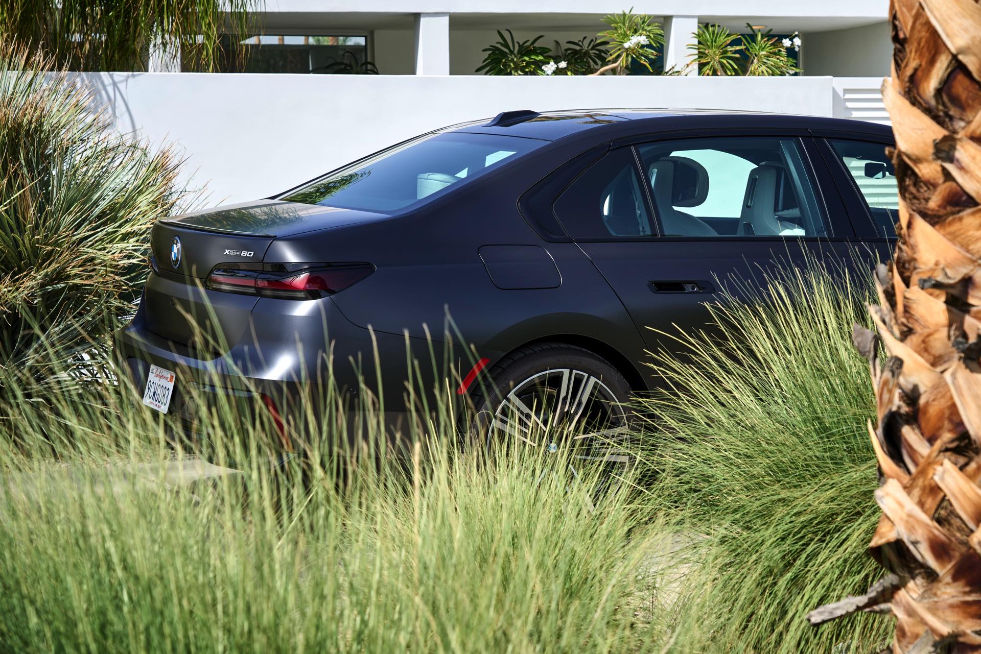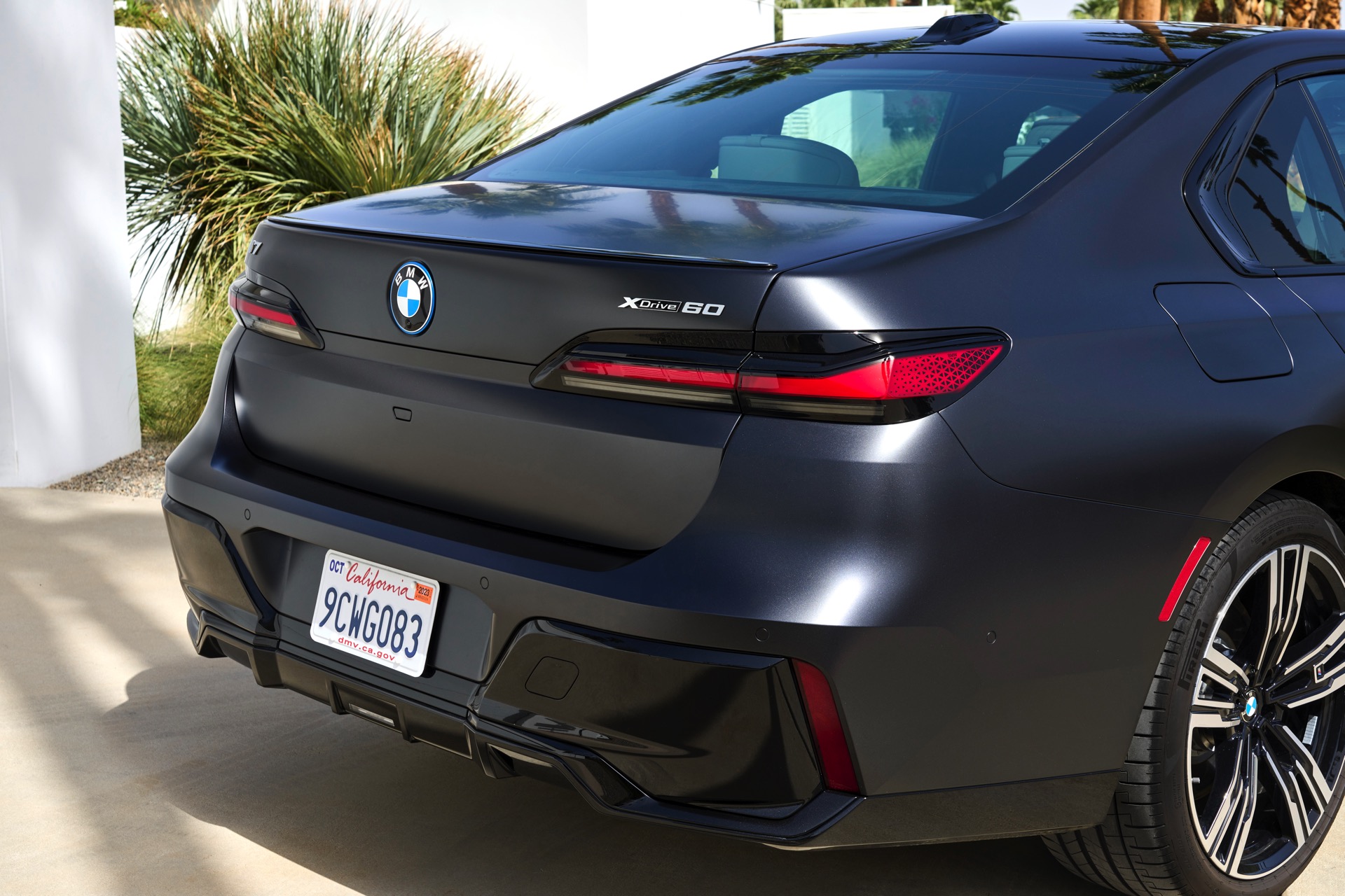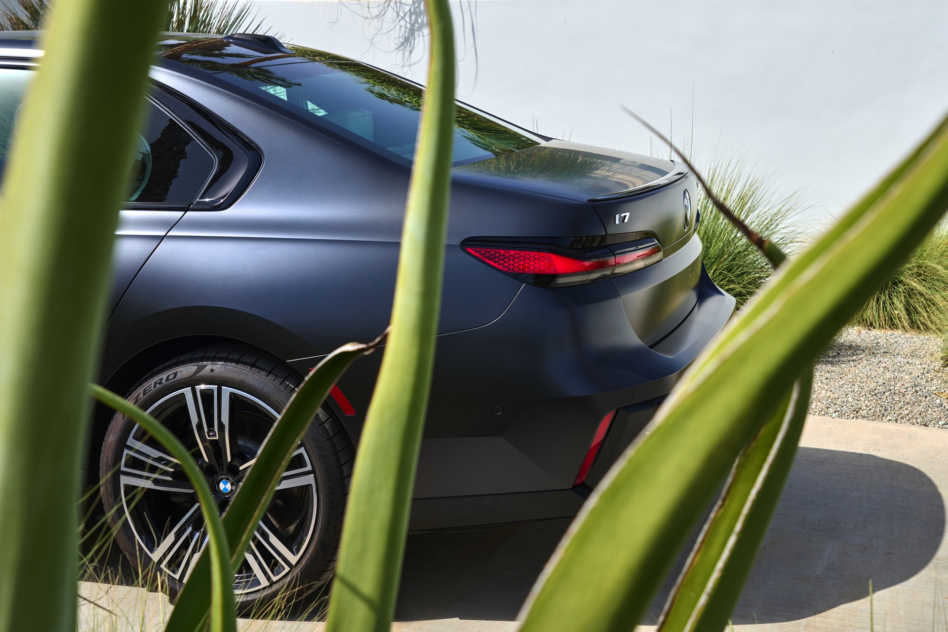 Ist das der neue BMW i7? Oder doch der neue 7er (G70) mit konventionellem Antrieb? Rein äußerlich ist es beinahe unmöglich, die unterschiedlichen Antriebs-Varianten auseinander zu halten. Da wir für unseren ersten Fahrbericht in Kalifornien zwischen i7 und 760i wählen können, ist es aber zumindest etwas einfacher: Gemeinsam mit dem M760e ist der in Europa gar nicht angebotene 760i der einzige 7er, der überhaupt sichtbare Endrohre trägt – alle schwächeren Modelle halten es genau wie der BMW i7 und verzichten vollständig auf dieses Merkmal. Die Botschaft ist klar: Die Zeiten, als ein 7er Abgase ausgestoßen und dies auch noch allen Hinterherfahrenden gezeigt hat, sind im Jahr 2022 endgültig vorbei.