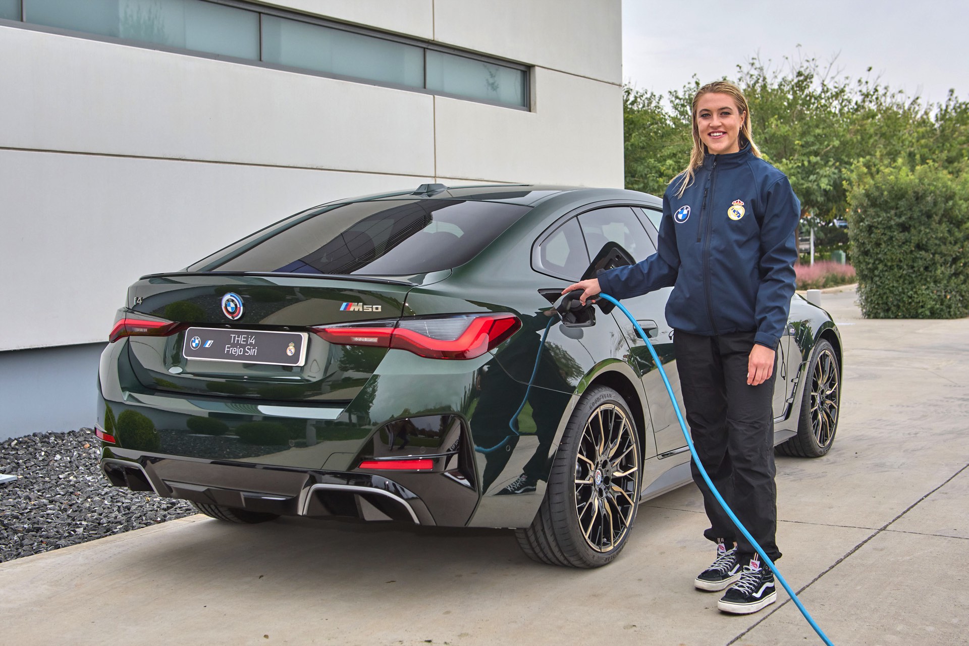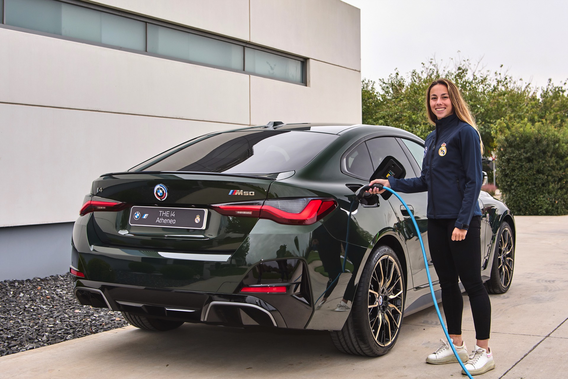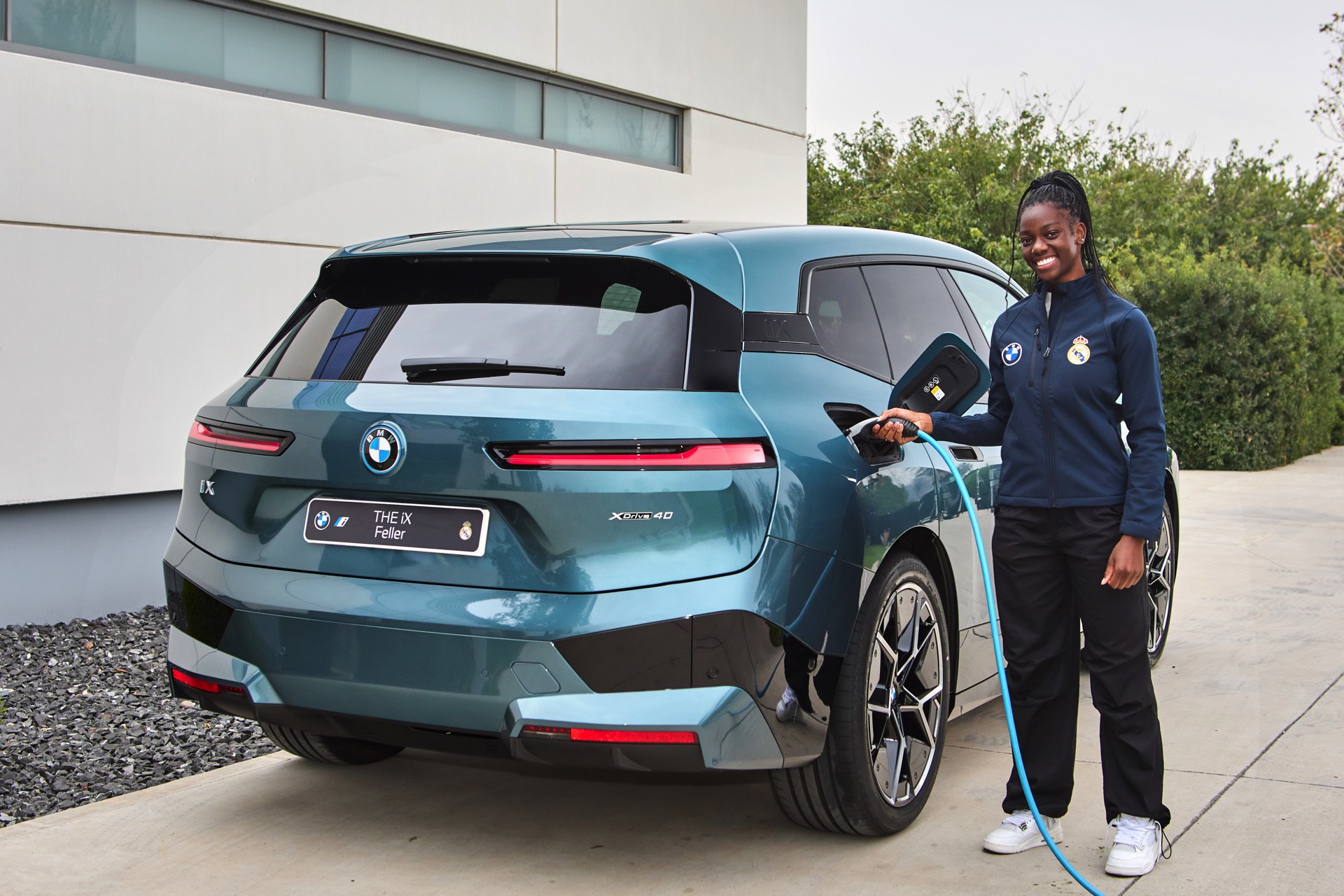 Neben den Männern wurde auch das Frauenfußball-Team von Real Madrid komplett mit neuen Fahrzeugen ausgestattet, hier kommen aber in den meisten Fällen die etwas schwächeren Modelle iX xDrive40 und i4 eDrive40 zum Einsatz.