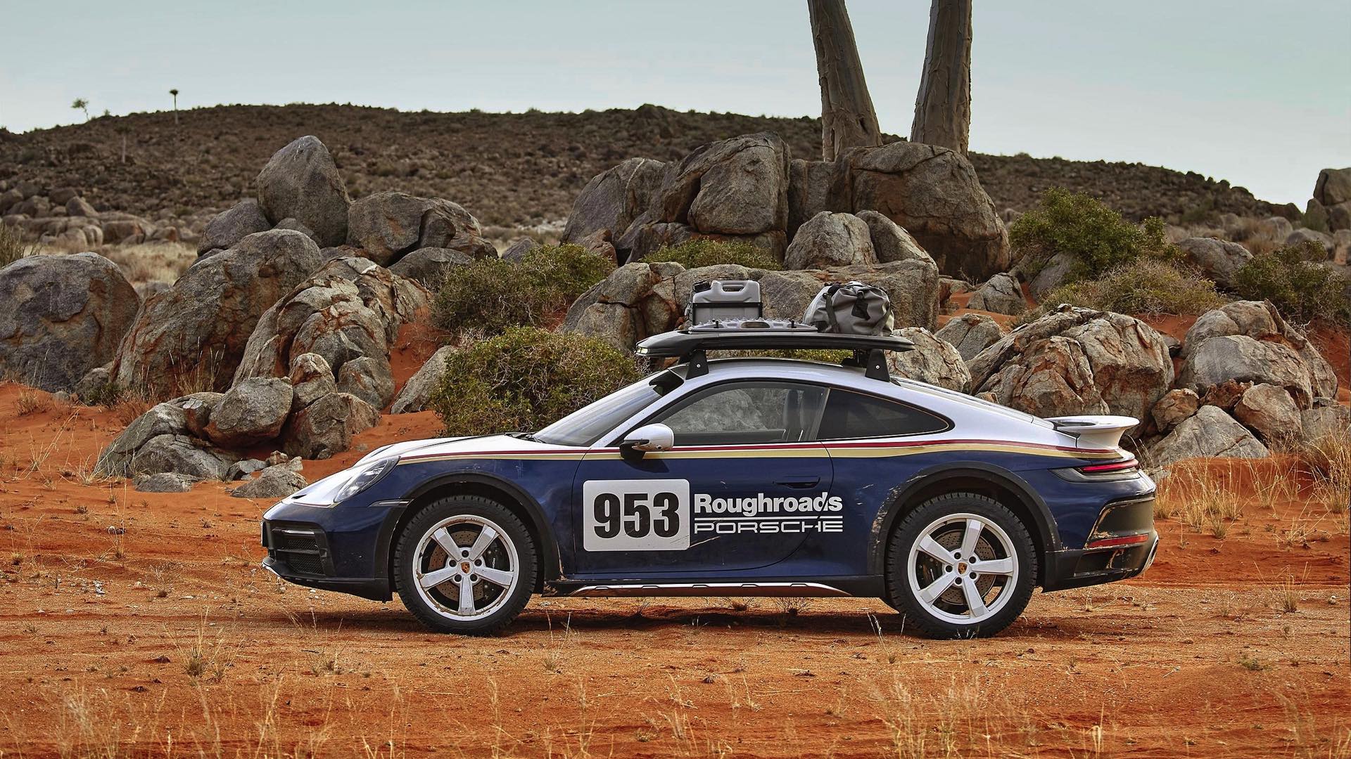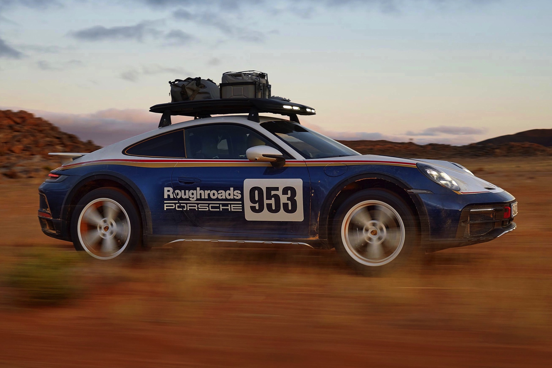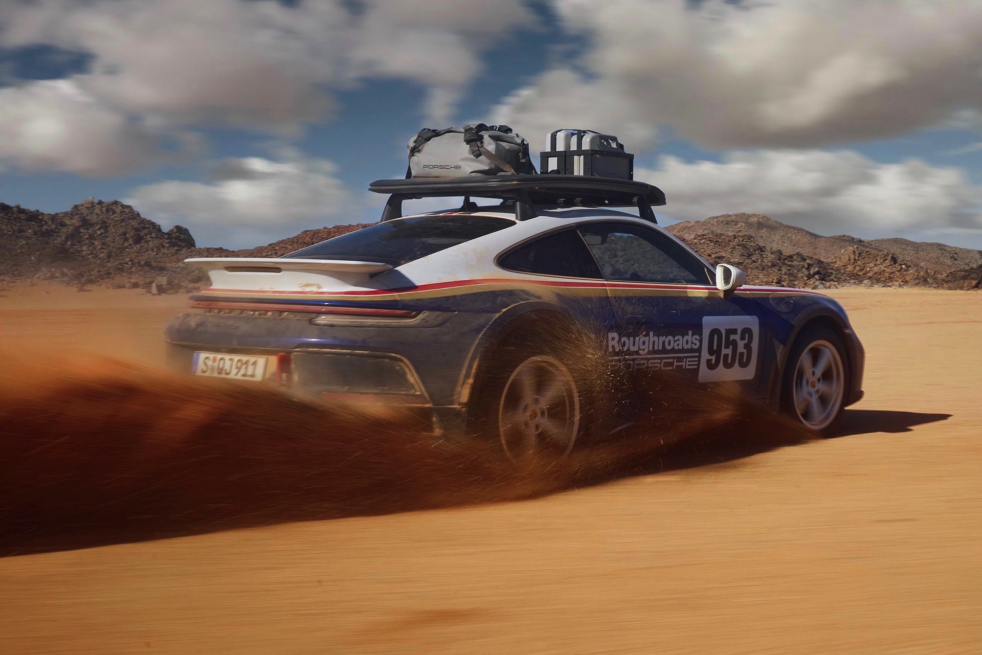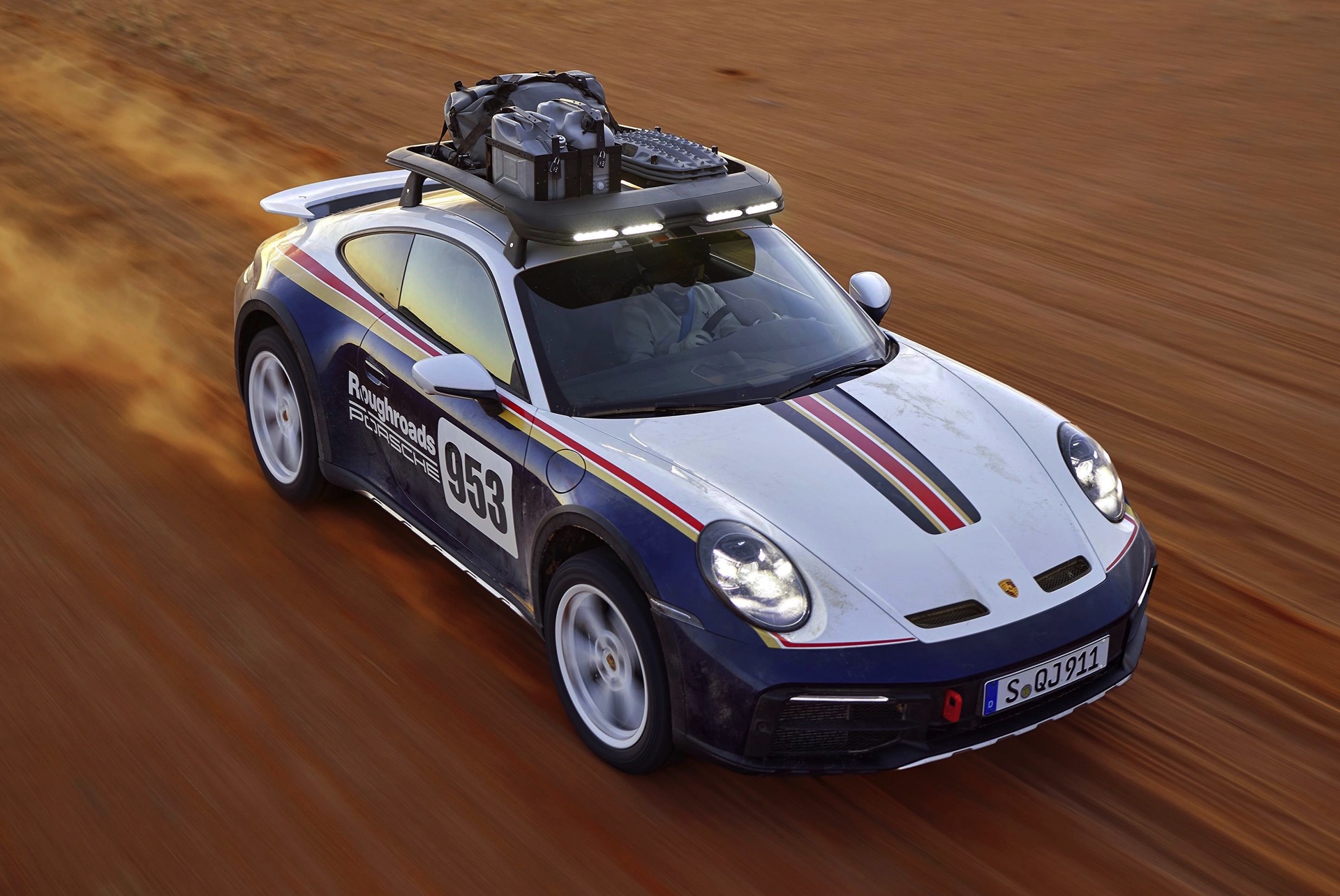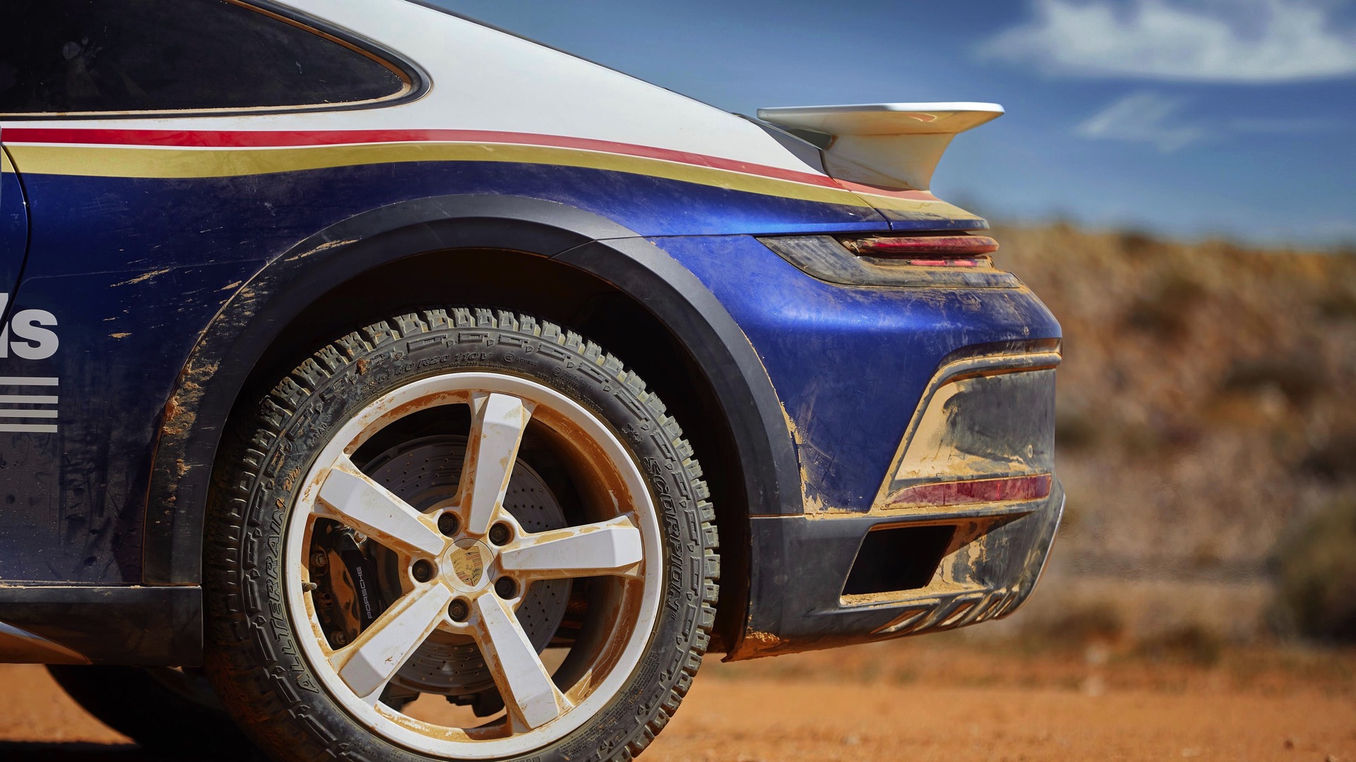 Spezielle Reifen mit grobem Profil treffen auf einen 480 PS starken Antrieb, sodass der Porsche 911 Dakar allem Offroad-Look zum Trotz in nur 3,4 Sekunden von 0 auf 100 beschleunigen kann. Bei Kurven- und Höchstgeschwindigkeit (240 km/h) verlangt die All Terrain-Bereifung zwar nach deutlichen Kompromissen, aber im Gegenzug verspricht der Dakar auch wesentlich mehr neugierige Blicke als ein “gewöhnlicher” 911 – nicht nur dann, wenn er mit dem Rallye Design Paket im Stil früherer Rennwagen mit Rothmans-Werbung bestellt wird.