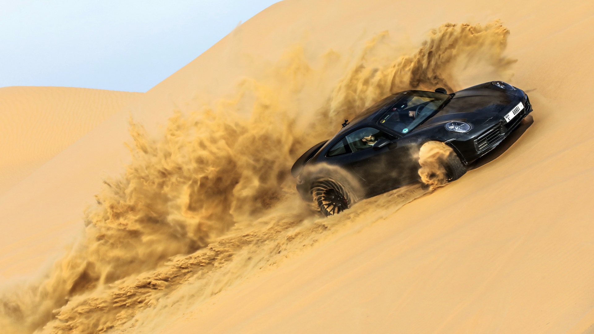 Im Fall des Porsche 911 Dakar haben sich die Entwickler ganz bewusst vom üblichen Rennstrecken-Ansatz verabschiedet, stattdessen kommt der Offroad-Elfer mit 50 Millimetern mehr Bodenfreiheit und einem Liftsystem, das bei Bedarf weitere 30 Millimeter Abstand zum rauen Untergrund bringt. Diese Hochniveau-Einstellung lässt sich bis zu einer Geschwindigkeit von 170 km/h nutzen, womit theoretisch auch sehr schnelle Offroad-Fahrten möglich werden. Bei Bodenfreiheit und Rampenwinkel erreicht der 911 Dakar laut Porsche ein Niveau, das normalerweise nur SUV bieten können.