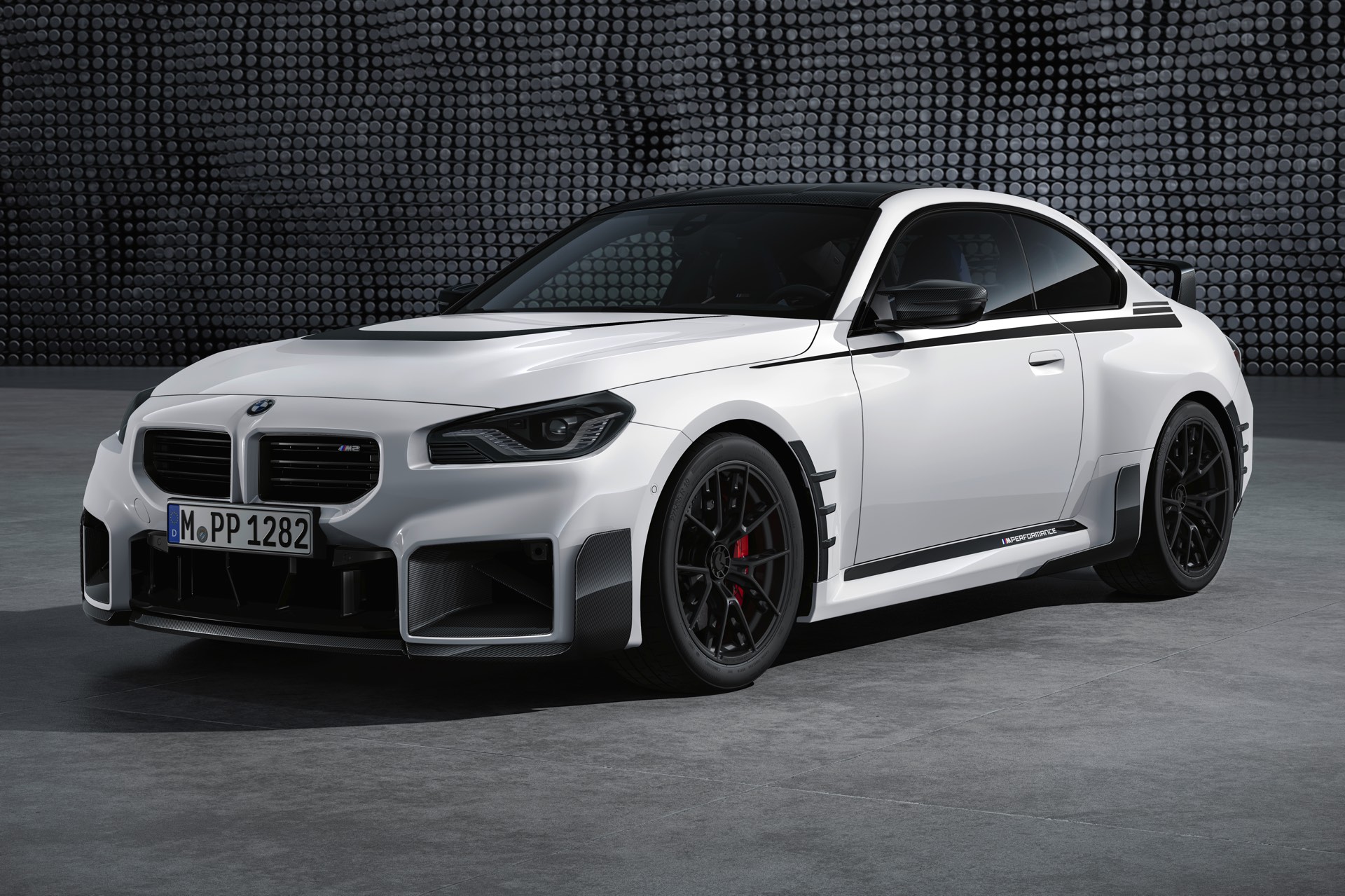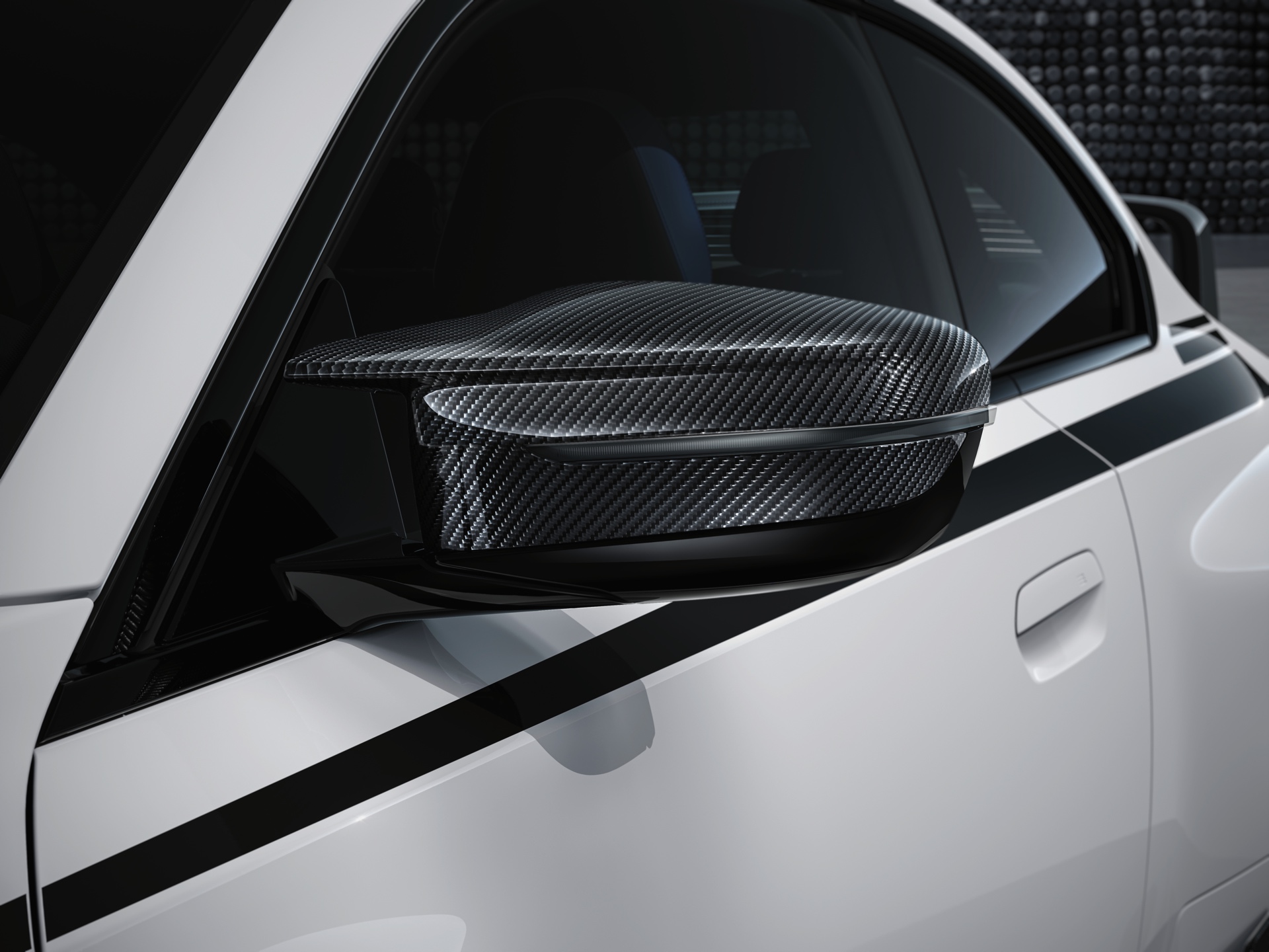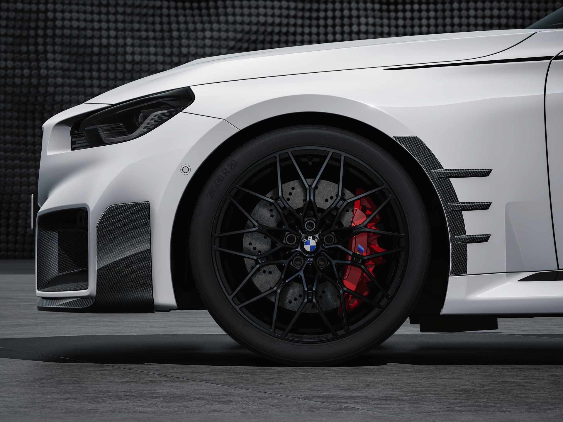 Für noch mehr Performance auf der Rennstrecke sorgen auch diverse Leichtbau-Optionen, die für den BMW M2 (G87) erhältlich sind: Das Carbon-Dach (2.600 Euro) spart sechs Kilogramm an der höchsten Stelle des Fahrzeugs, die M Carbon-Schalensitze (4.500 Euro) sind im Vergleich zum Seriensitz sogar 10,8 Kilogramm leichter und die markante Klappen-Abgasanlage aus dem M Performance-Programm spart weitere 8 Kilogramm ein.