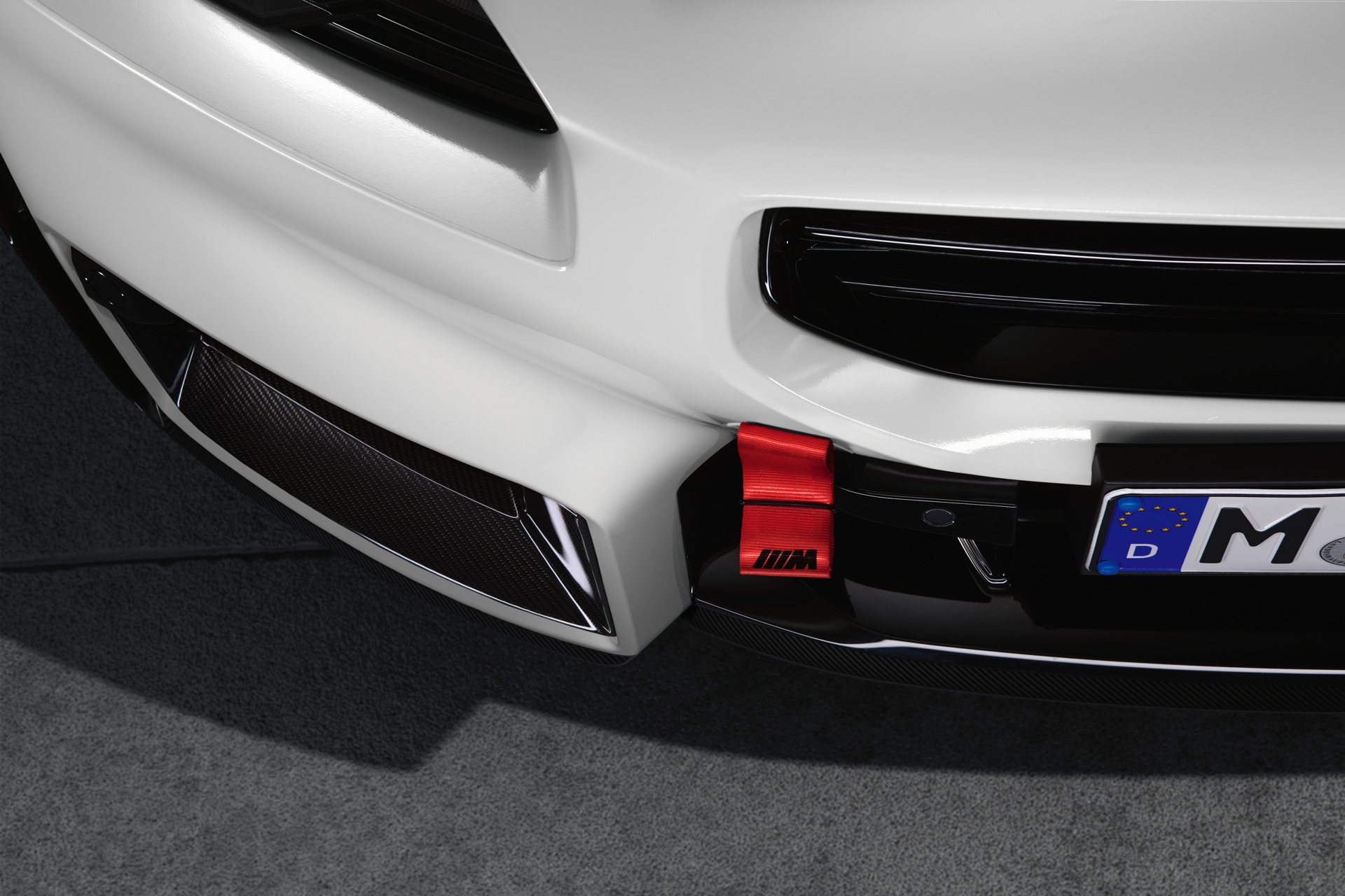 Auch wenn der serienmäßige Look wahrlich keinen Hehl aus dem Wesen des BMW M2 macht, wird mit den werkseigenen Tuning-Teilen zweifellos die nächste Stufe gezündet: Seitliche Aero-Flaps vor Vorder- und Hinterrädern, ein mächtiger Heckflügel und eine Abgasanlage mit vier trapezförmig angeordneten Endrohren sind dabei nur die Dinge, die gleich auf den ersten Blick ins Auge fallen. Wie inzwischen auch offiziell bestätigt wurde, umfasst das M Performance-Programm auch Felgen mit Zentralverschluss (Center Lock), die beim Einsatz auf der Rennstrecke einen noch schnelleren Räderwechsel erlauben.