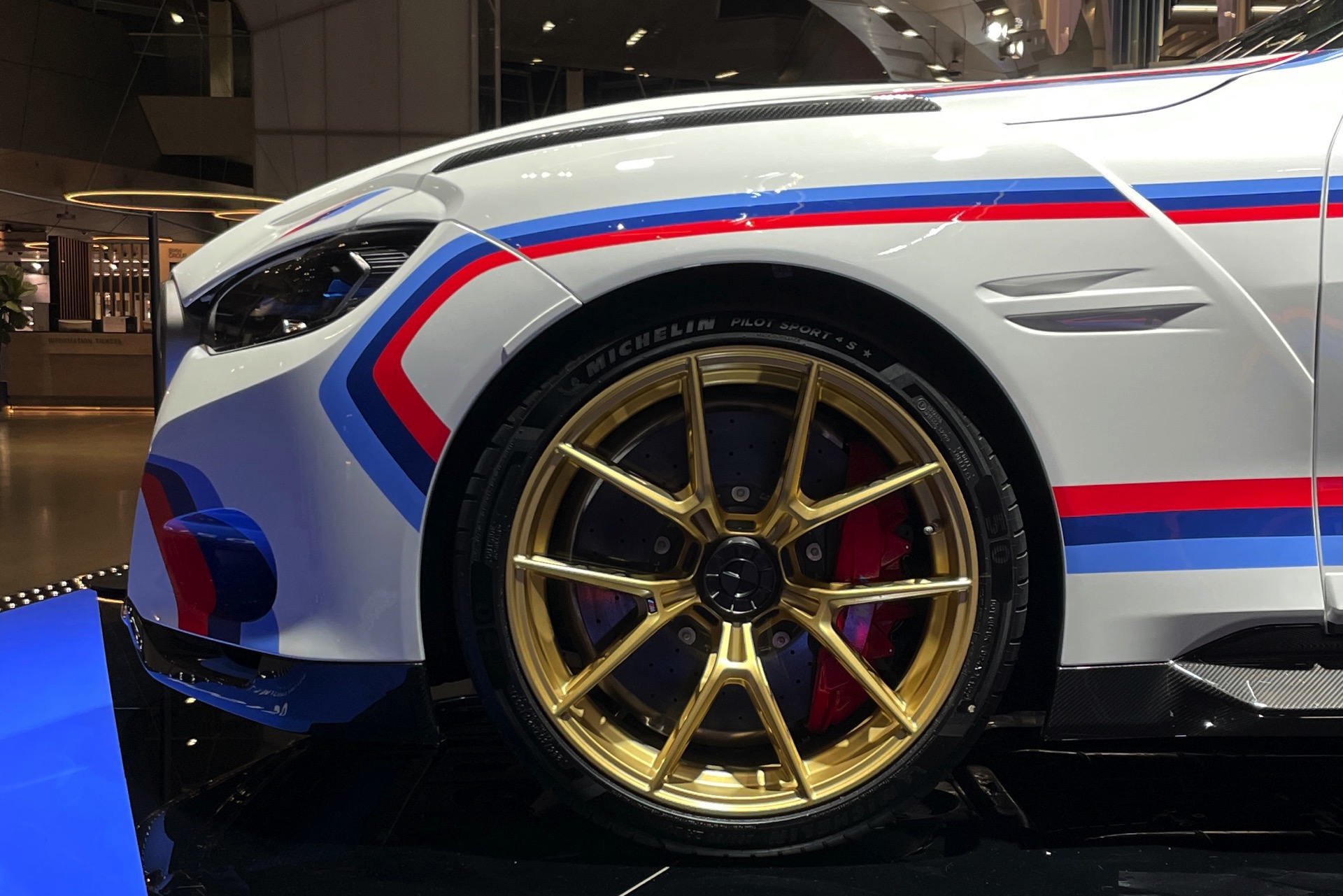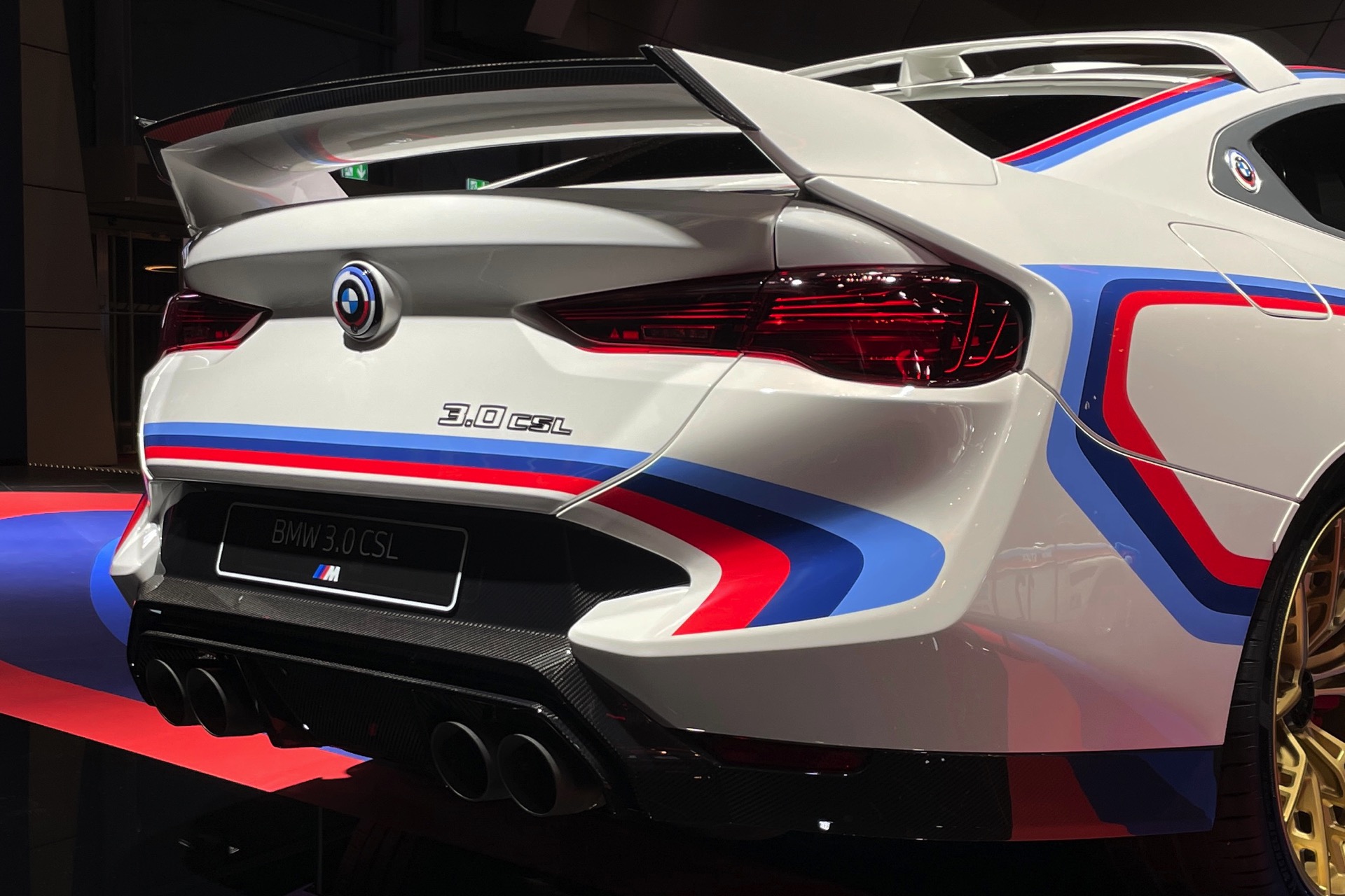 Auf den Fotos aus der BMW Welt kommen das dank zahlreicher eigenständiger Carbon-Elemente extrem eigenständige Design und die außergewöhnliche Lackierung des BMW 3.0 CSL voll zur Geltung: Auch wenn die technische Nähe zum BMW M4 CSL (G82) ein offenes Geheimnis ist, kann der 3.0 CSL aus keiner Perspektive mit ihm verwechselt werden. Dazu trägt natürlich auch die Lackierung bei: Alle 50 Exemplare tragen die Grundfarbe Alpinweiß uni, aber auch die aufwändige Livery in den Farben der M GmbH wird in unzähligen Arbeitsschritten und vielen Stunden Handarbeit lackiert.