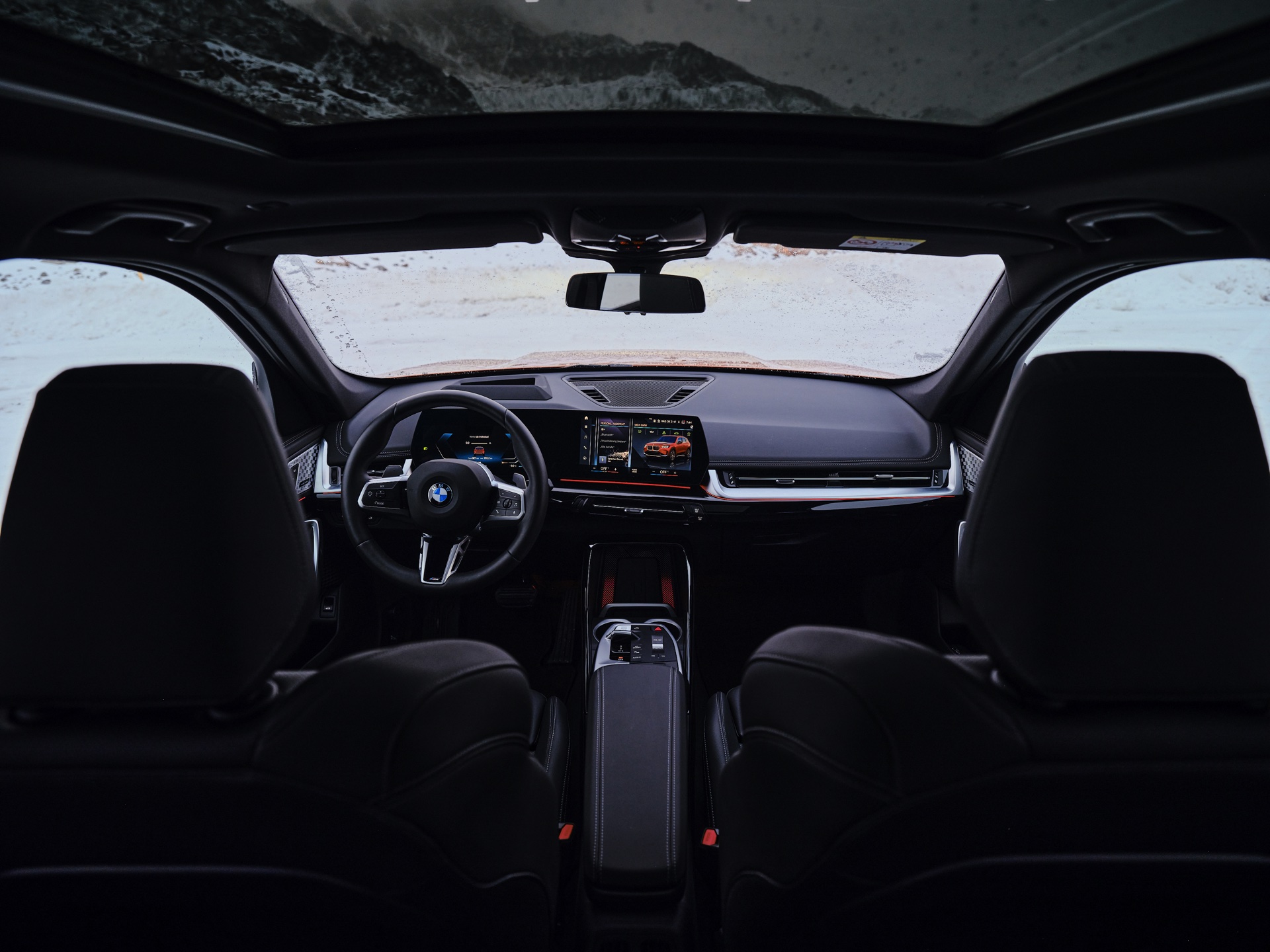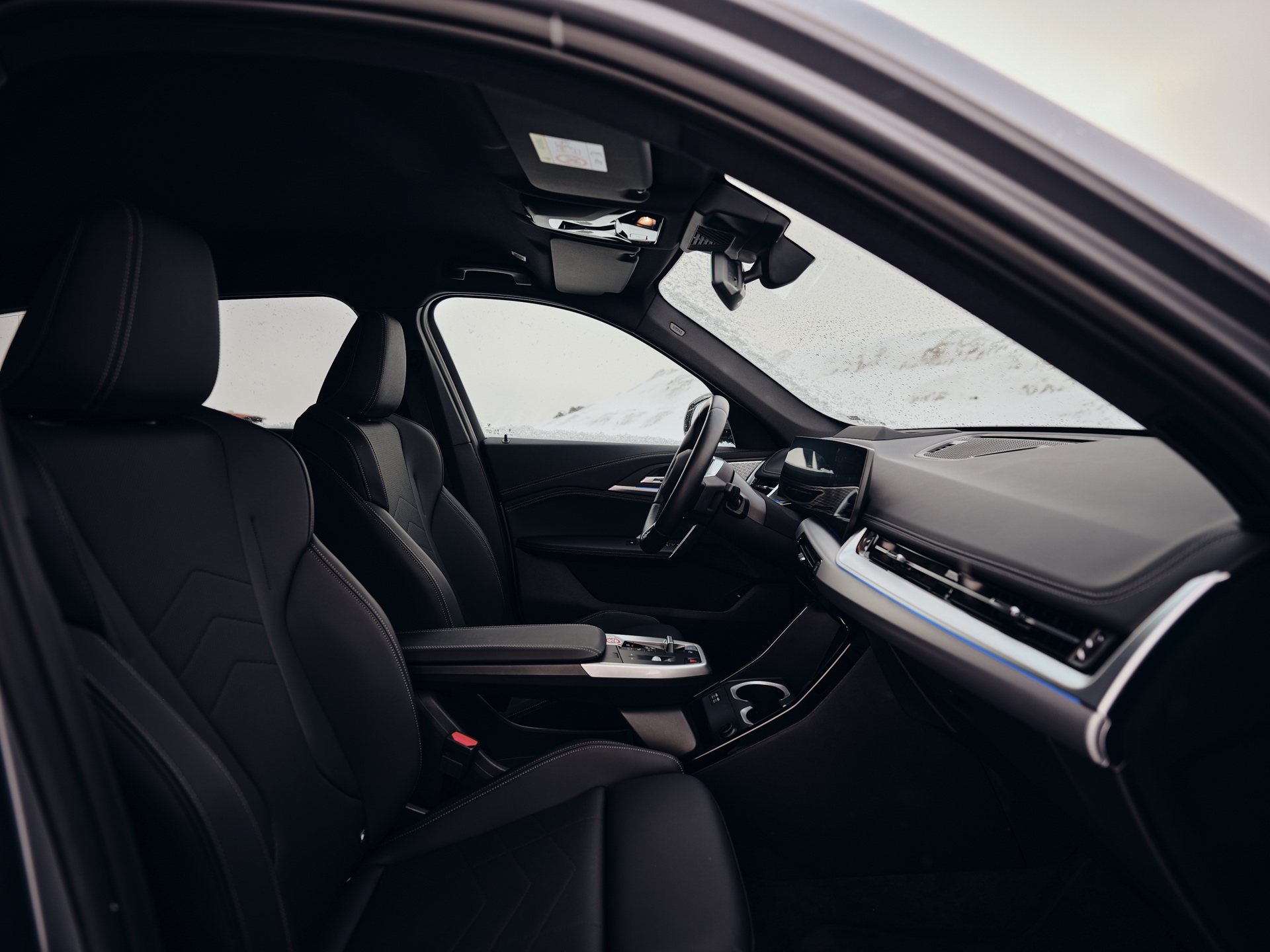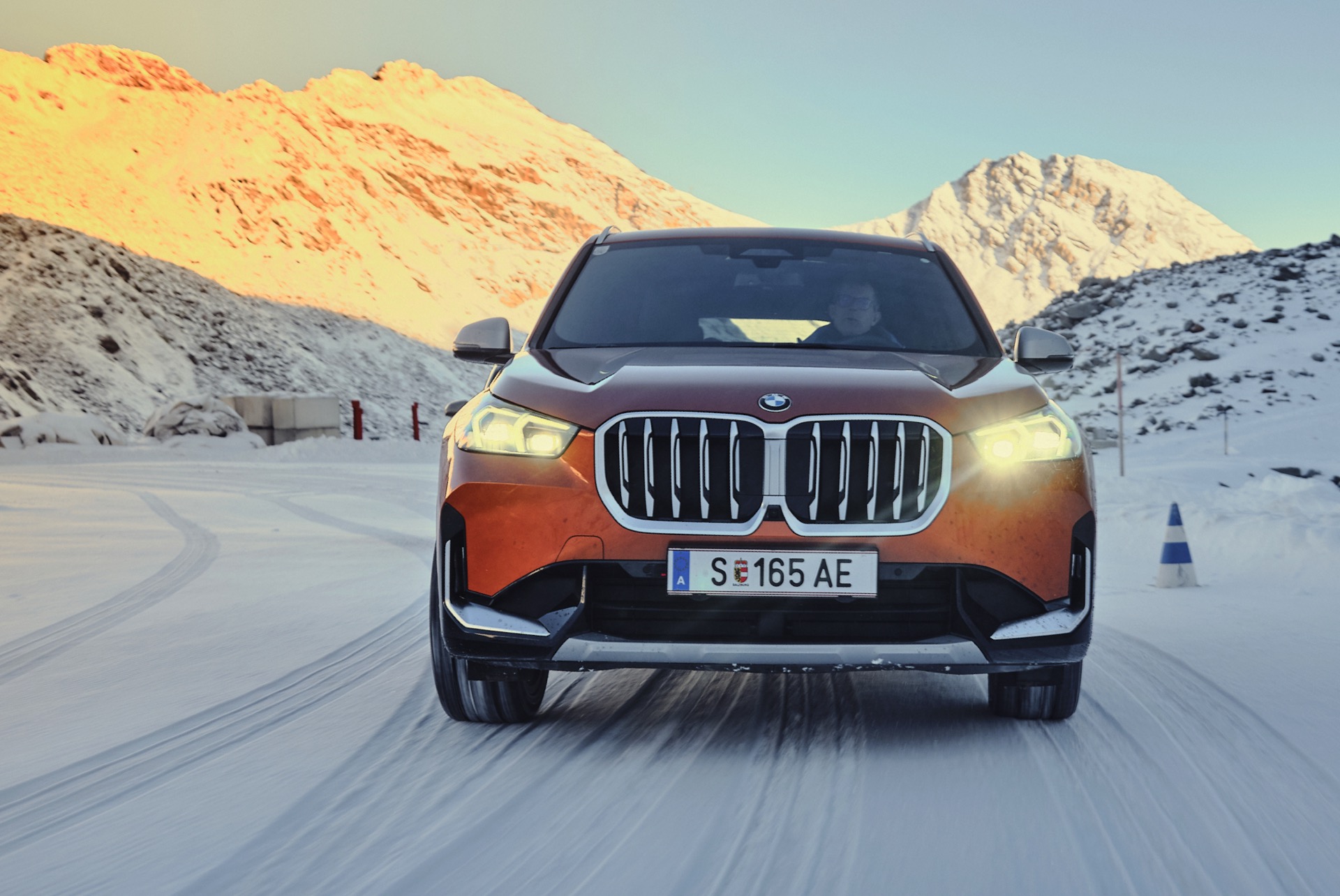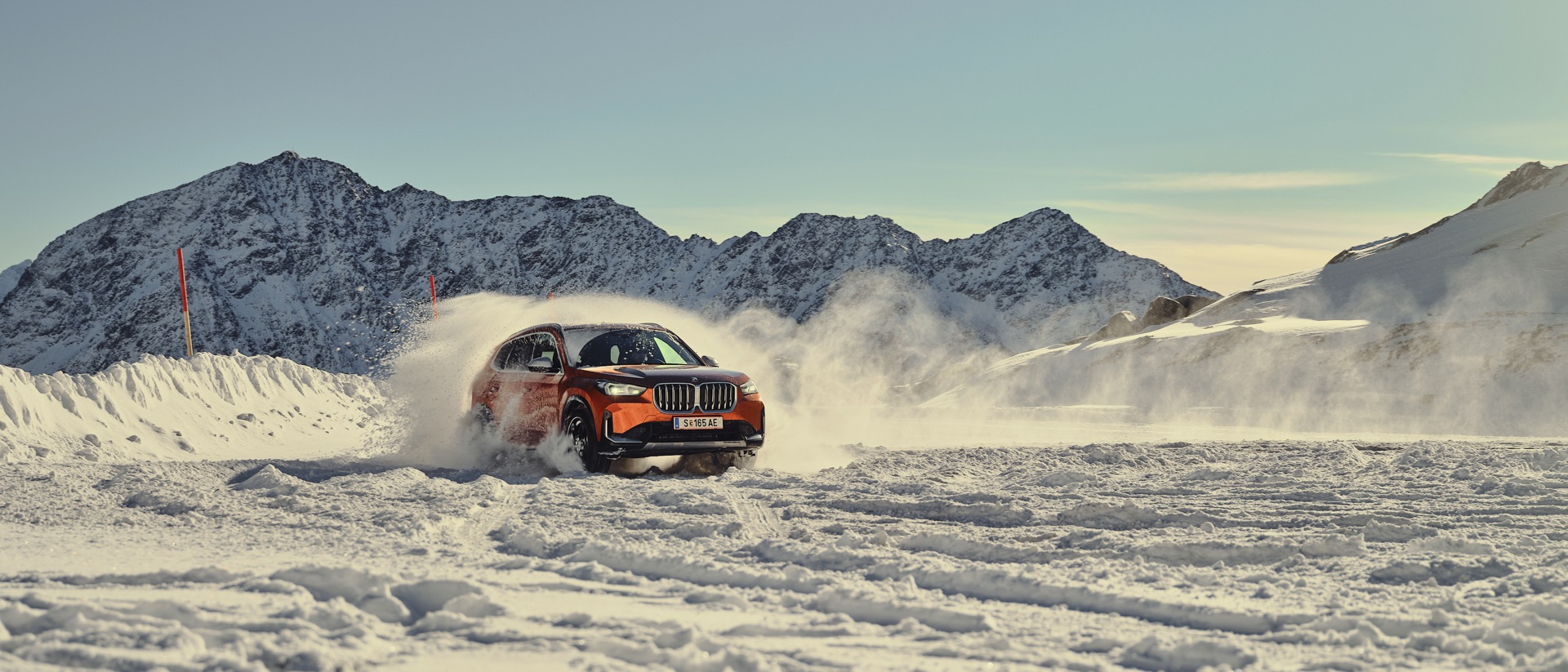 Aus der Gruppe heraus sticht ein BMW X1 xDrive23d in Utah Orange, schließlich liefert die markante Farbe einen spannenden Kontrast zum verschneiten Hintergrund. Der 211 PS und 400 Newtonmeter starke Diesel-X1 mit xLine darf sich im Schnee richtig austoben und zeigt dabei, dass er mit winterlichen Straßenverhältnissen keine Probleme hat. Extrem frostig tritt der  BMW iX1 in Frozen Pure Grey auf, schließlich befindet sich hier sogar noch eine dünne Reif-Schicht auf dem ohnehin “gefrorenen” Frozen-Lack und macht die Kälte förmlich greifbar. "