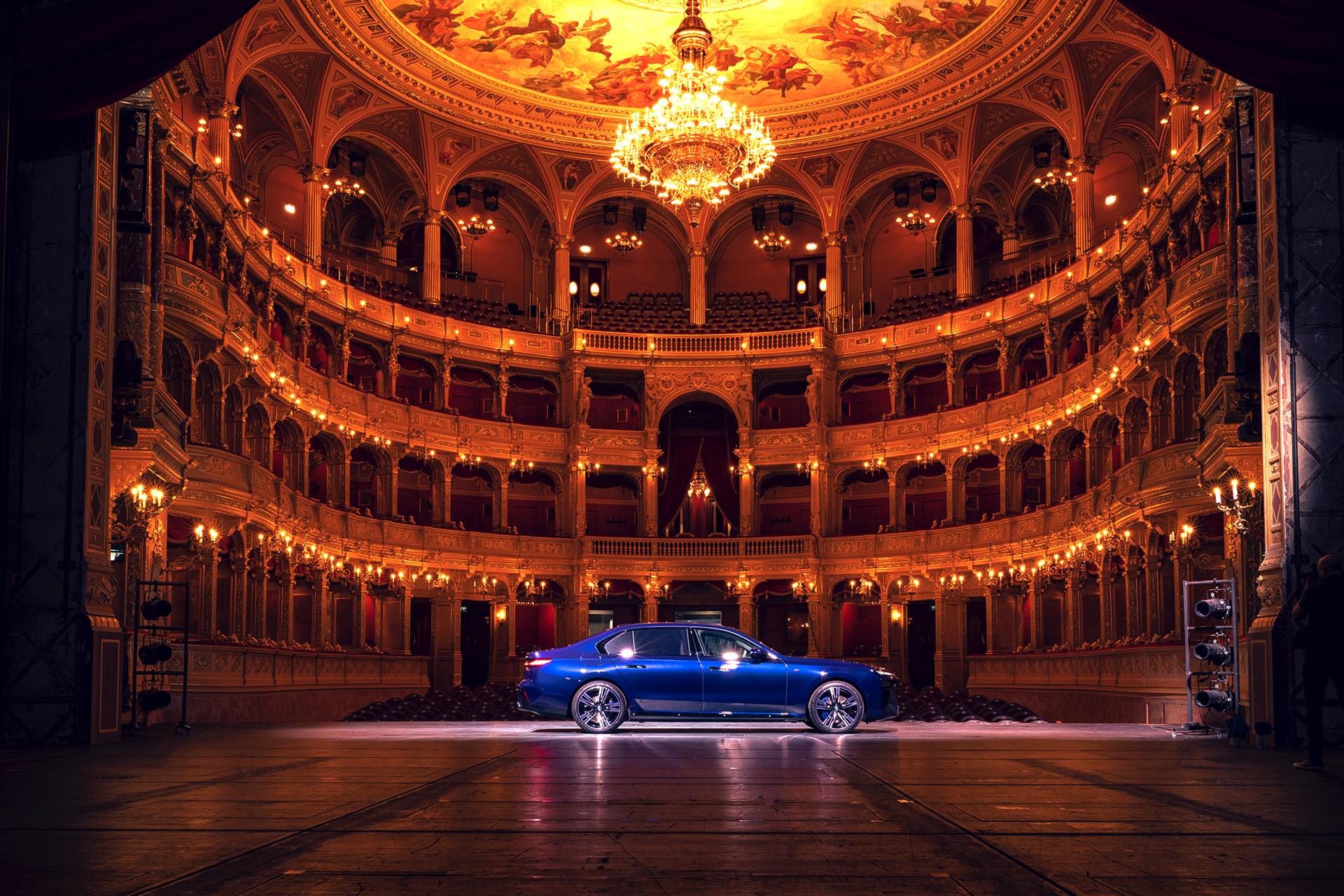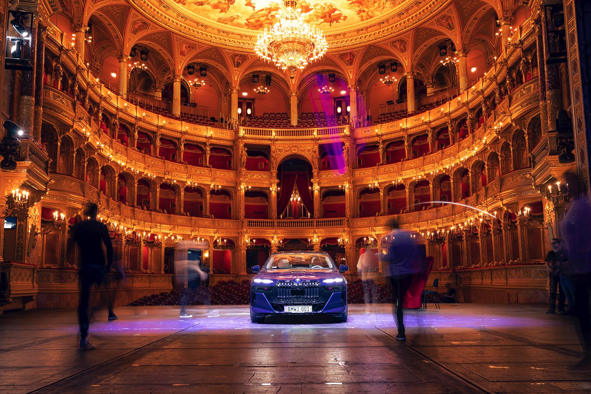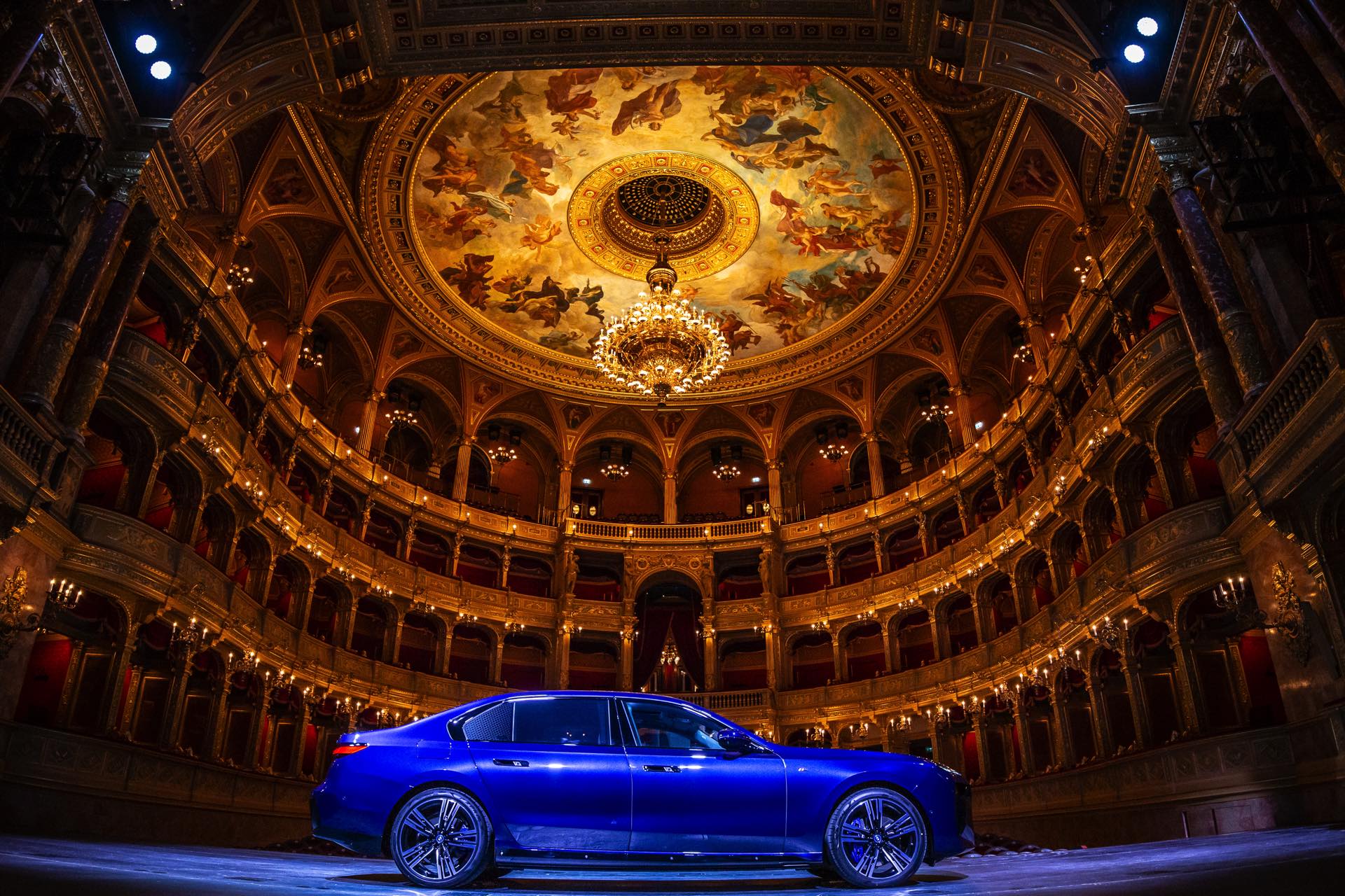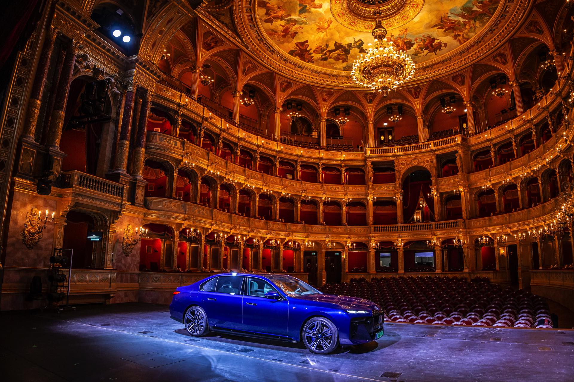 138 Jahre nach der Eröffnung der Budapester Staatsoper steht nun zum ersten Mal eine rein elektrisch angetriebene Luxuslimousine auf der über 700 Quadratmeter großen Bühne. Möglich wurden die Fotos, weil BMW Ungarn die Staatsoper im Rahmen der Kulturförderung bereits seit mehr als sieben Jahren unterstützt und das Gebäude deshalb von Zeit zu Zeit nutzen darf. Von dieser Option machten die Verantwortlichen nun für die ungarische Premiere des BMW i7 Gebrauch und konnten das Fahrzeug so in einem einzigartigen Rahmen präsentieren. "
