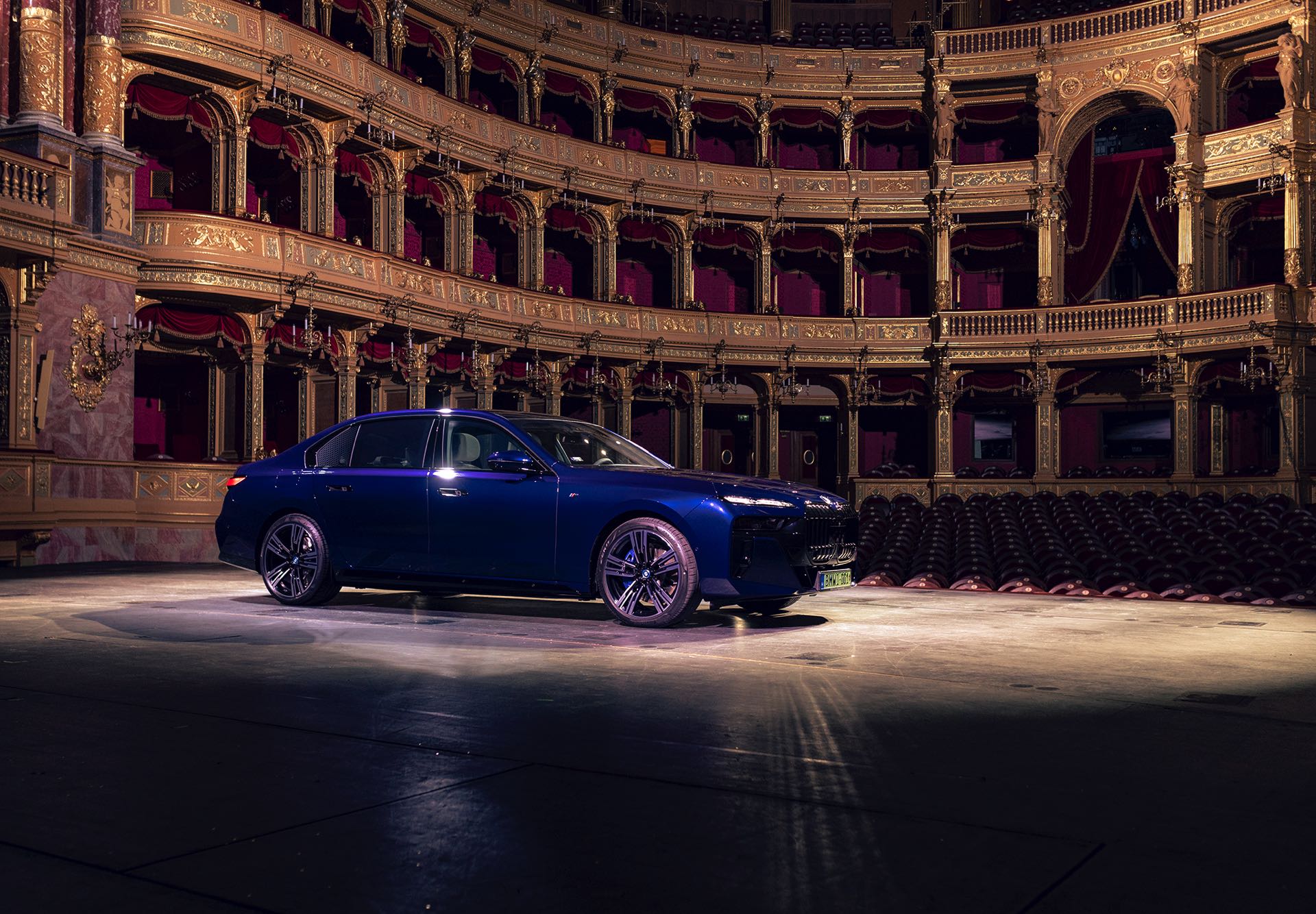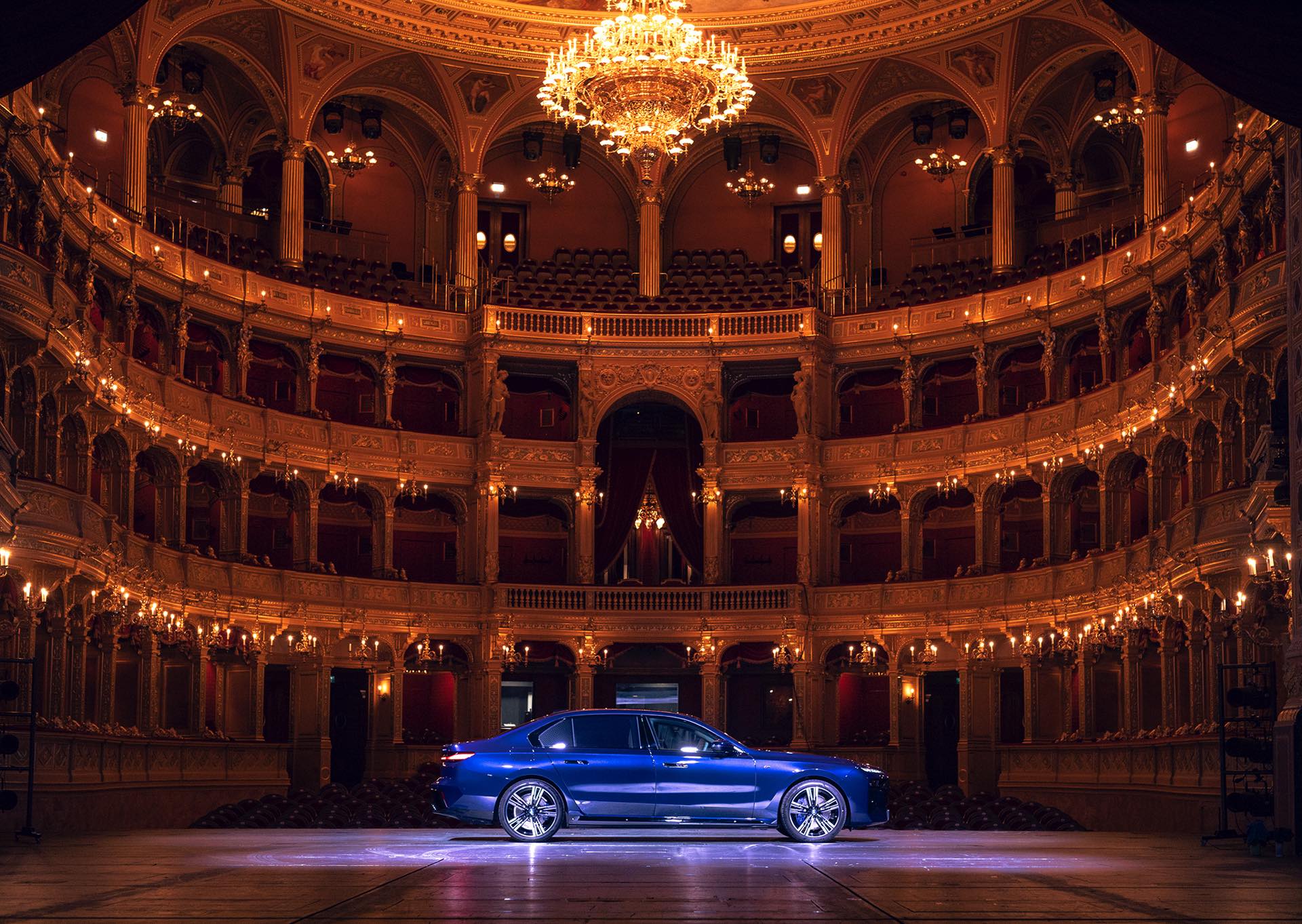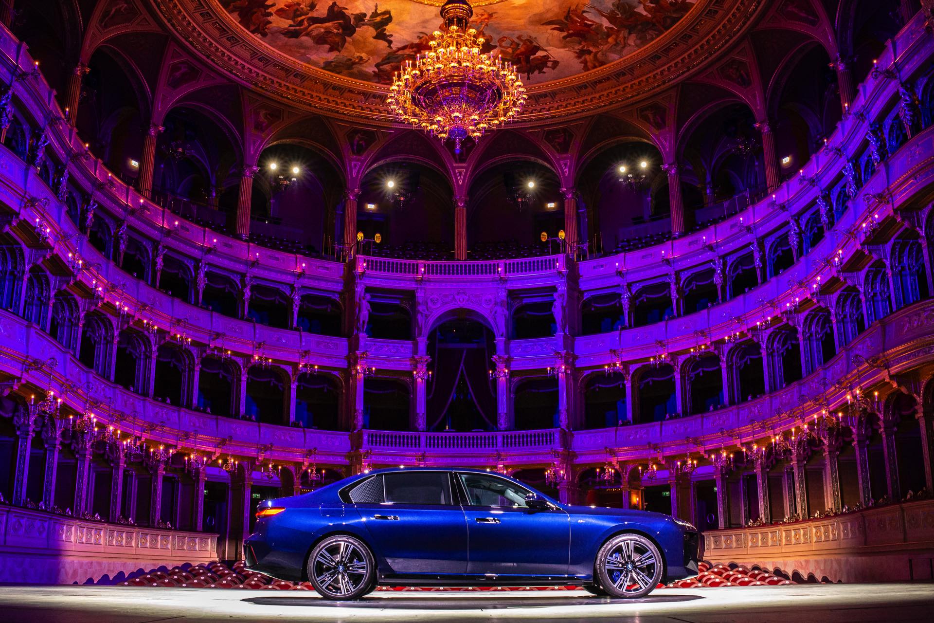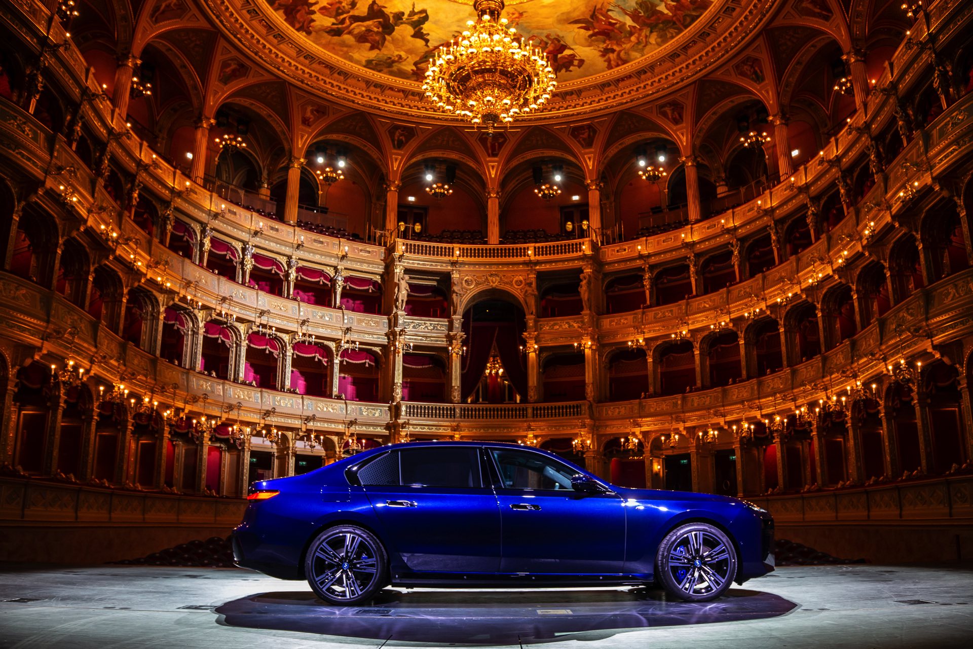138 Jahre nach der Eröffnung der Budapester Staatsoper steht nun zum ersten Mal eine rein elektrisch angetriebene Luxuslimousine auf der über 700 Quadratmeter großen Bühne. Möglich wurden die Fotos, weil BMW Ungarn die Staatsoper im Rahmen der Kulturförderung bereits seit mehr als sieben Jahren unterstützt und das Gebäude deshalb von Zeit zu Zeit nutzen darf. Von dieser Option machten die Verantwortlichen nun für die ungarische Premiere des BMW i7 Gebrauch und konnten das Fahrzeug so in einem einzigartigen Rahmen präsentieren. "