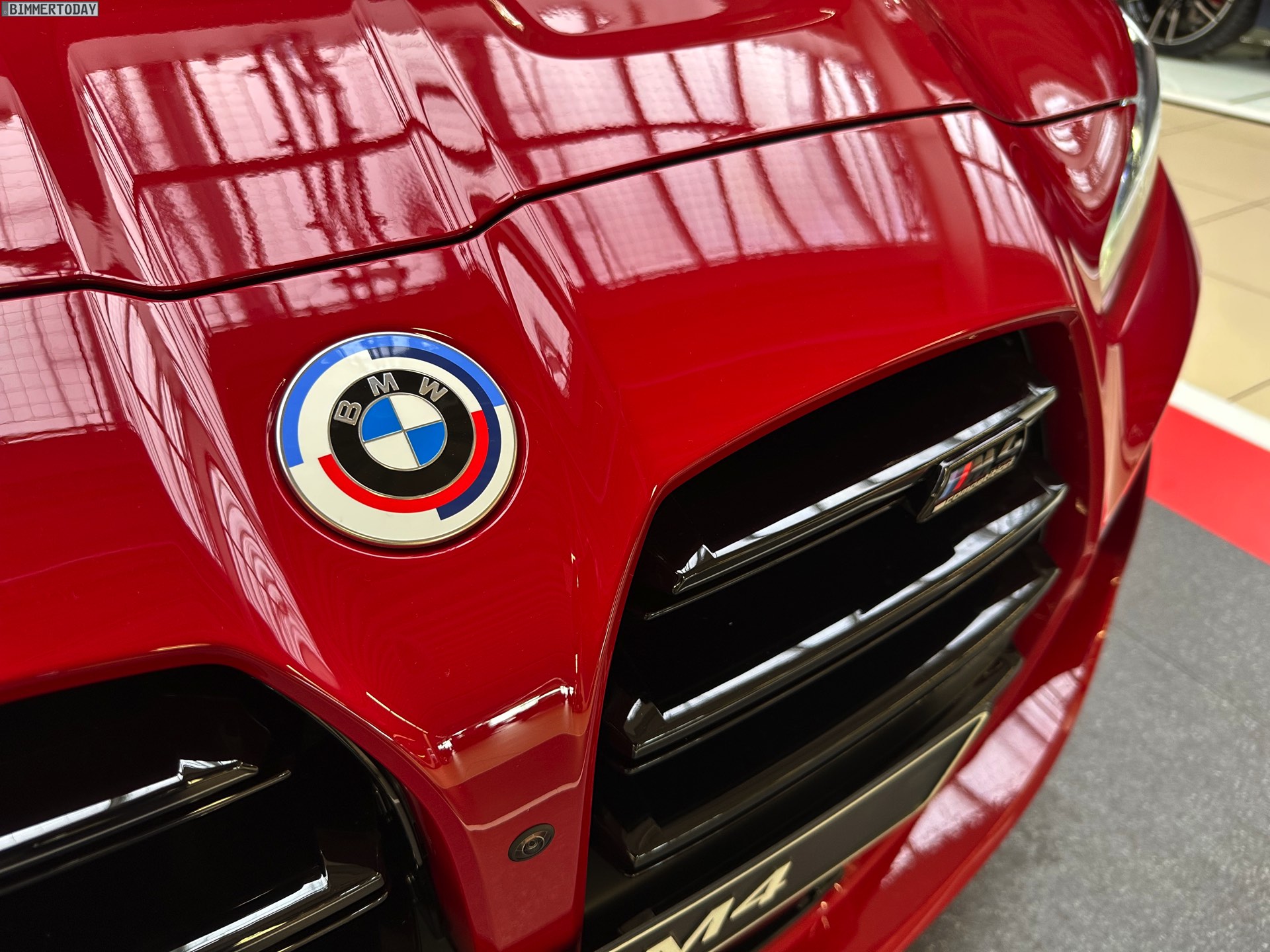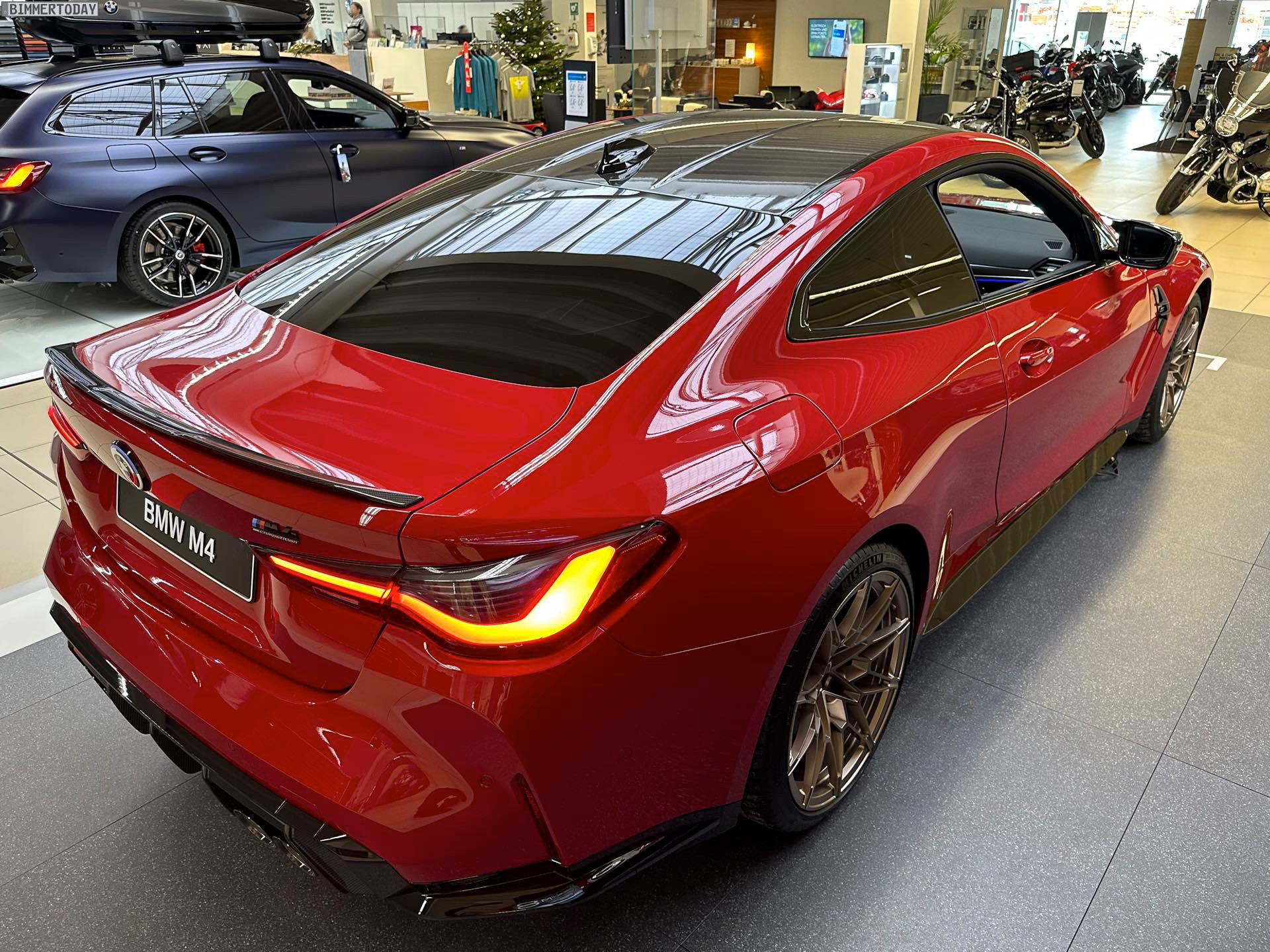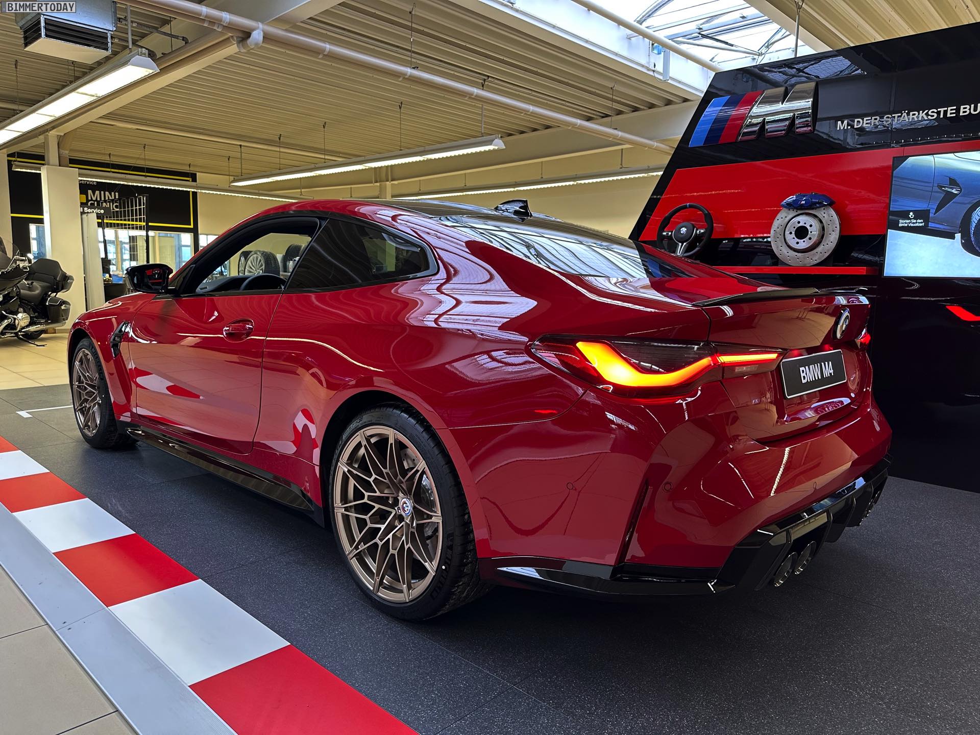 Wie die exklusive M4 Edition 50 Jahre BMW M in voller Pracht aussehen kann, zeigen aktuelle Fotos aus dem Autohaus Cloppenburg in Erfurt: Das 510 PS starke M4 Coupé trägt nicht nur eine Individual-Lackierung in Imolarot II (Farbcode 405/3) und zahlreiche Carbon-Elemente, sondern auch besonders auffällige Felgen in Frozen Goldbronze. Die vorne 19 und hinten 20 Zoll großen Schmiederäder im Design Doppelspeiche 826 M machen den M4 in der Seitenansicht noch spezieller und lassen auch Laien auf den ersten Blick erkennen, dass hier kein gewöhnlicher G82 unterwegs ist.