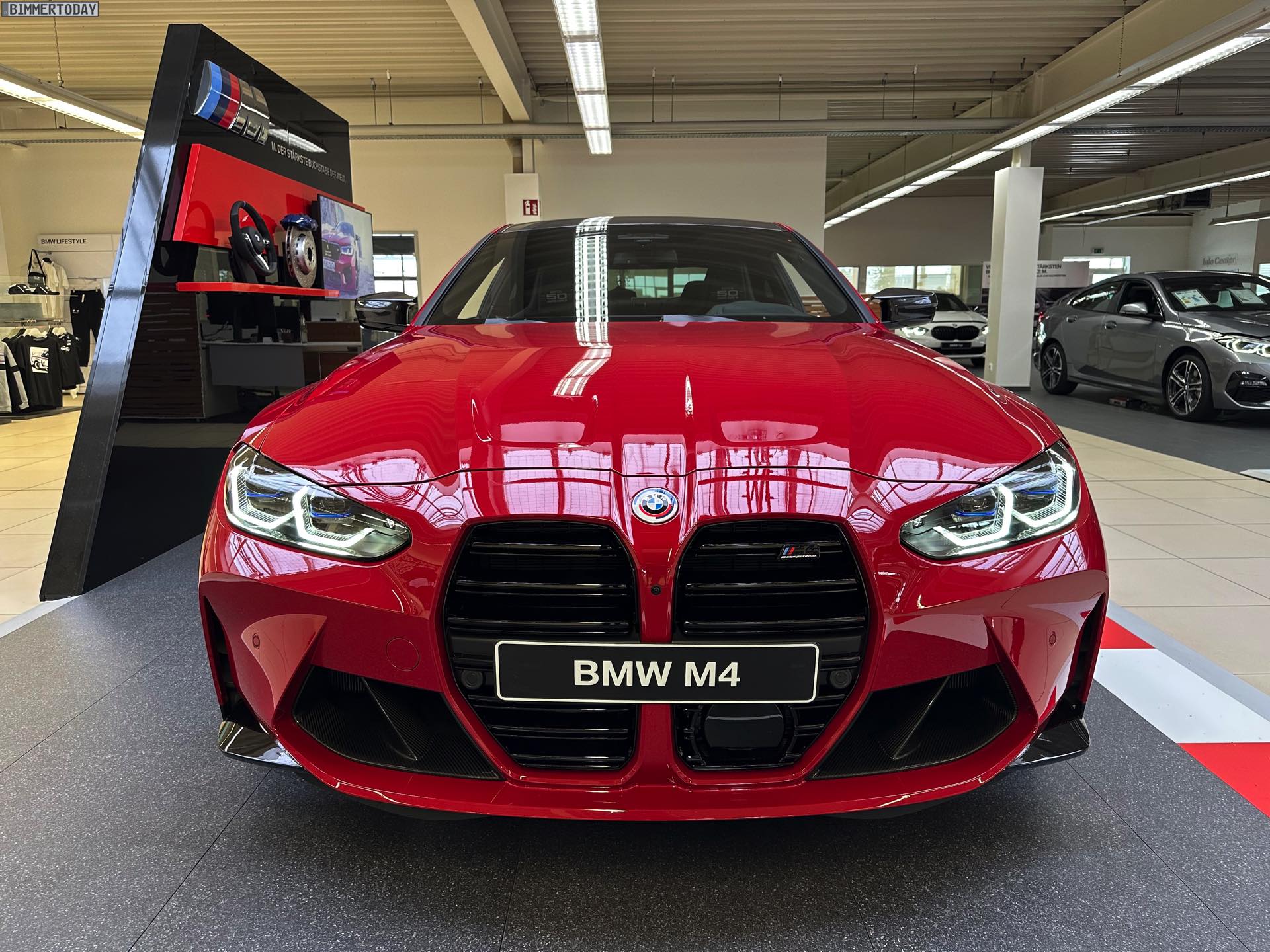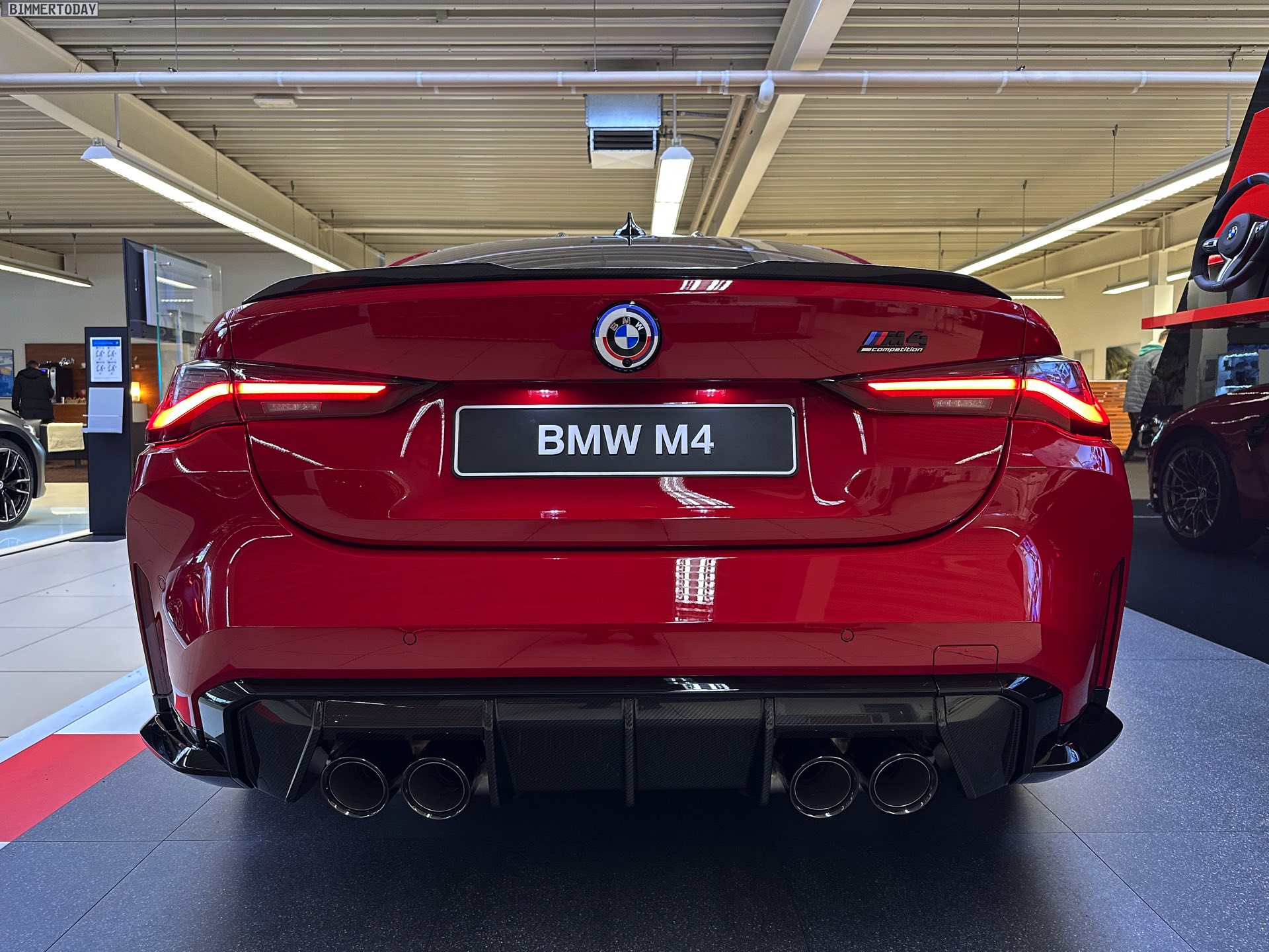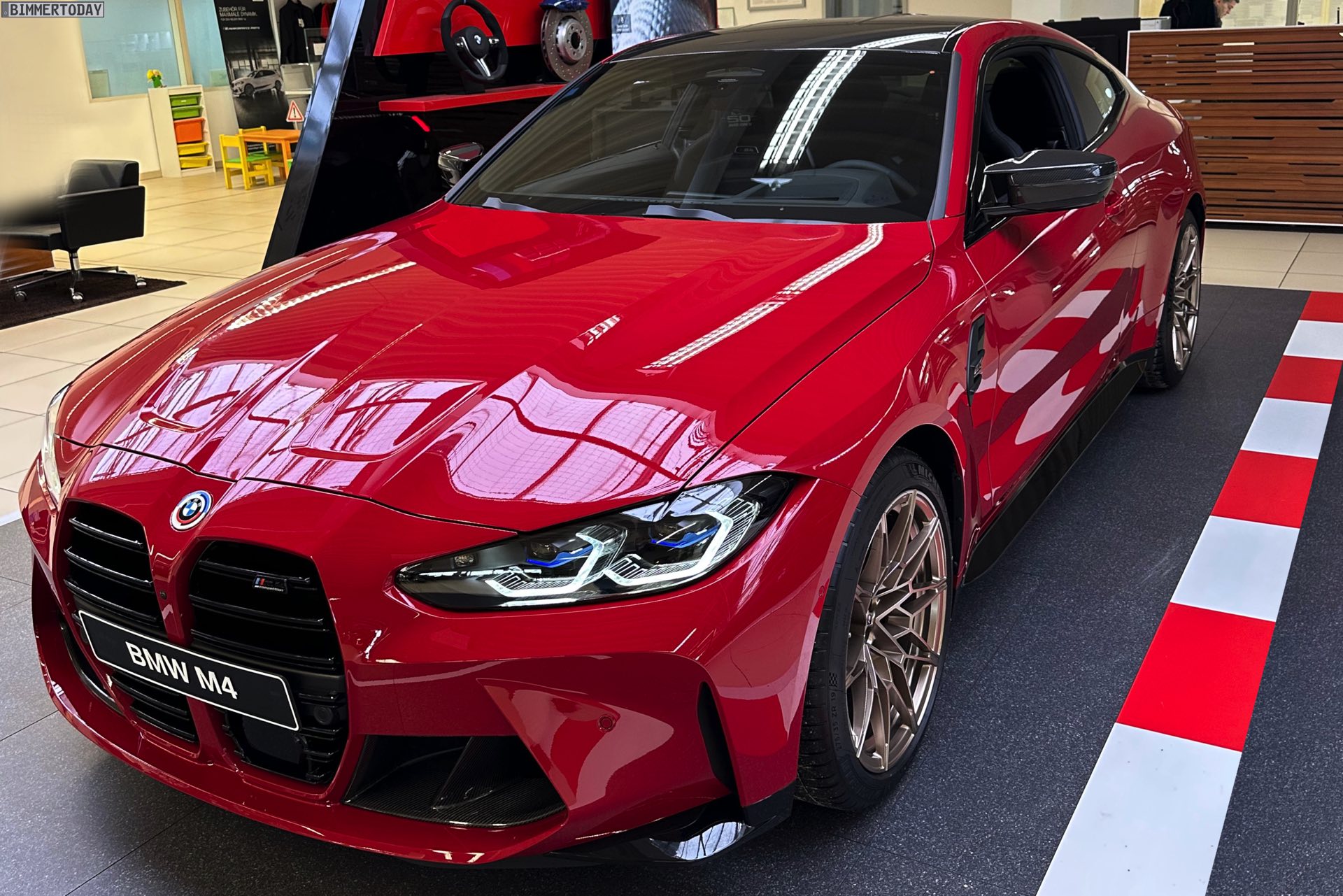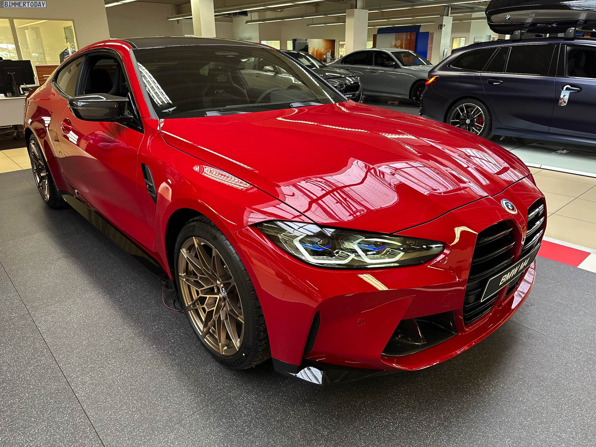 Wie die exklusive M4 Edition 50 Jahre BMW M in voller Pracht aussehen kann, zeigen aktuelle Fotos aus dem Autohaus Cloppenburg in Erfurt: Das 510 PS starke M4 Coupé trägt nicht nur eine Individual-Lackierung in Imolarot II (Farbcode 405/3) und zahlreiche Carbon-Elemente, sondern auch besonders auffällige Felgen in Frozen Goldbronze. Die vorne 19 und hinten 20 Zoll großen Schmiederäder im Design Doppelspeiche 826 M machen den M4 in der Seitenansicht noch spezieller und lassen auch Laien auf den ersten Blick erkennen, dass hier kein gewöhnlicher G82 unterwegs ist.