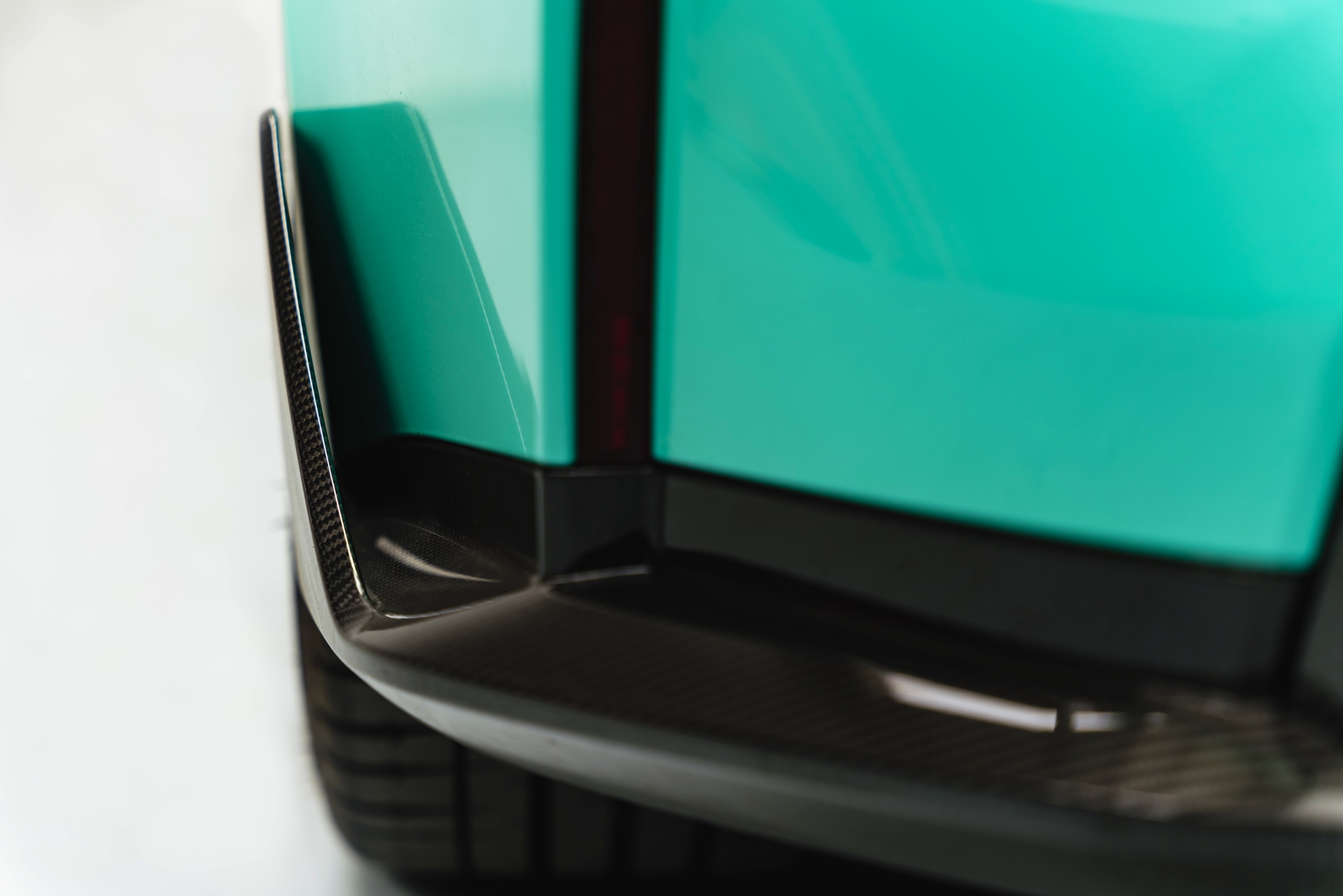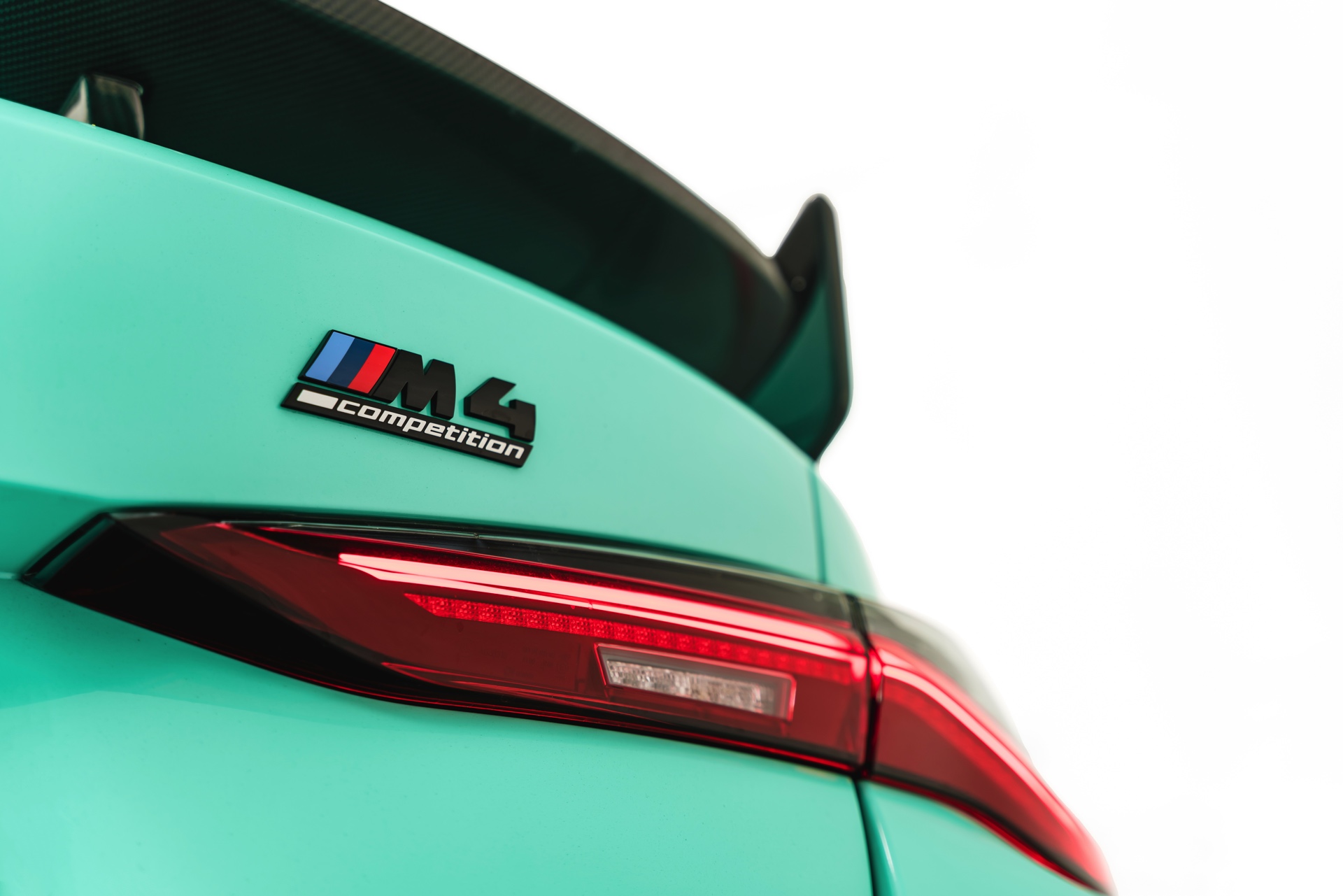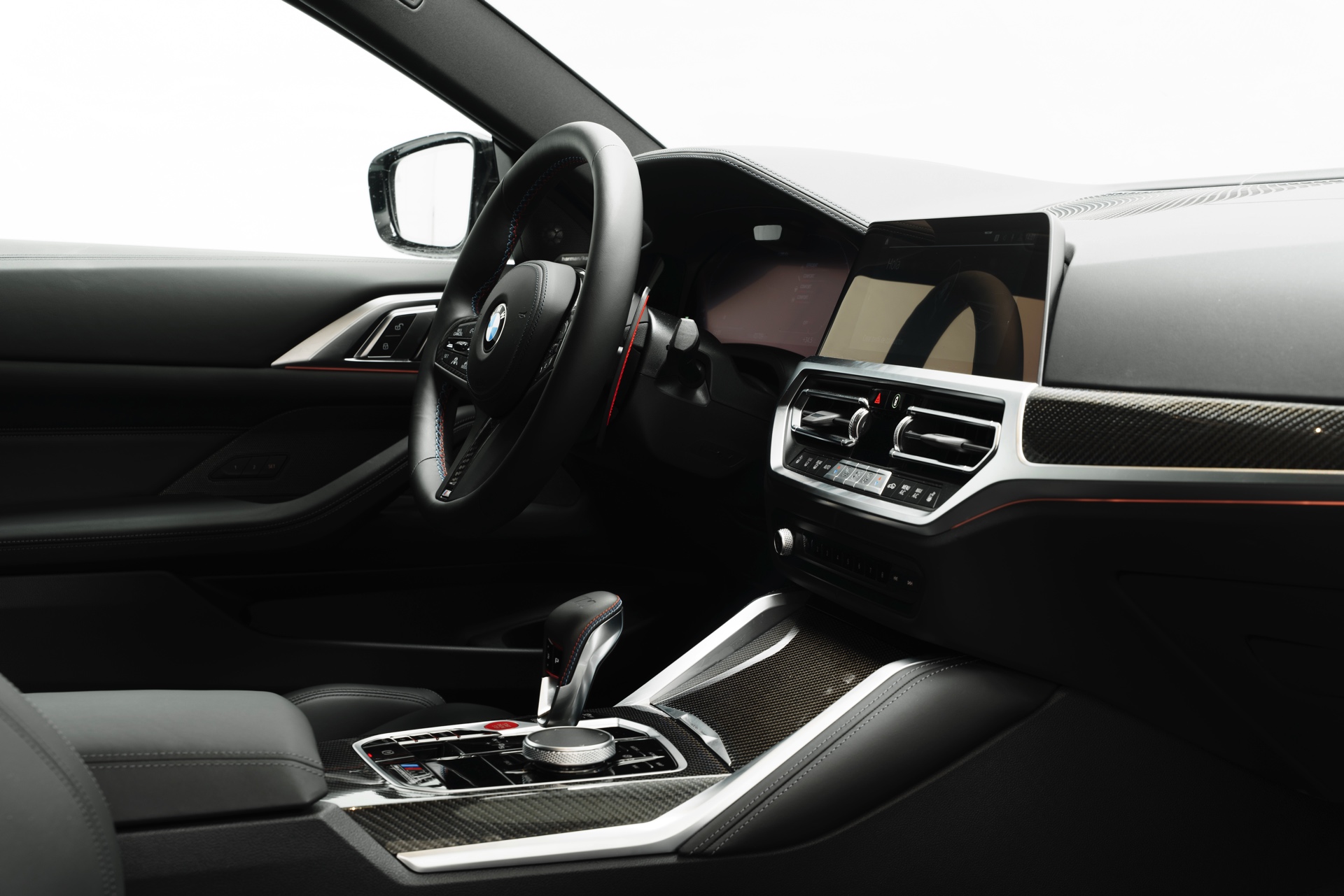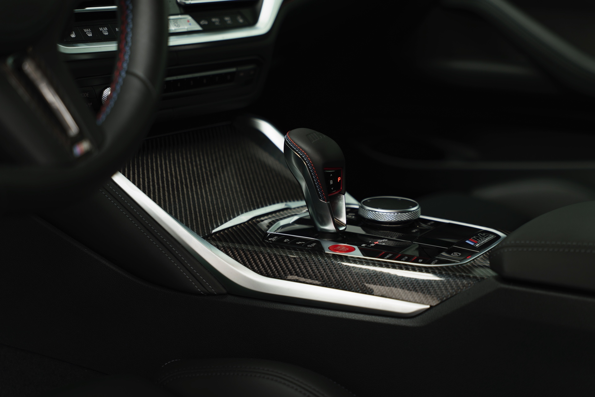Im Innenraum setzt sich die vom Exterieur in Mint Green begonnene Sportwagen-Geschichte mit viel Carbon und Alcantara fort, hinzu kommen die typischen roten Akzente aller aktuellen M High Performance Automobile. Interieurleisten und Abdeckungen aus Carbon werden von dezenten Kohlefaser-Elementen auf dem Lenkrad ergänzt, sodass sich Fahrer und Mitfahrern ein sportlich-luxuriöses Interieur eröffnet.