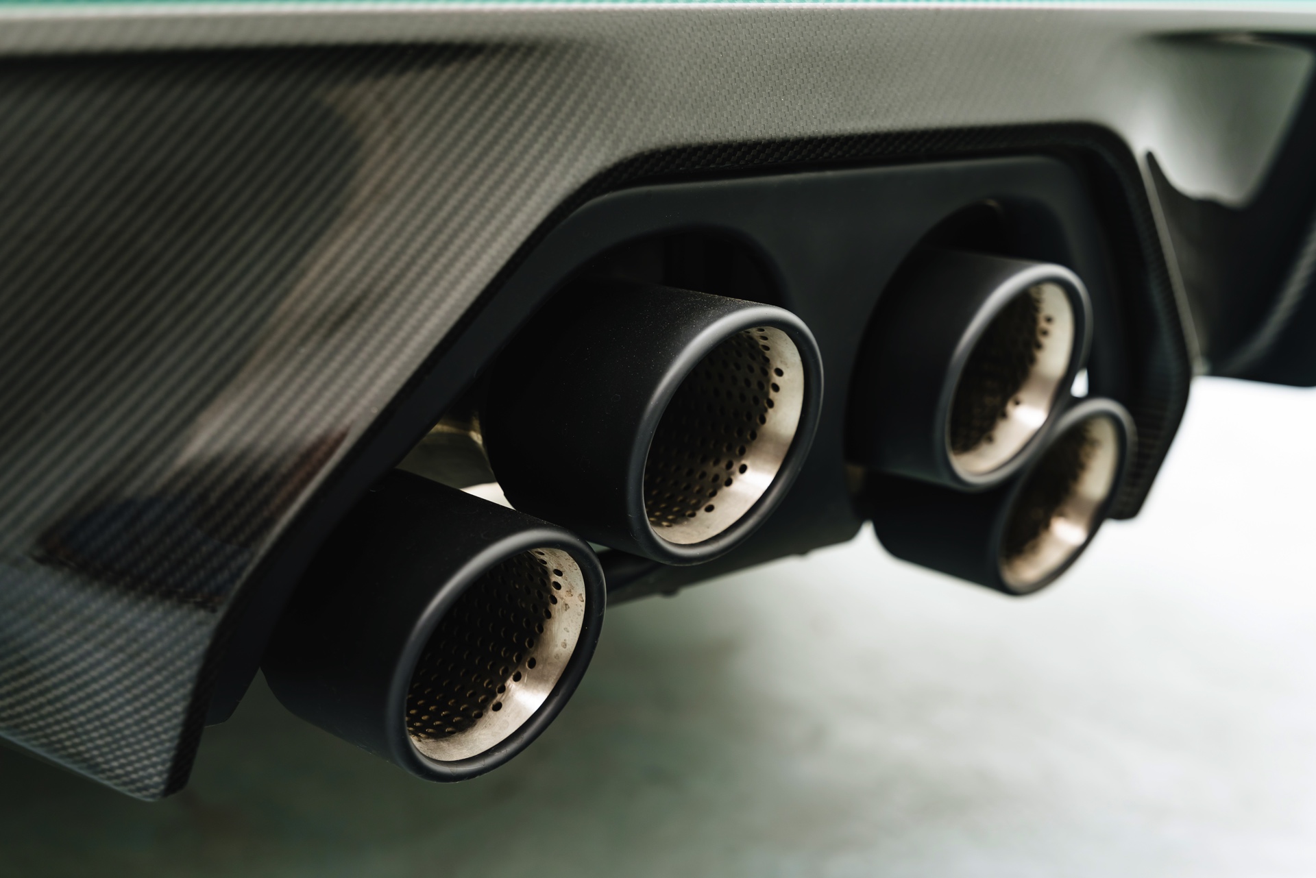 Ergänzend zum M Carbon Exterieur-Paket trägt das 510 PS starke Sportcoupé auch die M Performance Aero-Flicks vor den Vorderrädern sowie die unmittelbar dahinter platzierten Carbon-Kiemen und Carbon-Außenspiegel, das wahre Feuerwerk wird aber erst am Heck gezündet: Der mächtige M Performance Heckflügel wird hier mit der ebenso kontroversen wie außergewöhnlichen Titan-Abgasanlage kombiniert, die mit ihren vier trapezförmig angeordneten Endrohren kaum einen Betrachter kalt lässt. Dass die im Vergleich zur Serie fünf Kilogramm leichtere Abgasanlage dank Klappensteuerung auch einen brutalen Sound verspricht, versteht sich bei diesem Anblick von selbst.