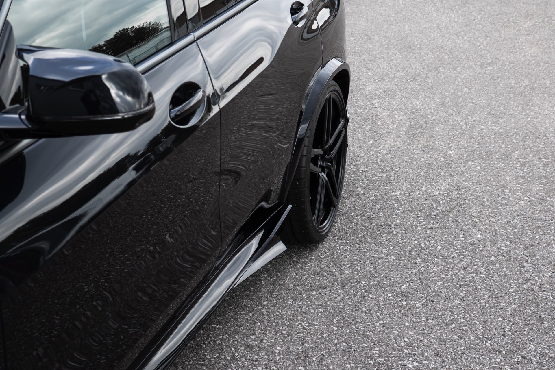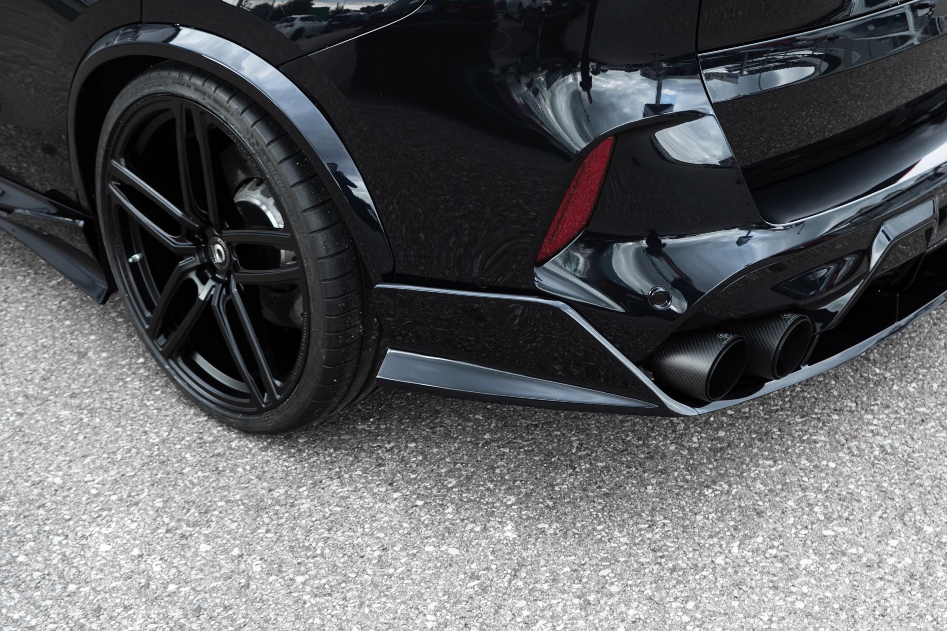 Frontsplitter-Aufsatz, Seitenschweller, Diffusor-Aufsatz und Heckspoiler werden mit Radlauf-Verbreiterungen kombiniert, sodass auch die 23 Zoll großen Schmiederäder vom Typ Hurricane RR genügend Platz in den Radhäusern finden. Die mächtigen Felgen sind rundum mit extrem breiten Reifen im Format 315/25 R23 bezogen und kommen dank Gewindefedern für eine Tieferlegung um bis zu 40 Millimeter vorn und sogar bis zu 45 Millimeter hinten noch besser zur Geltung.