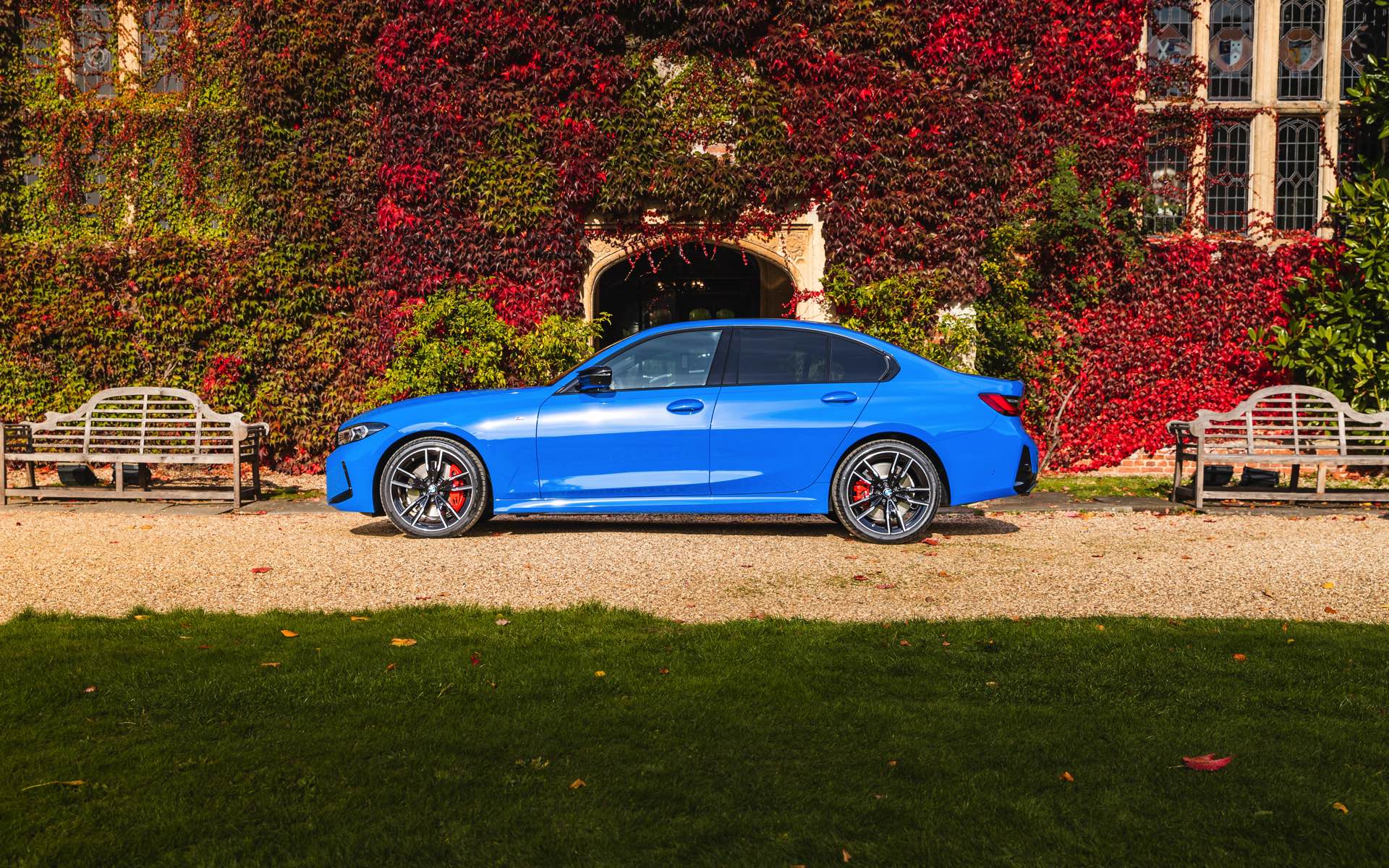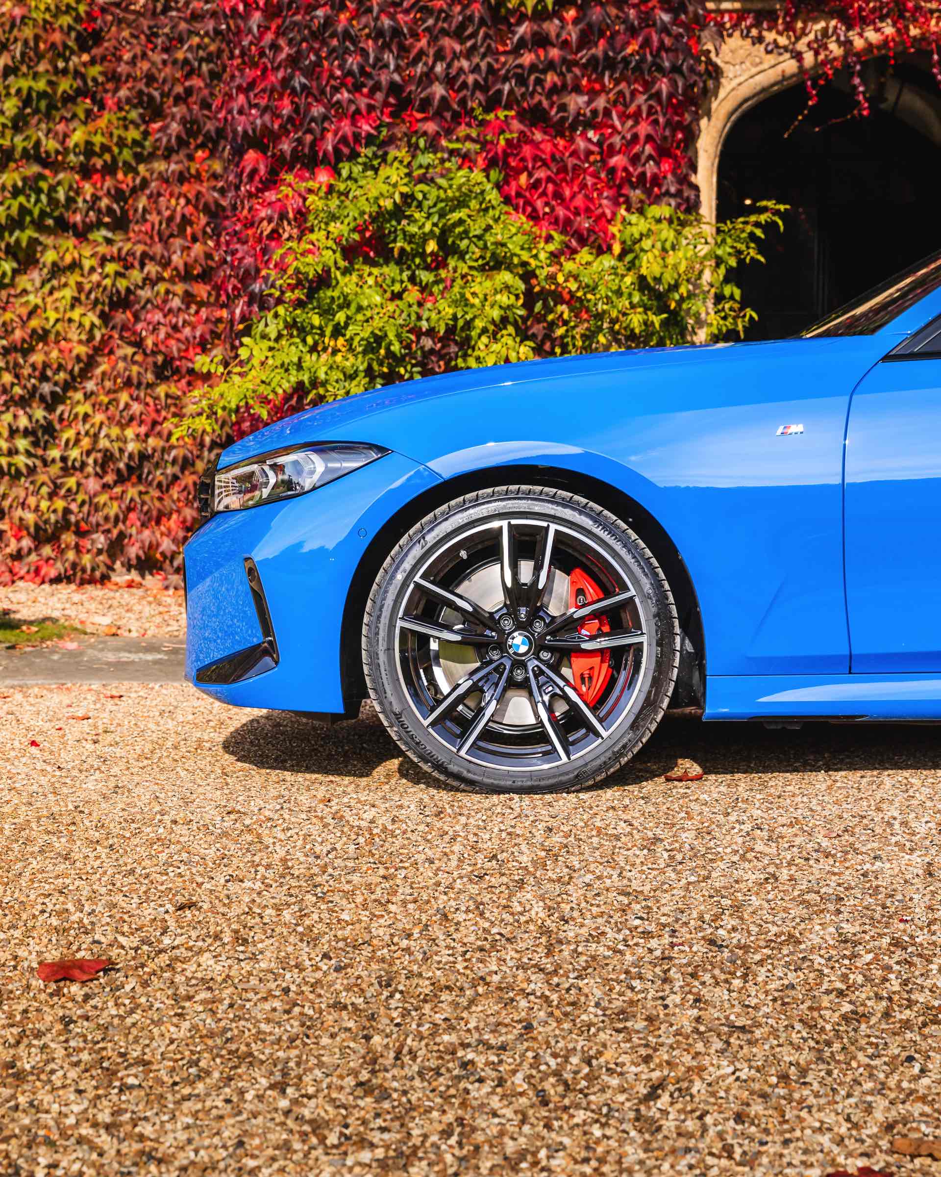 Die aktuellen Fotos stammen aus England, wo Enzianblau in übersetzter Form als Gentian Blue vermarktet wird, und zeigen uns eine BMW M340i xDrive Limousine (G20 LCI). Der M Performance-3er auf den Fotos von Adam Price für Andrew Barker trägt neben der speziellen Lackierung auch die Shadow Line mit erweiterten Umfängen, sodass die M340i und M340d vorbehaltene Mesh-Niere genau wie die Endrohr-Blenden ganz in Schwarz gehalten ist. Die ab der B-Säule abgedunkelten Scheiben der Sonnenschutzverglasung und die zu großen Teilen in Jetblack lackierten 19 Zoll Leichtmetallräder Doppelspeiche 792 M Bicolor tragen ihren Teil zum individuellen Auftritt bei. Einen weiteren sportlichen Akzent setzen die Bremssättel der M Sportbremse, die in Verbindung mit dem M Sport Pro-Paket auch in Rot erhältlich sind.