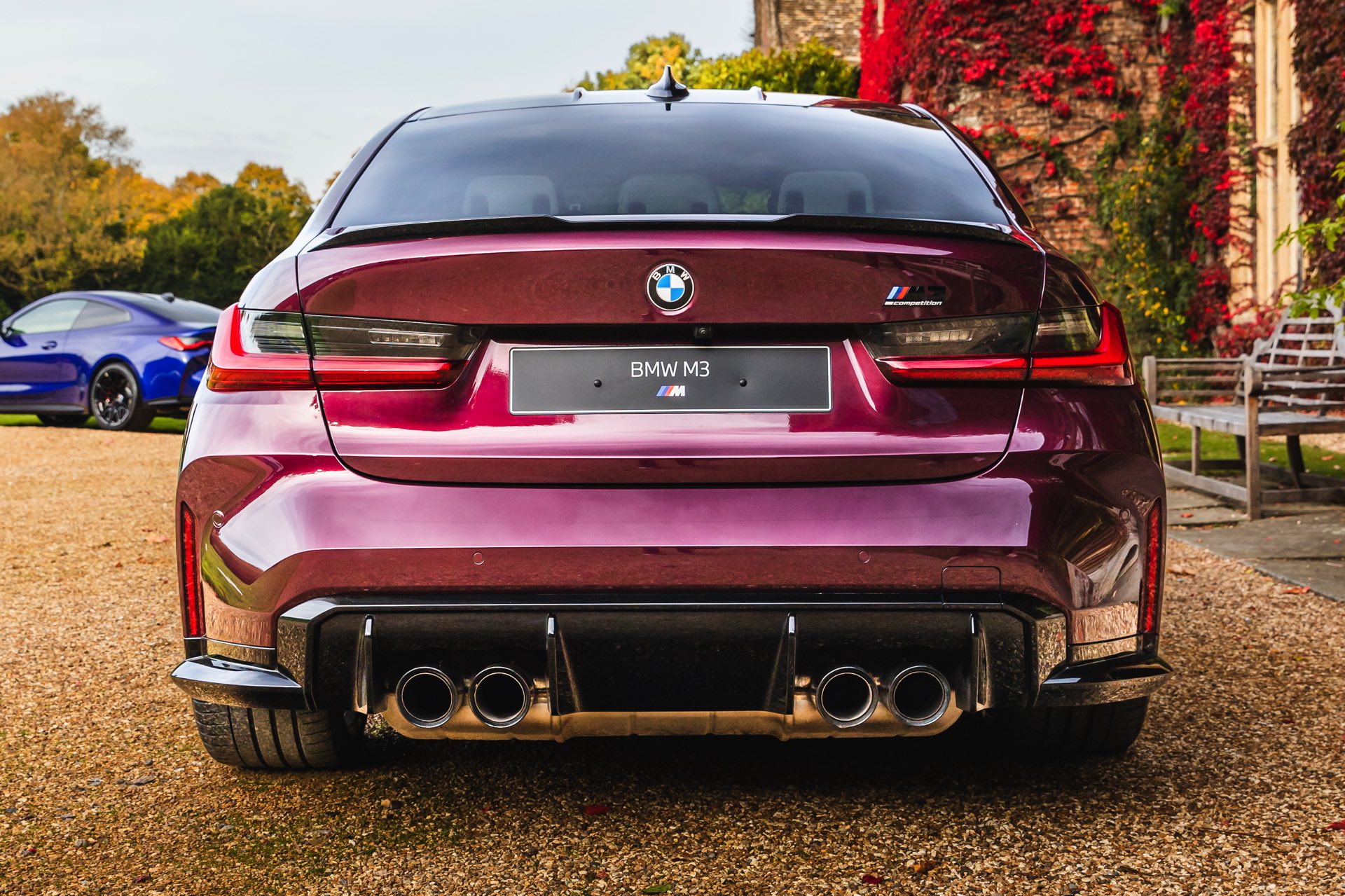 Mit Wildberry Metallic ist zweifellos für genügend Farbe gesorgt und auch sonst kann die hier gezeigte Konfiguration überzeugen: Der BMW M3 Competition auf den Fotos von Adam Price für Andrew Barker von Dick Lovett kombiniert die kräftig-violette Lackierung mit den vorne 19 und hinten 20 Zoll großen Schmiederädern im Design Doppelspeiche 825 M Bicolor, außerdem sorgen diverse schwarze Elemente und das serienmäßige Carbon-Dach für eine weitere Verfeinerung des sportlichen Auftritts.