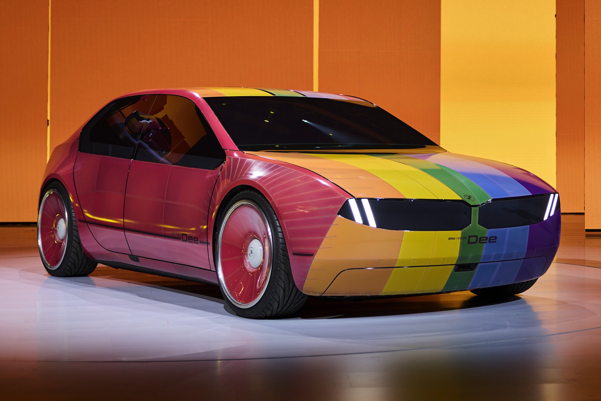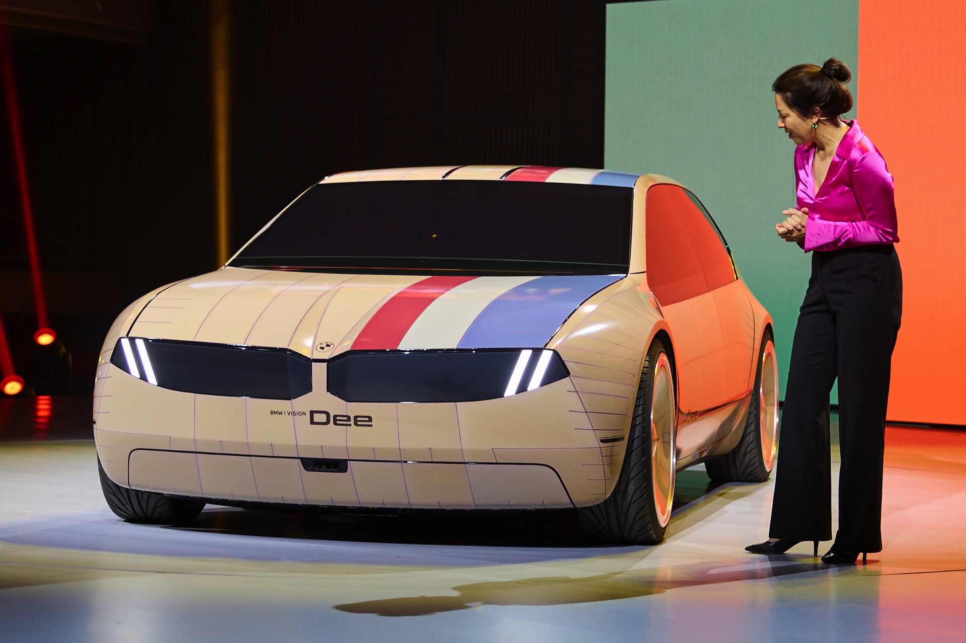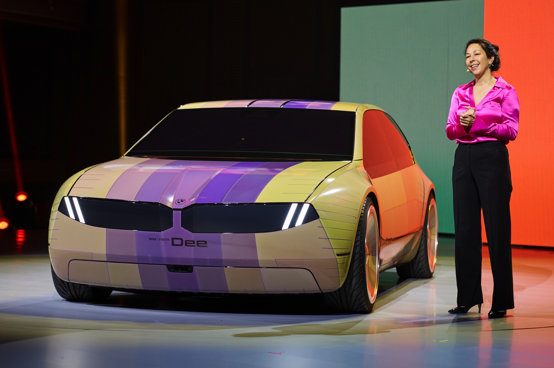 Auf den Live-Fotos von der CES 2023 in Las Vegas erhalten wir auch weitere Eindrücke von den unzähligen Möglichkeiten, die sich aus der vollfarbigen E-Ink-Folierung ergeben. Noch über die Fähigkeiten von Herbie und K.I.T.T. hinaus kann BMW Dee seine Außenhaut innerhalb von Sekunden auf unterschiedlichste Art und Weise umfärben, sodass er auch bei Verfolgungsjagden und dergleichen bestens aufgestellt sein sollte.